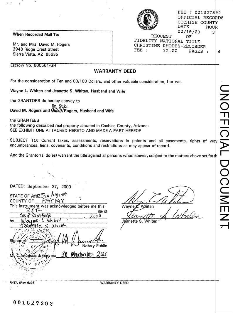 Recording/Sale Date : 10/03/2000 / 09/27/2000