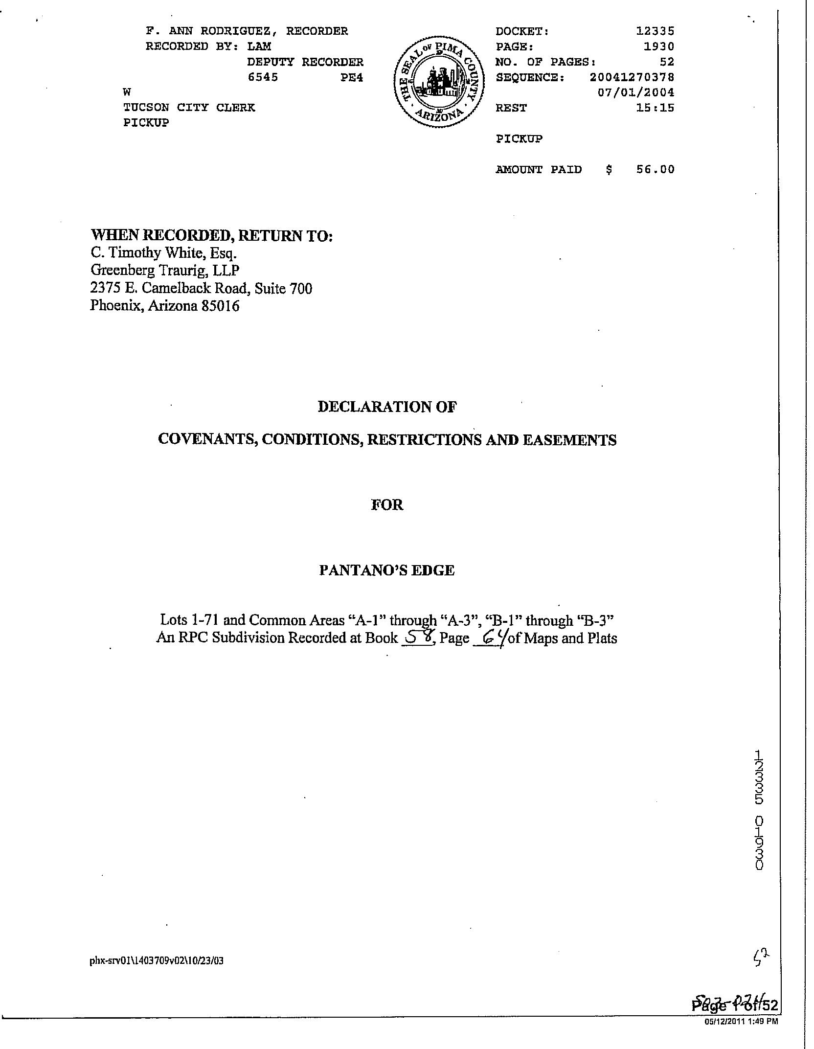 SITUS: 3005 S PANTANO EDGE DR TUC