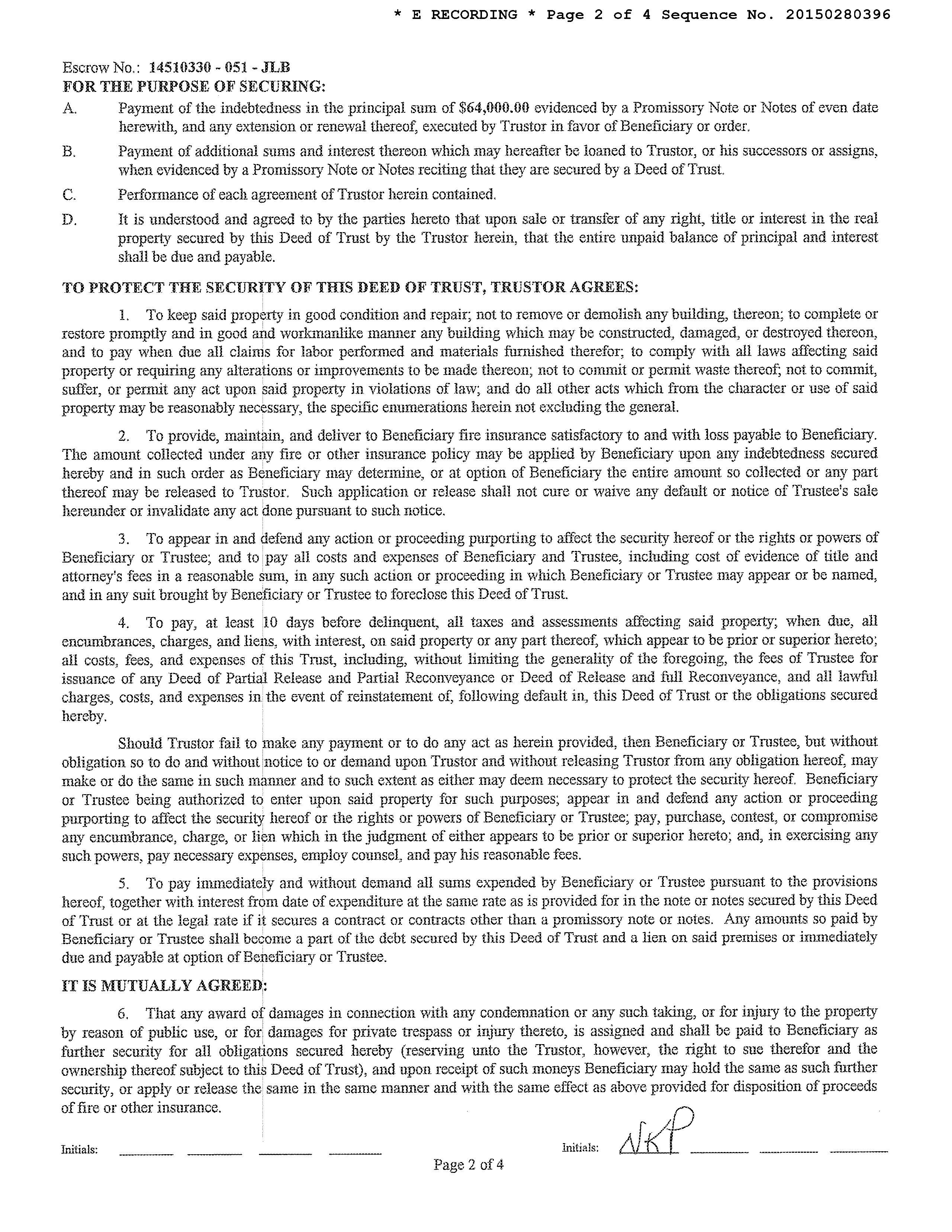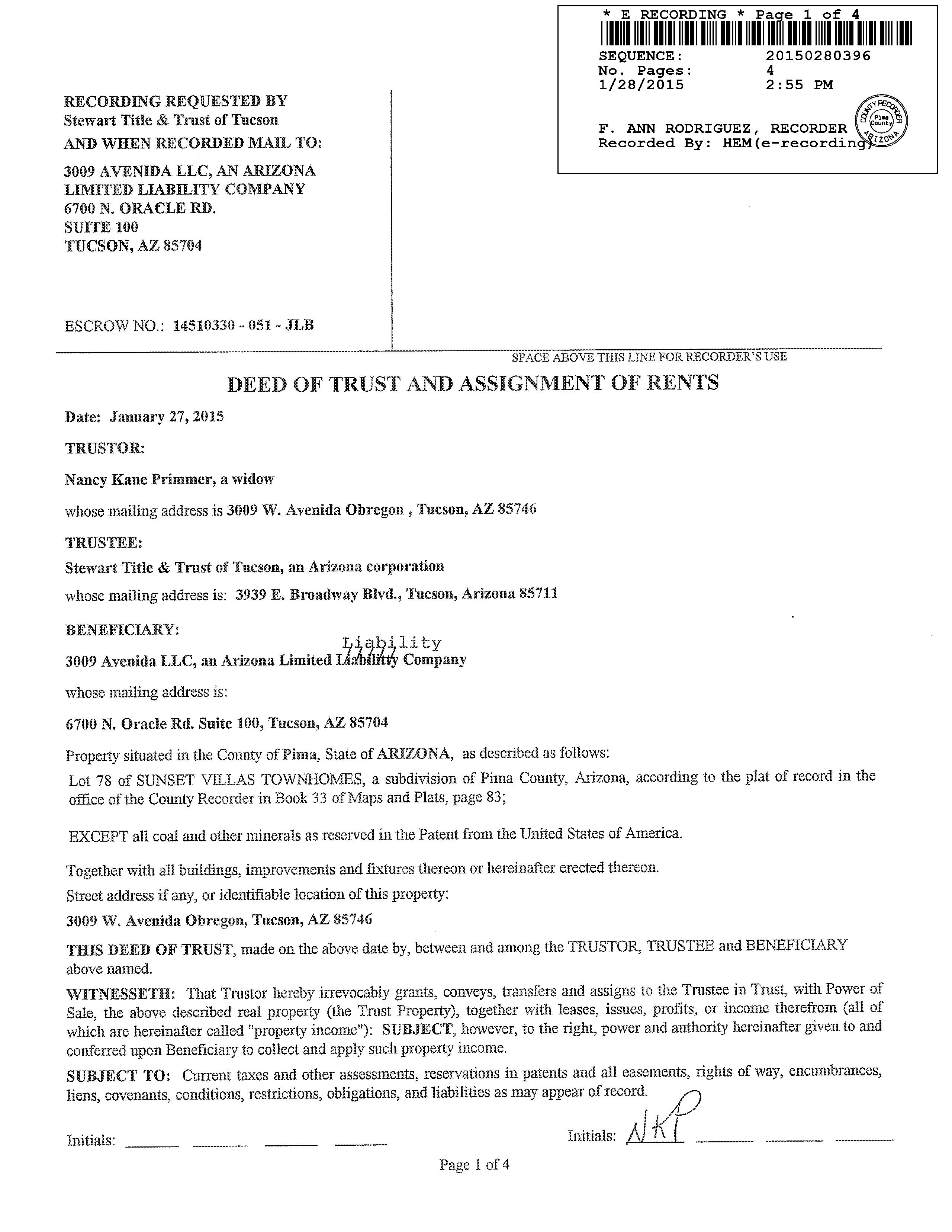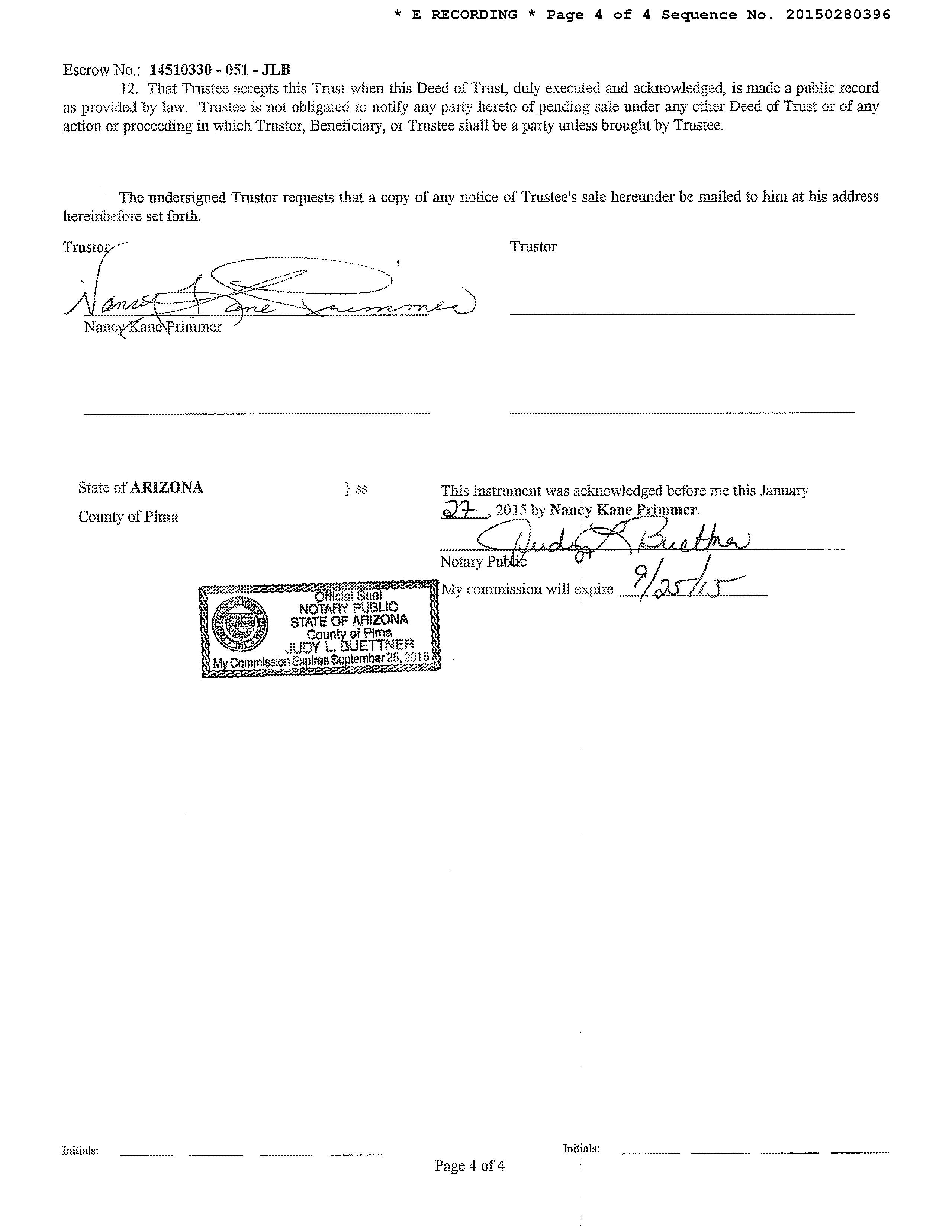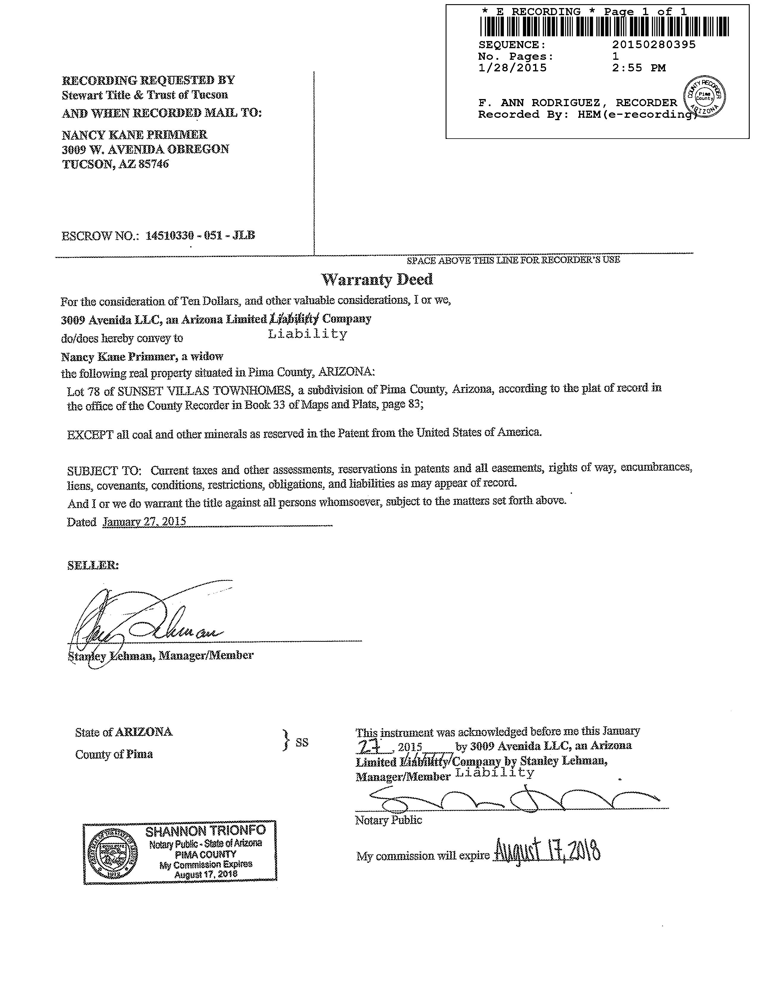 OWNER: PRIMMER NANCY K AFFIDAVIT 2015 280395 01/28/2015