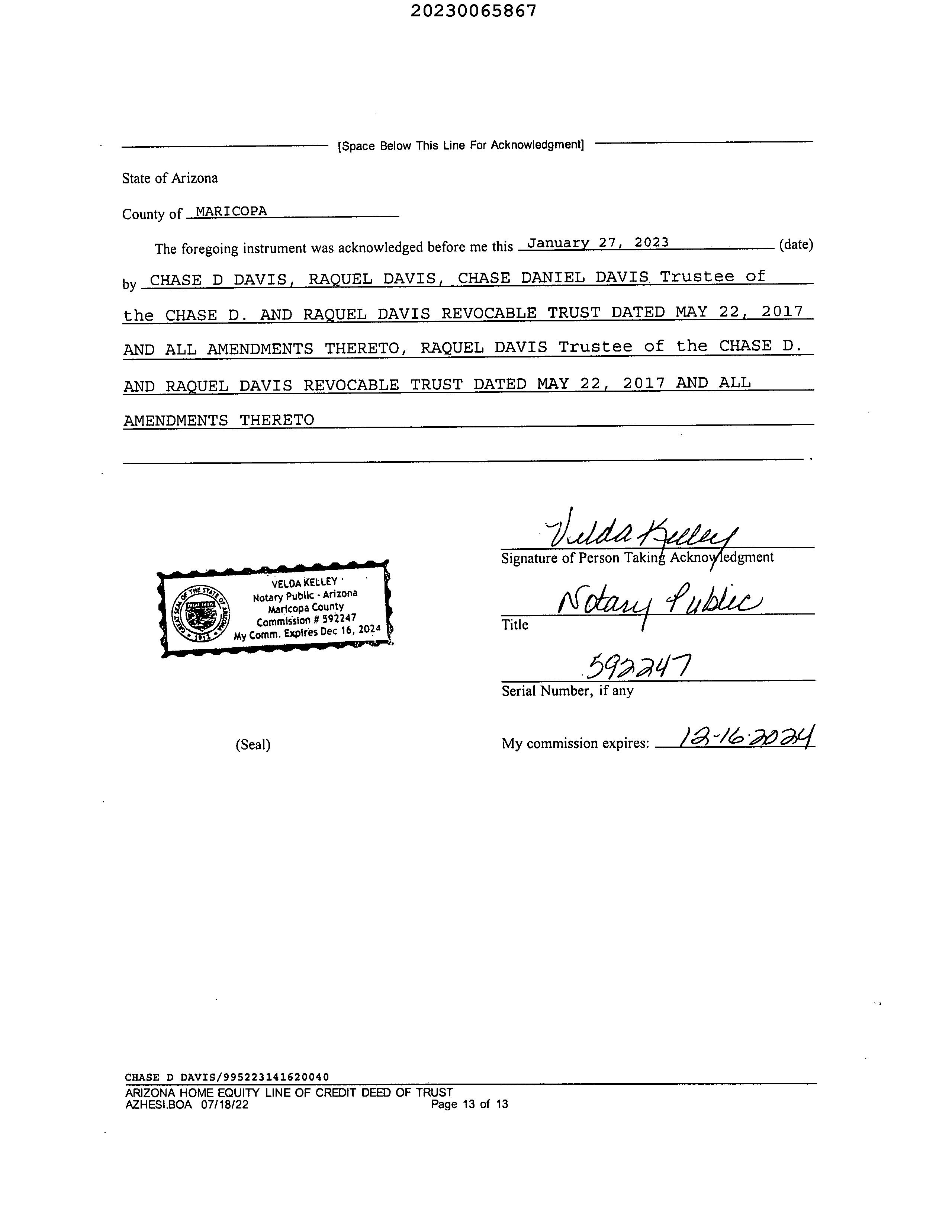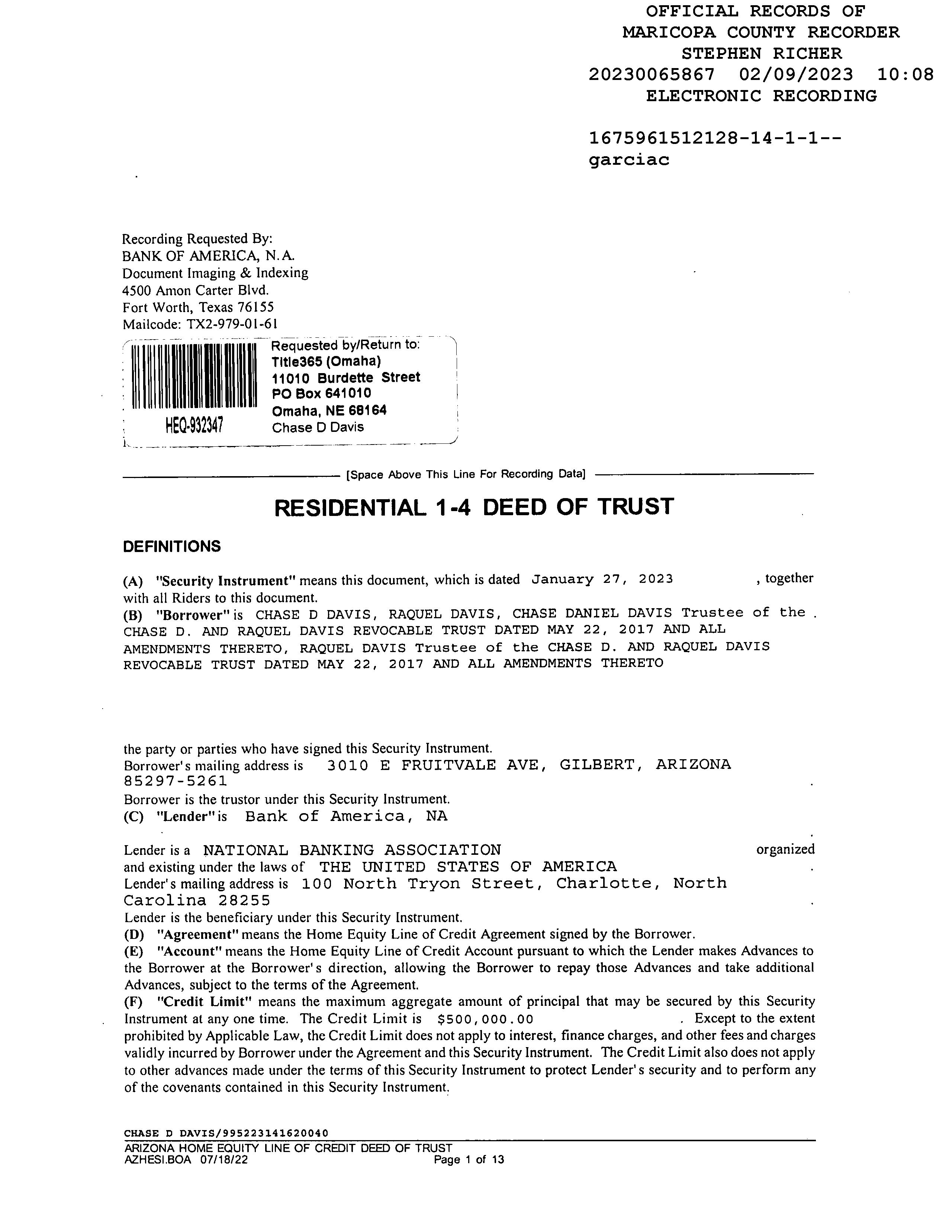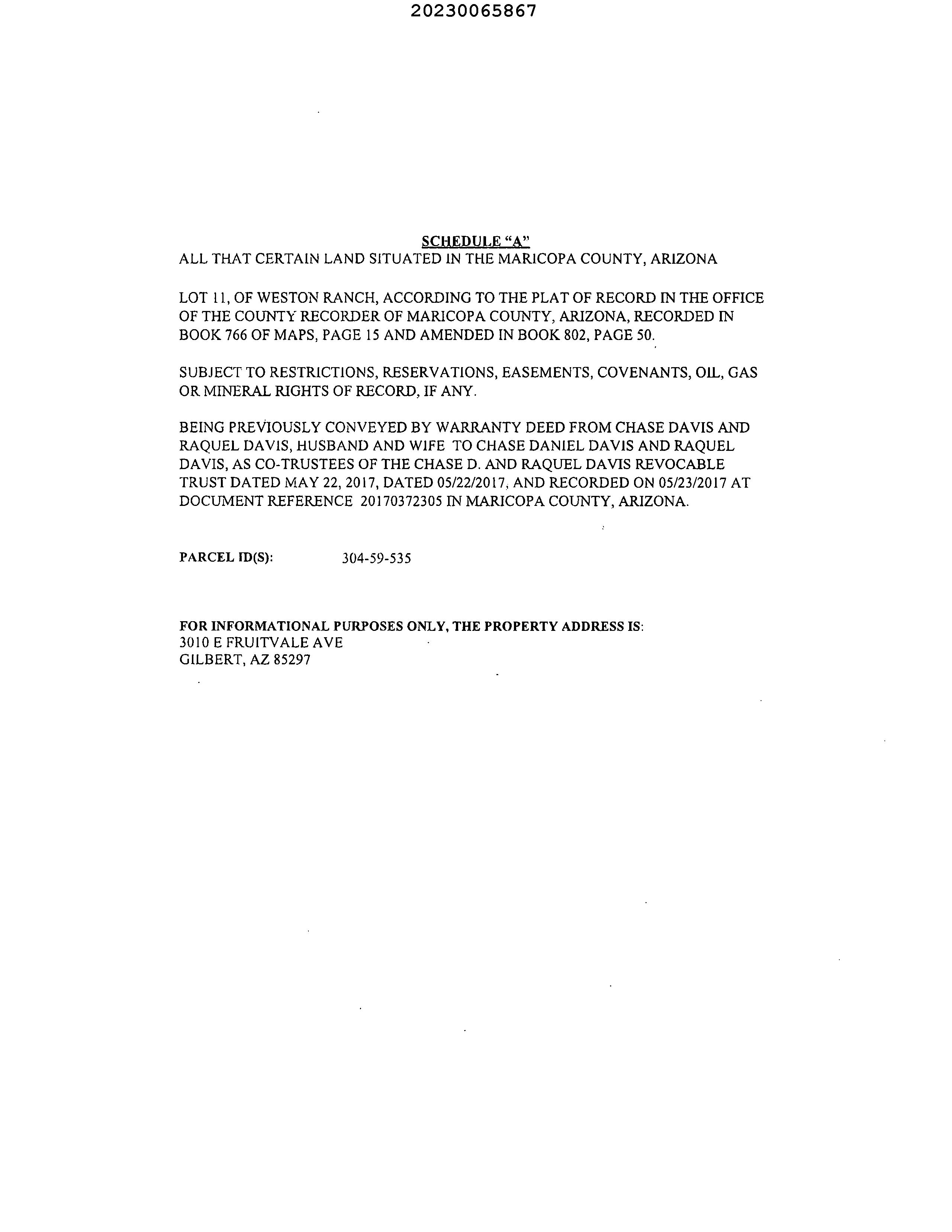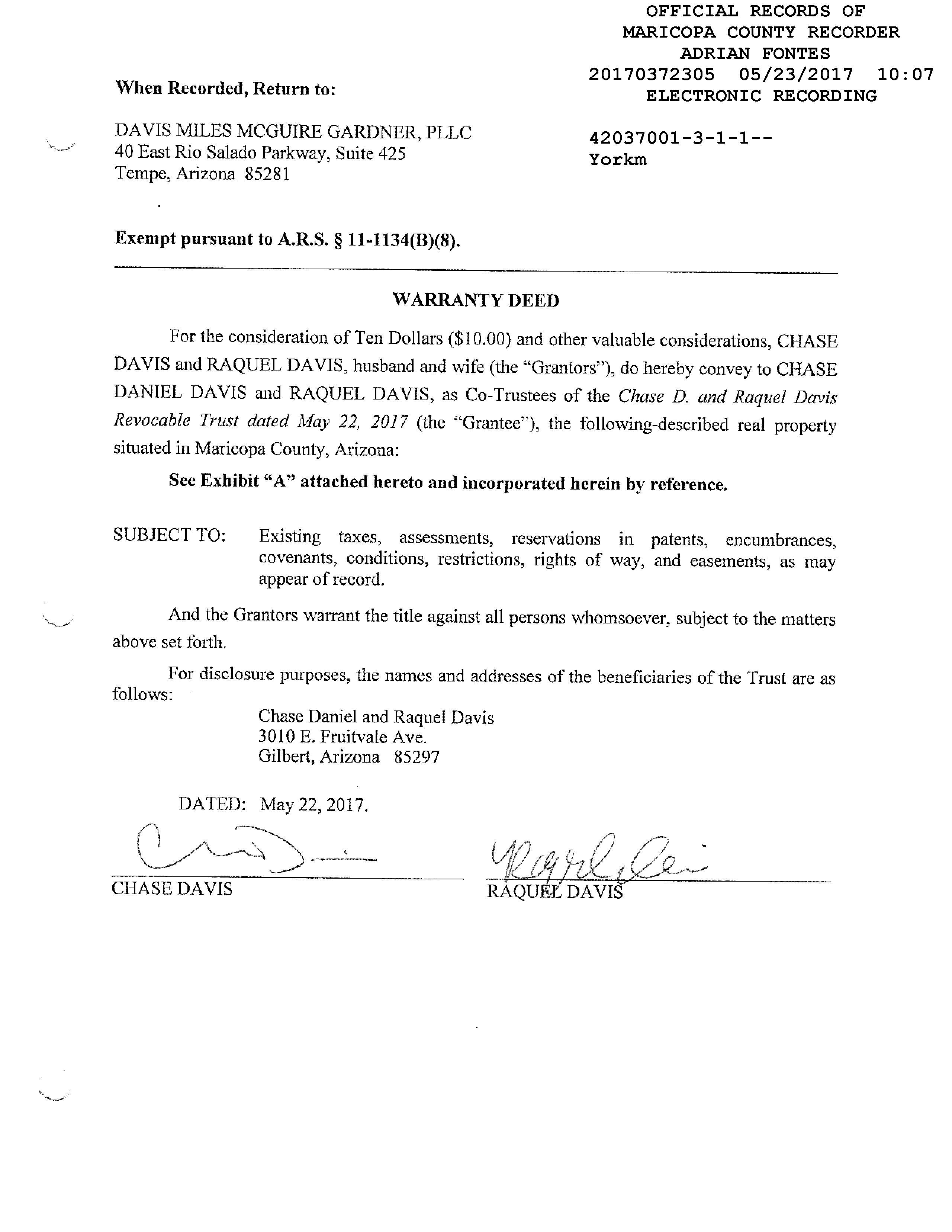 OWNER: CHASE D AND RAQUEL DAVIS REVOCABLE TRUST 2017 372305 05/23/2017