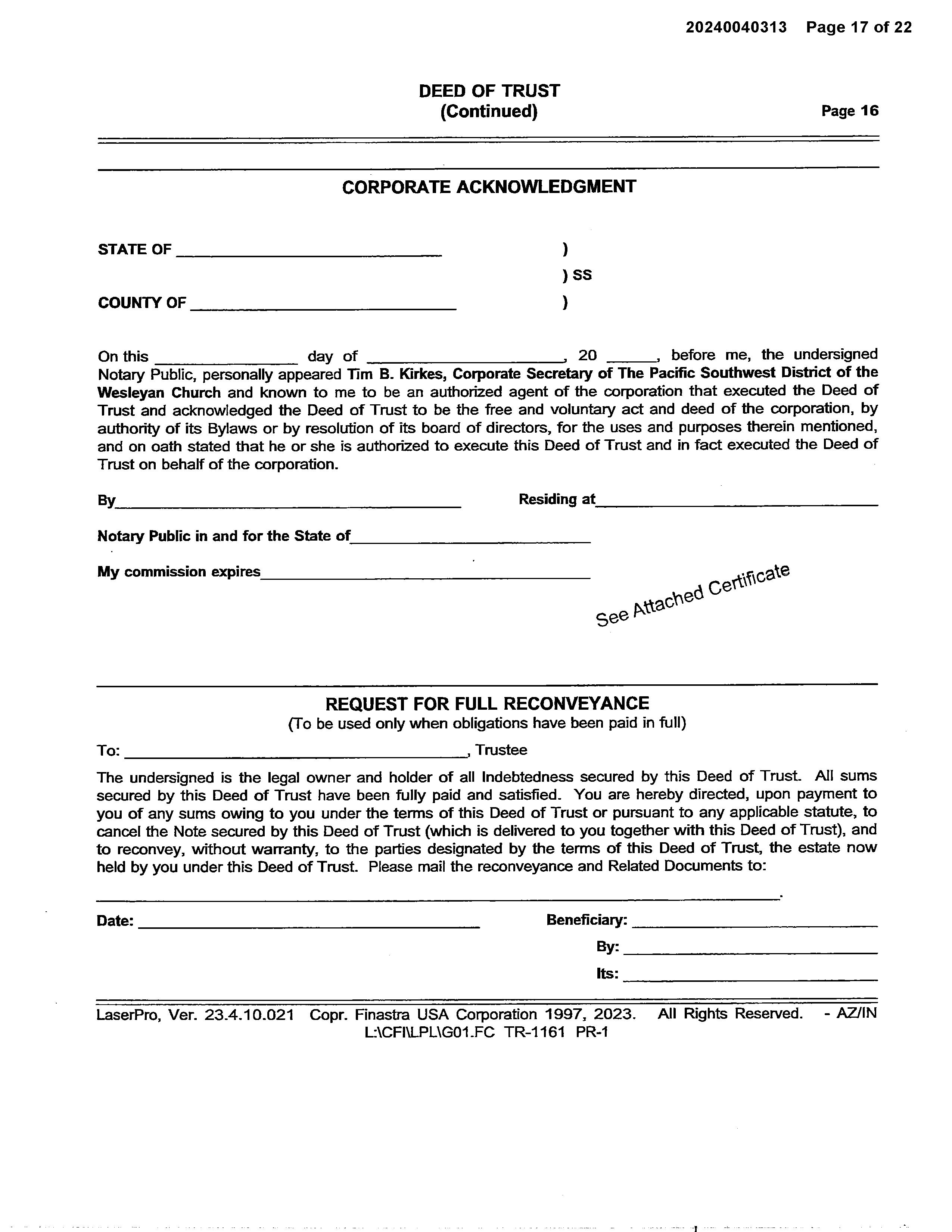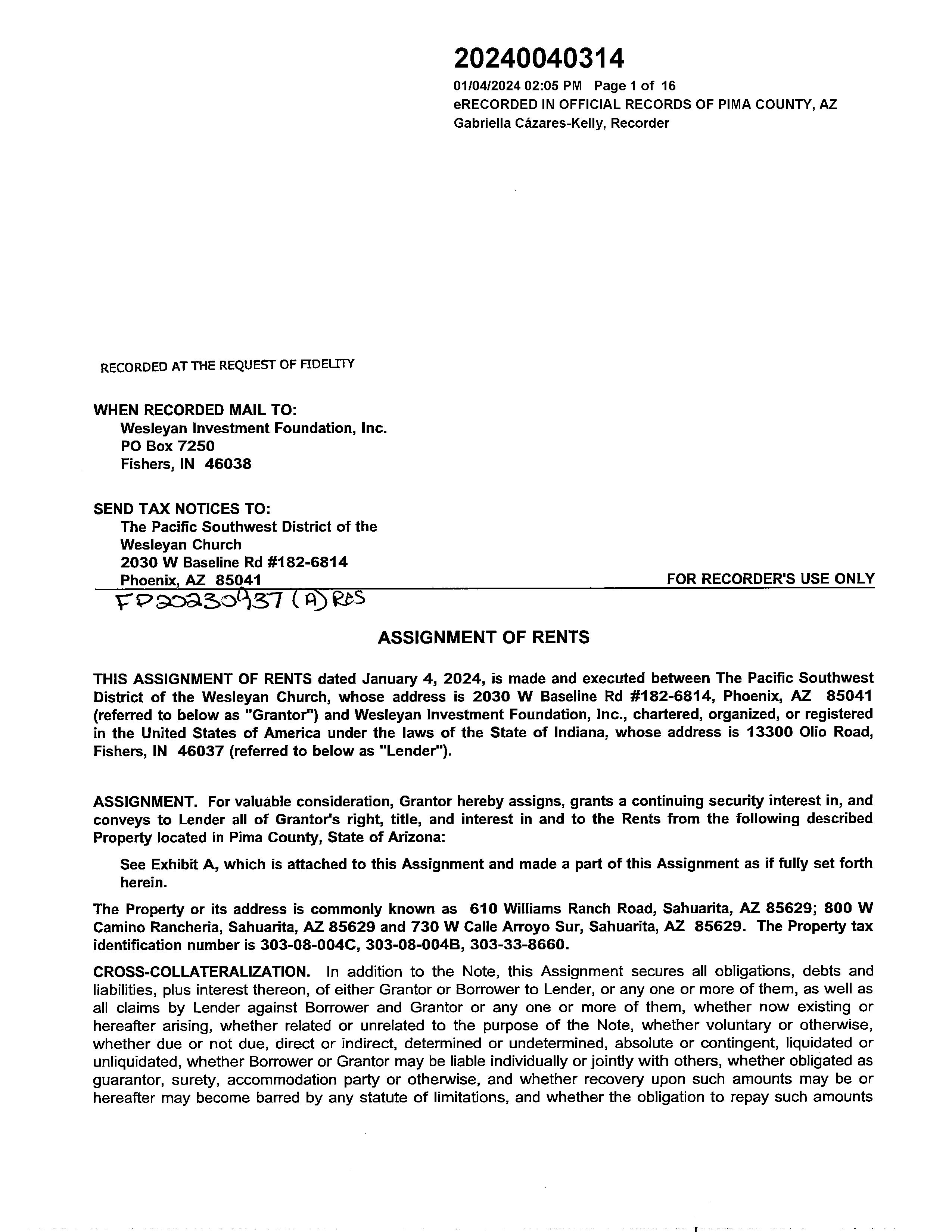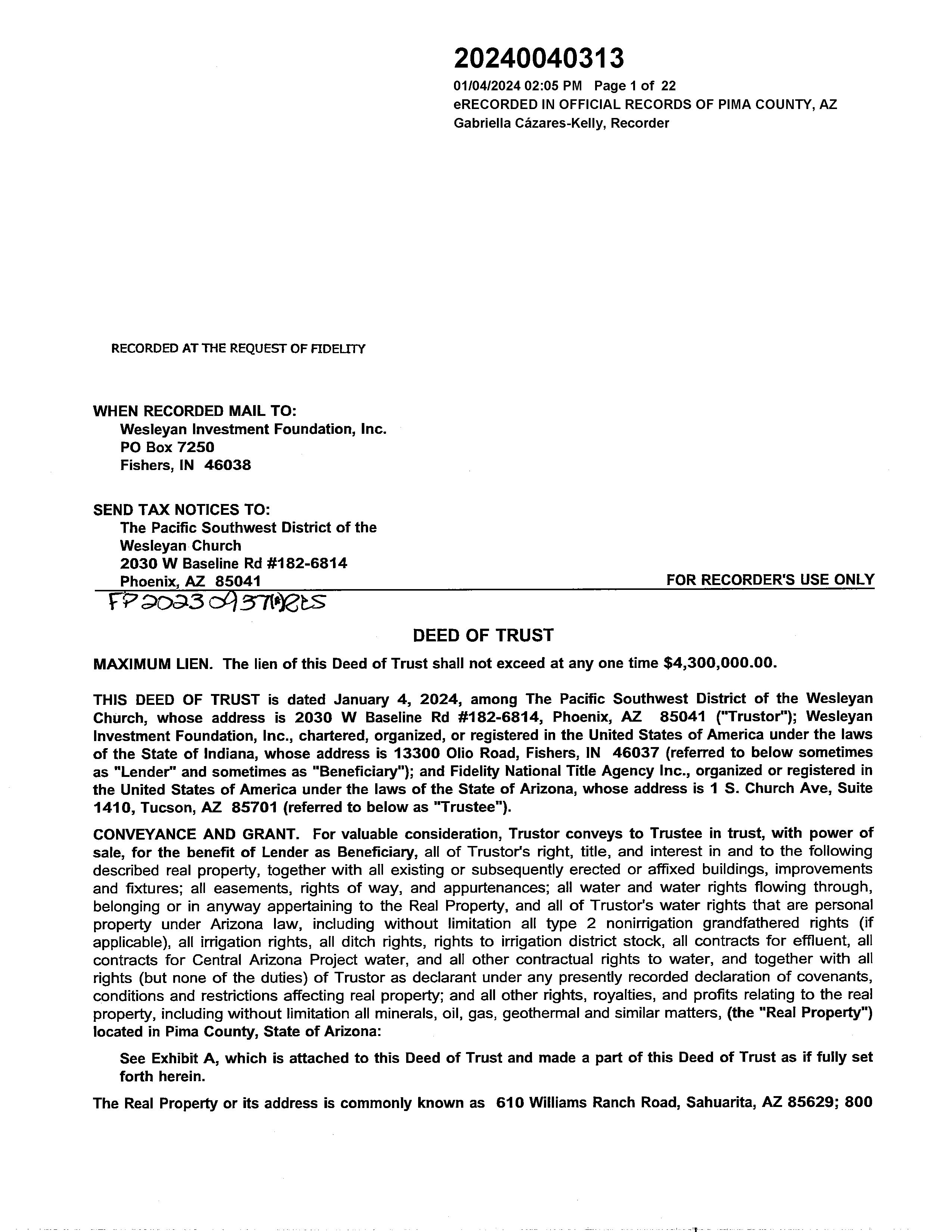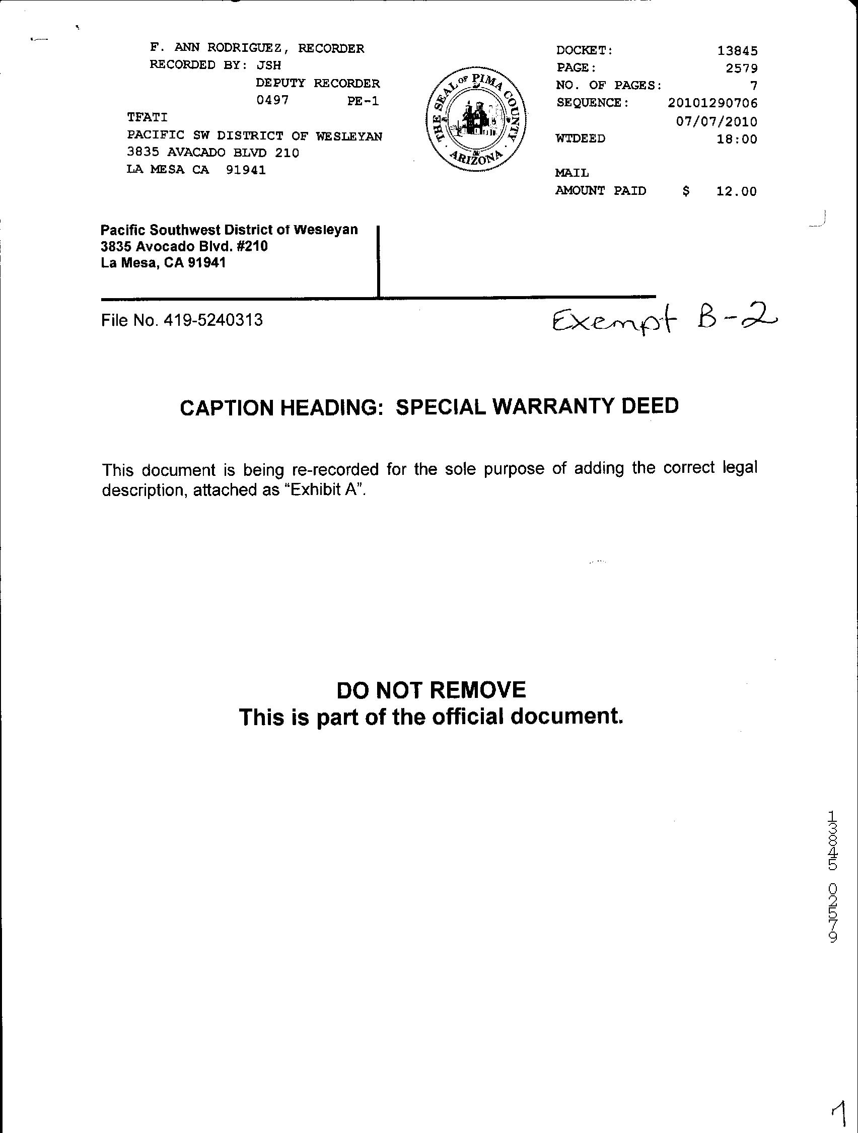 OWNER: PACIFIC SOUTHWEST DIESTRICT OF WESLEYAN 13845 2579