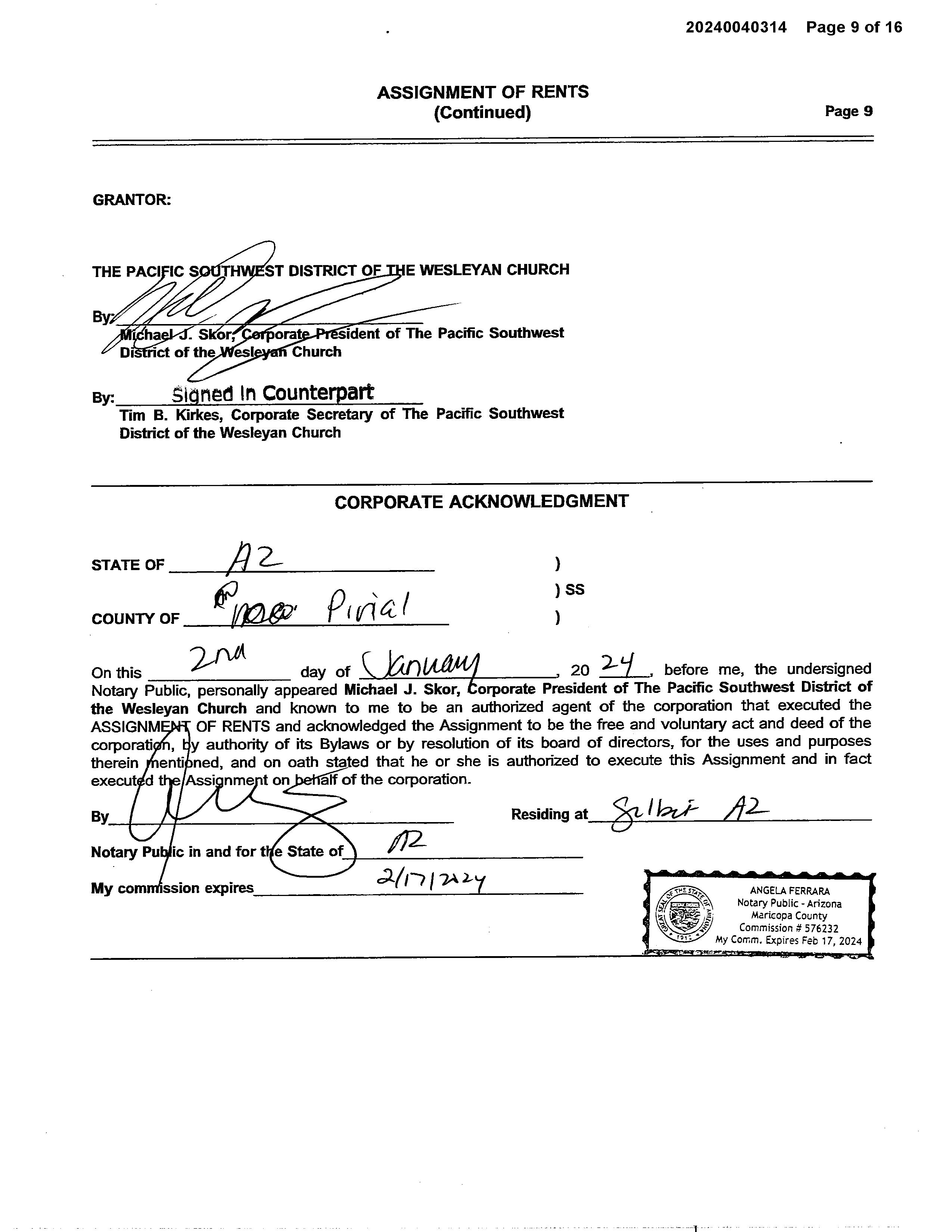 OWNER: PACIFIC SOUTHWEST DIESTRICT OF WESLEYAN
