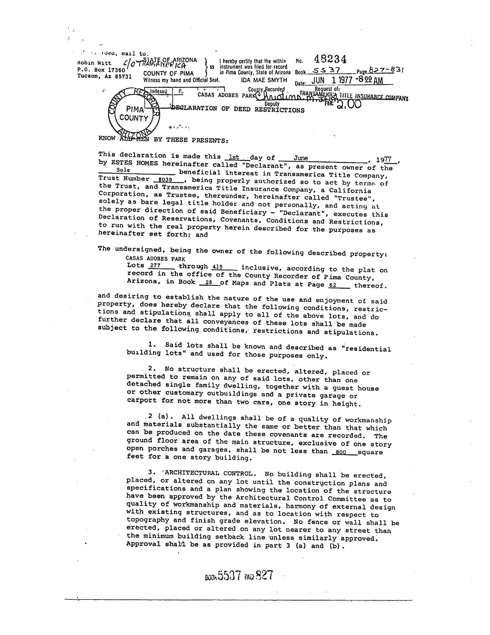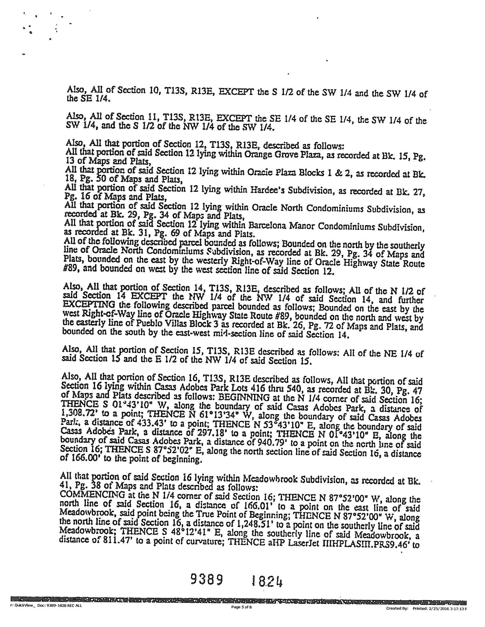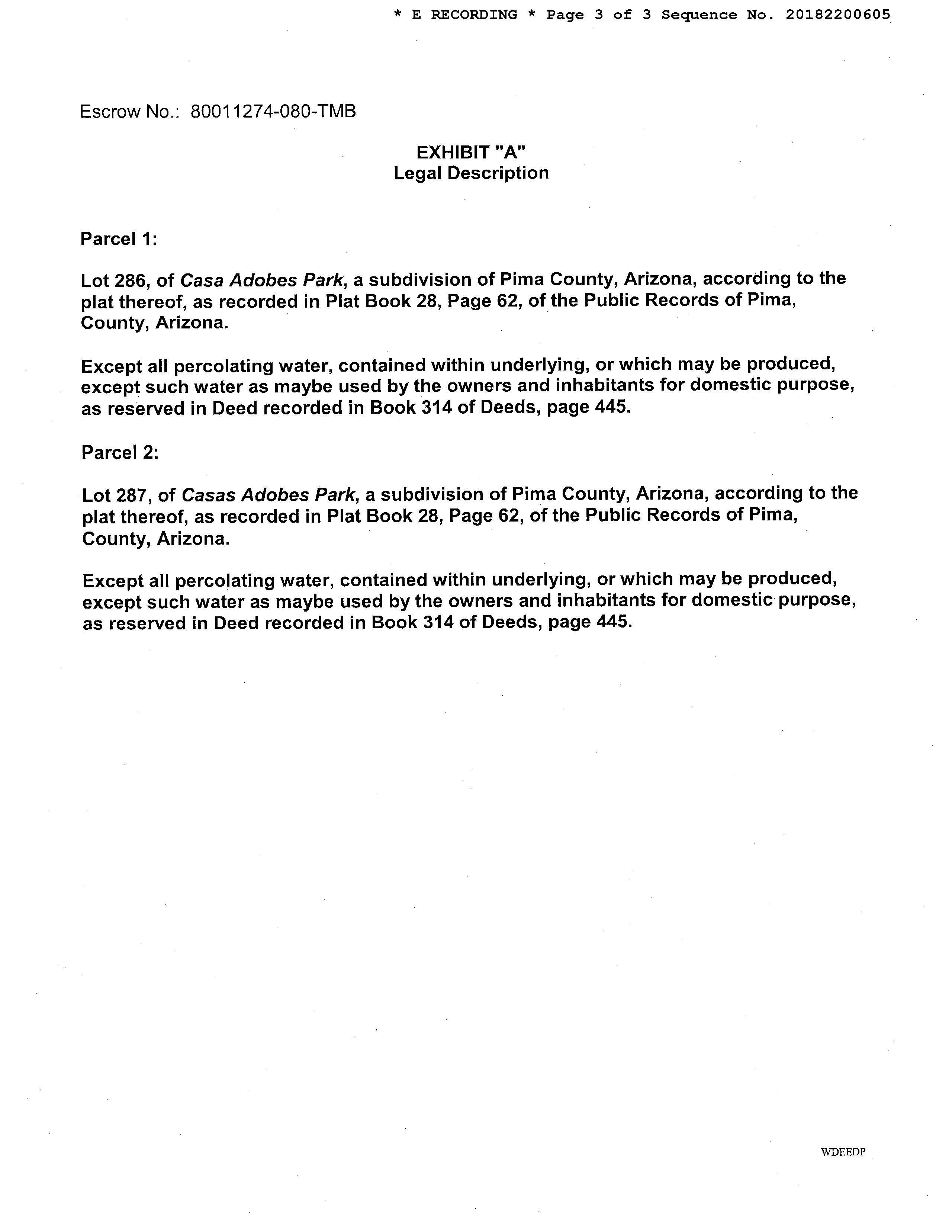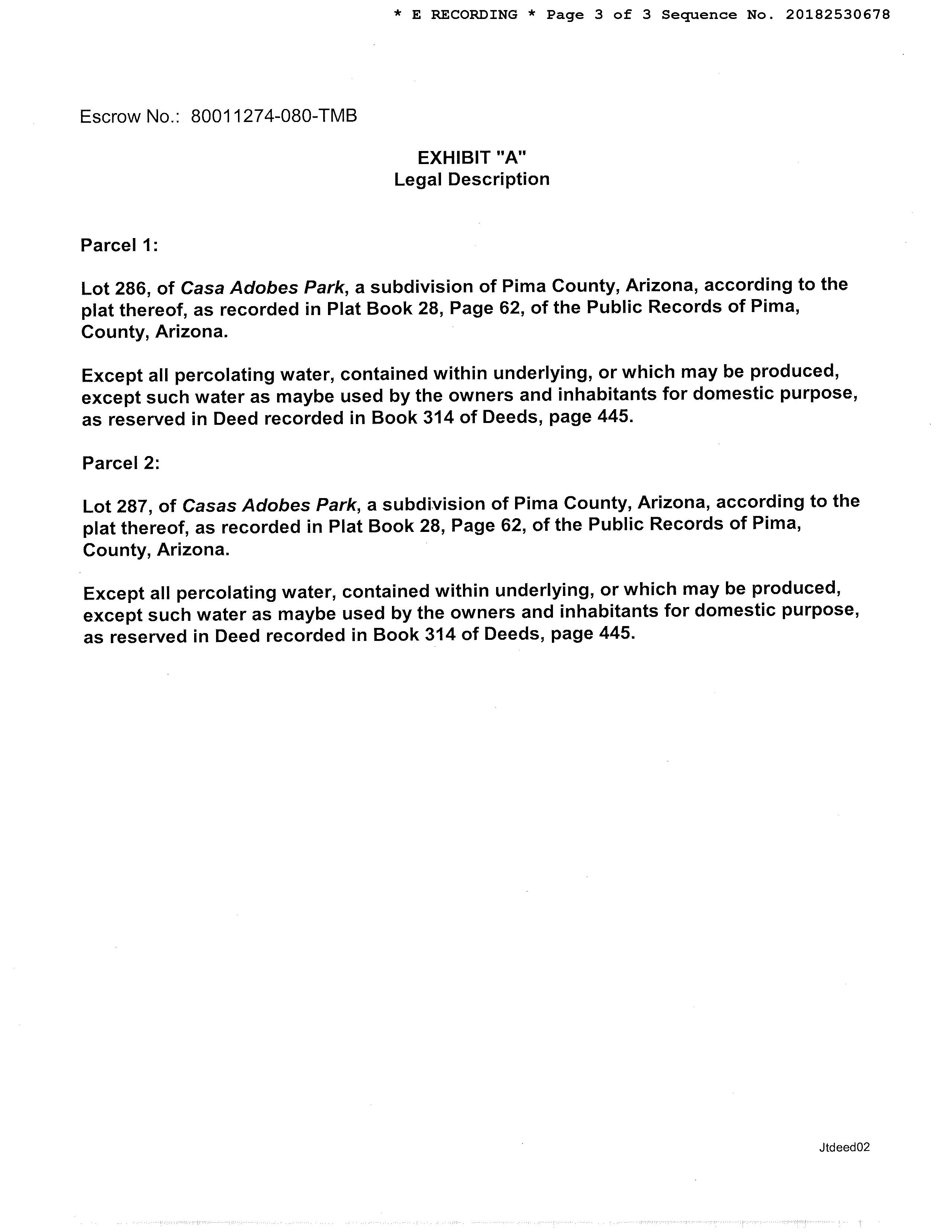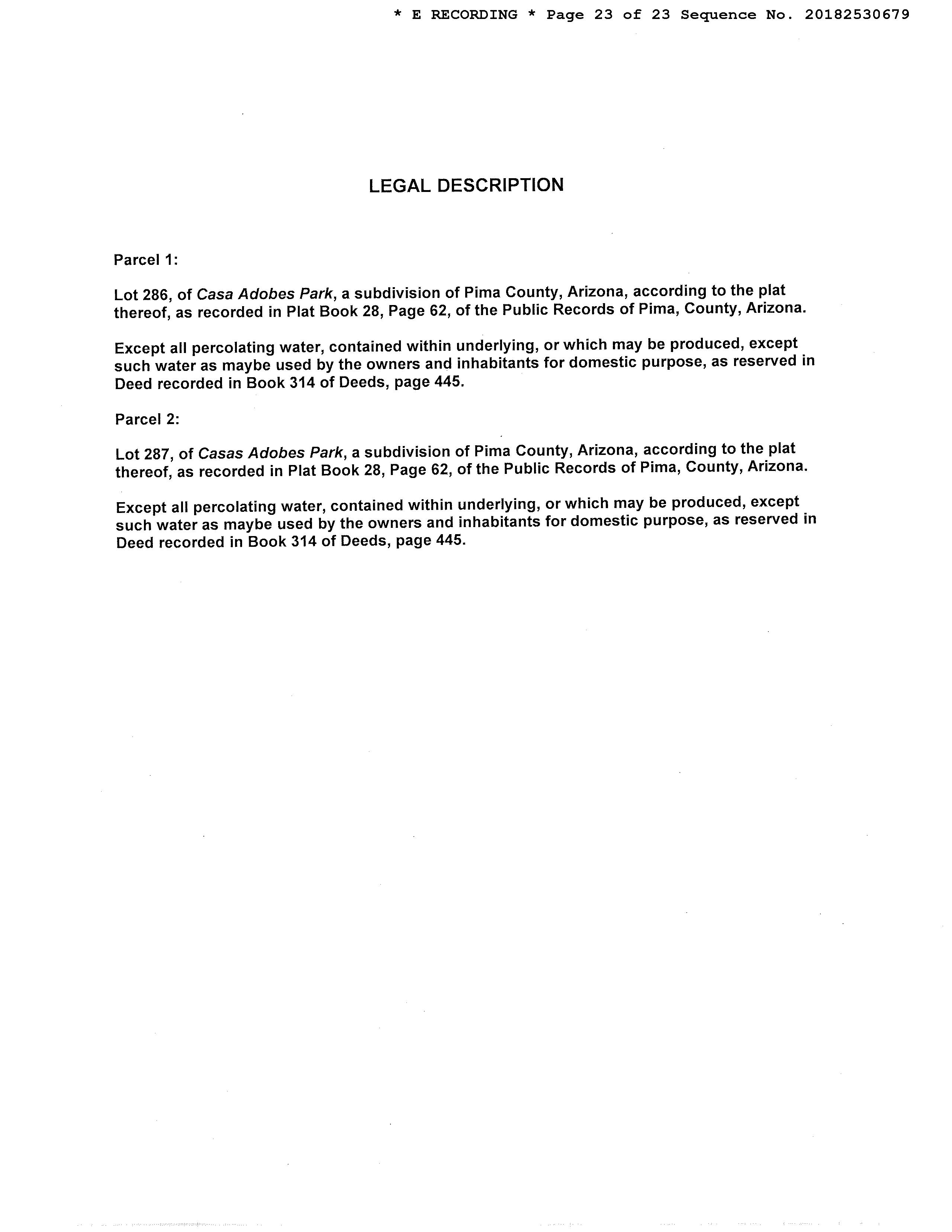 LEGAL: CASAS ADOBES PARK LOTS 286 & 287