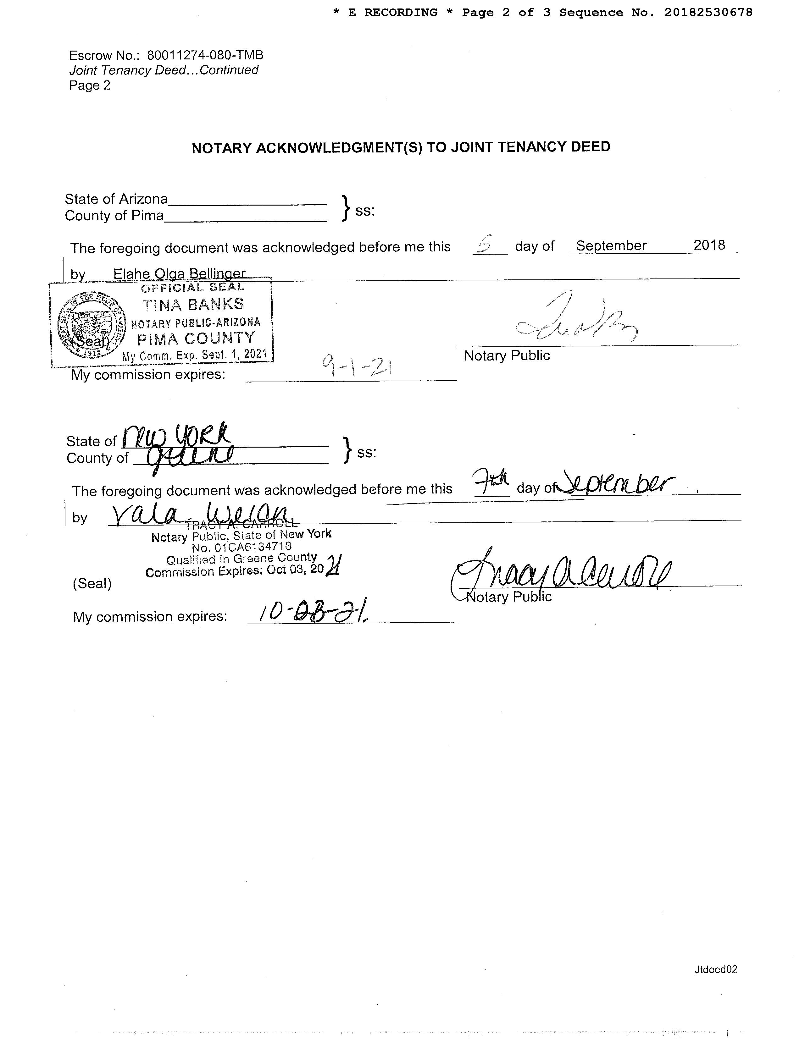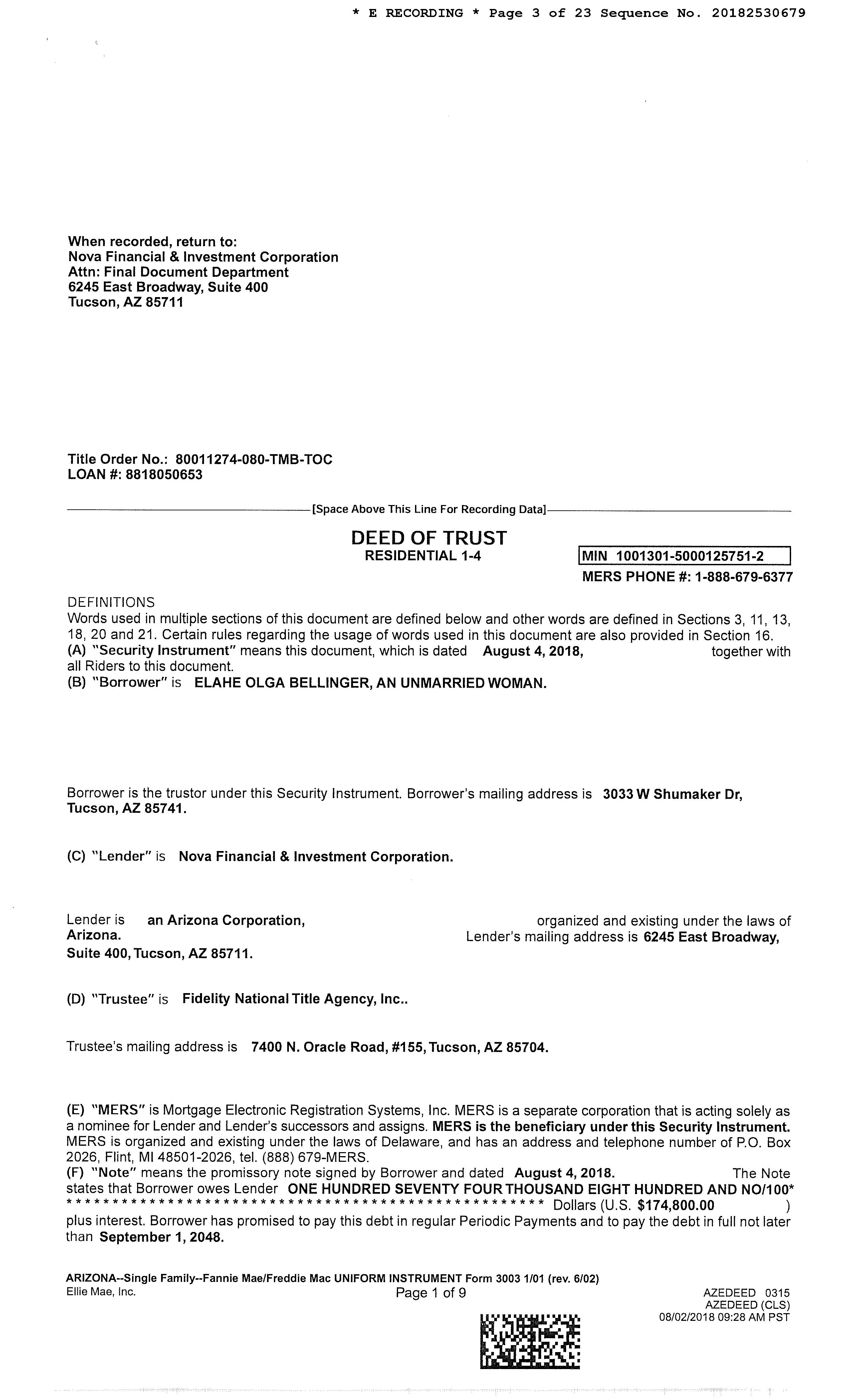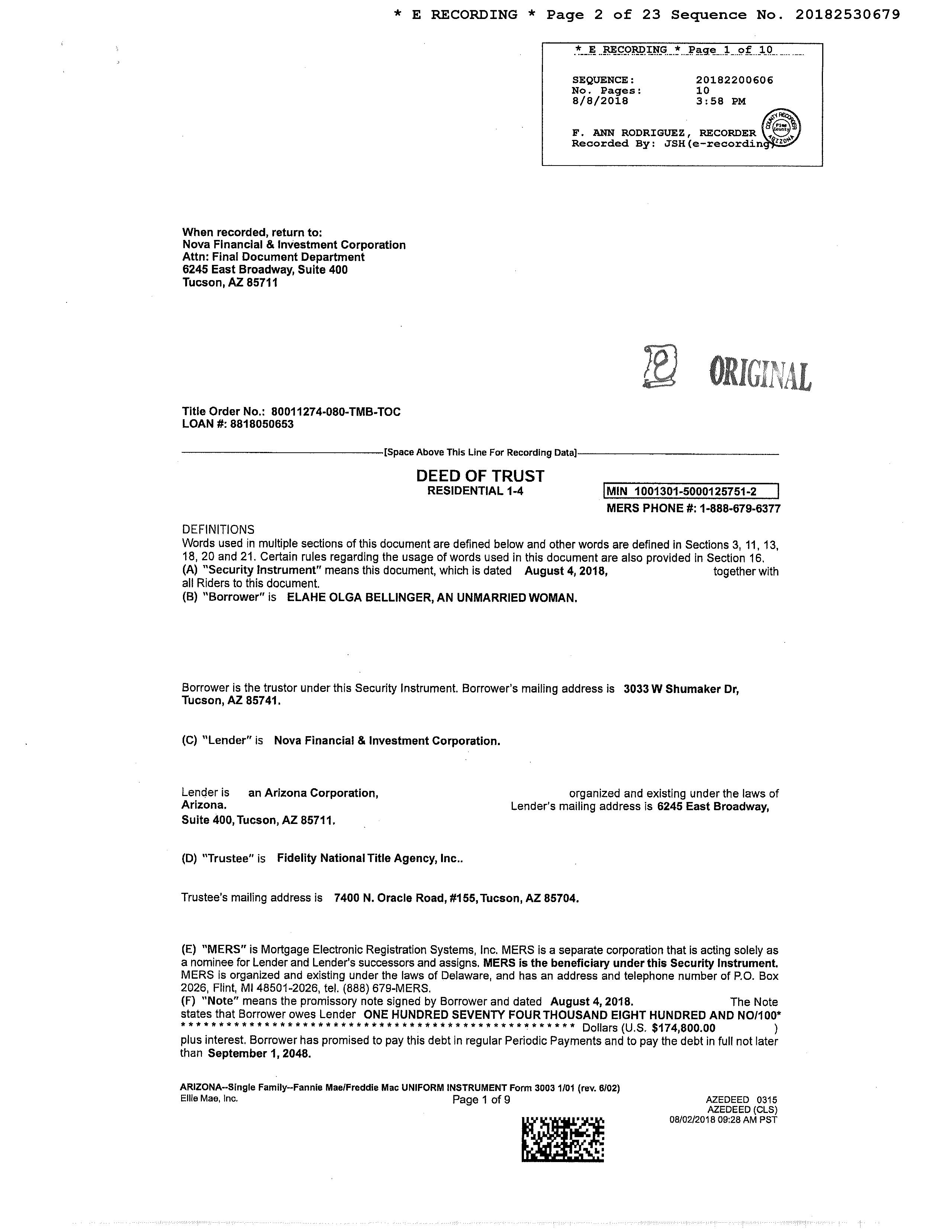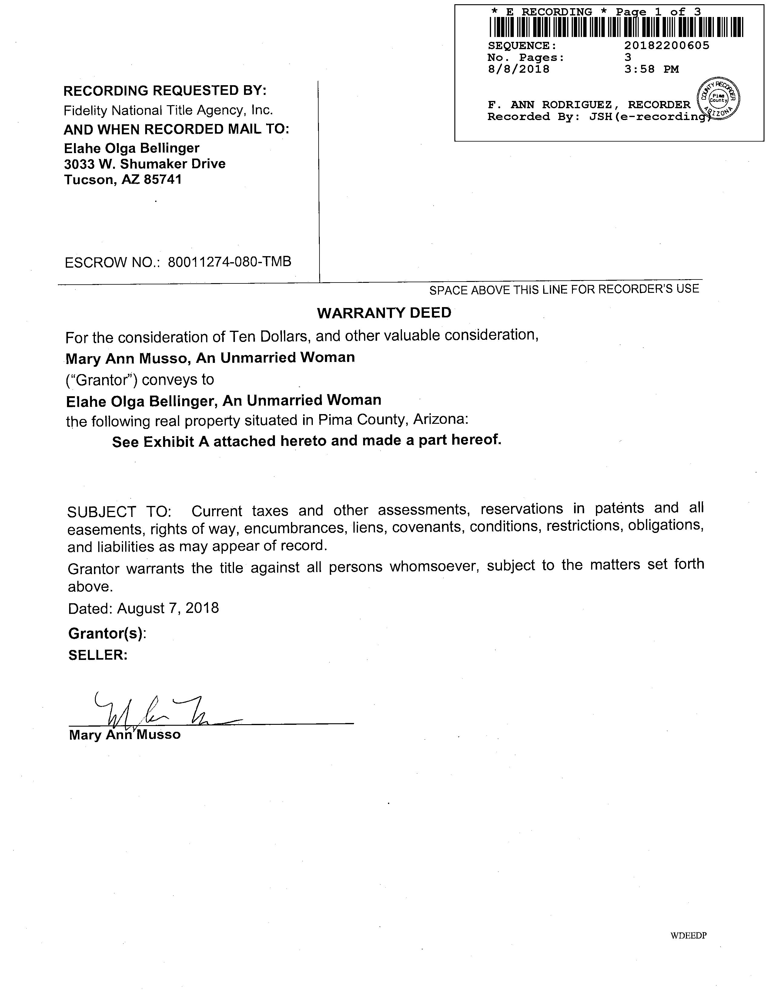 OWNER: BELLINGER ELAHE OLGA AFFIDAVIT 2018 2200605 08/08/2018