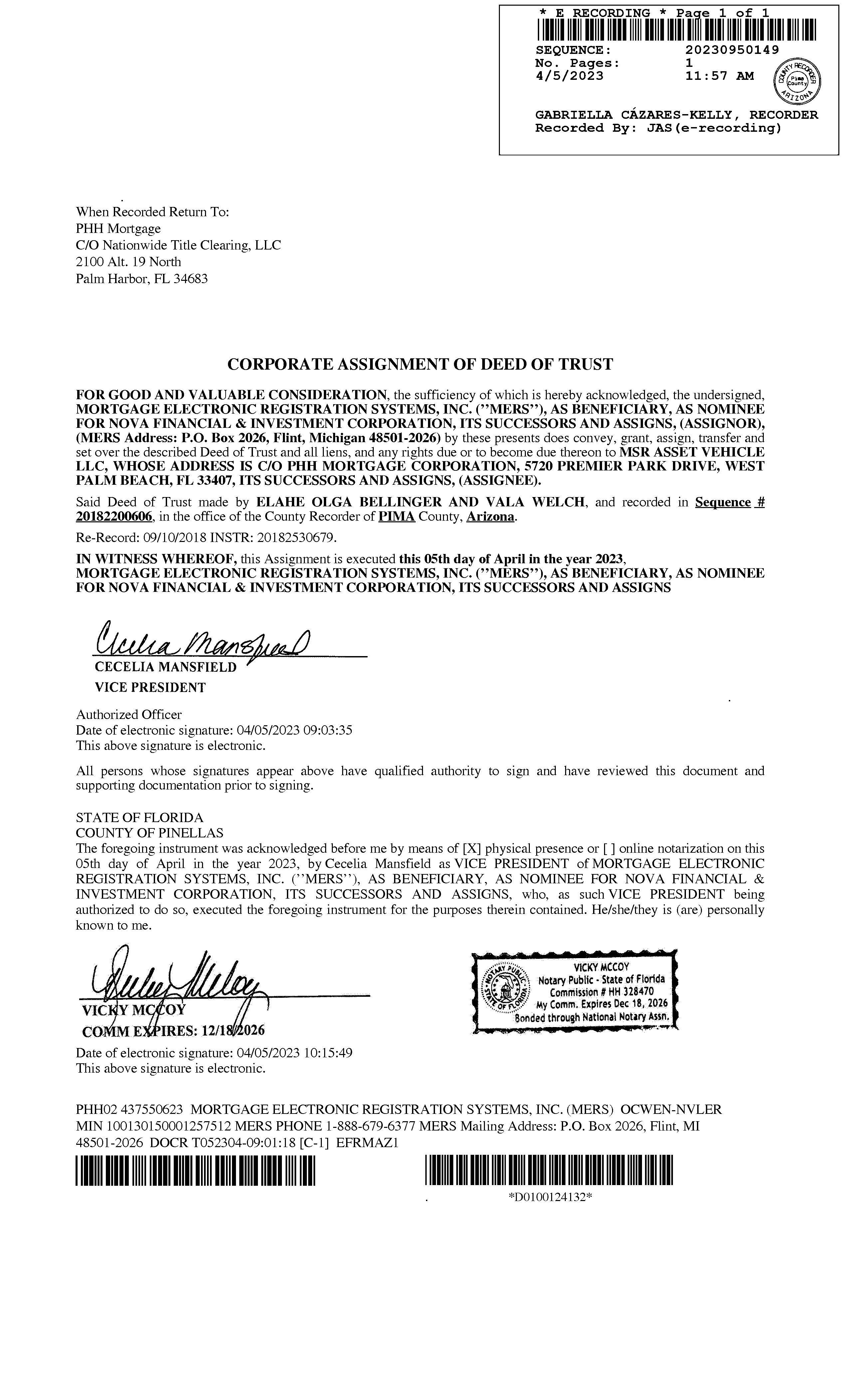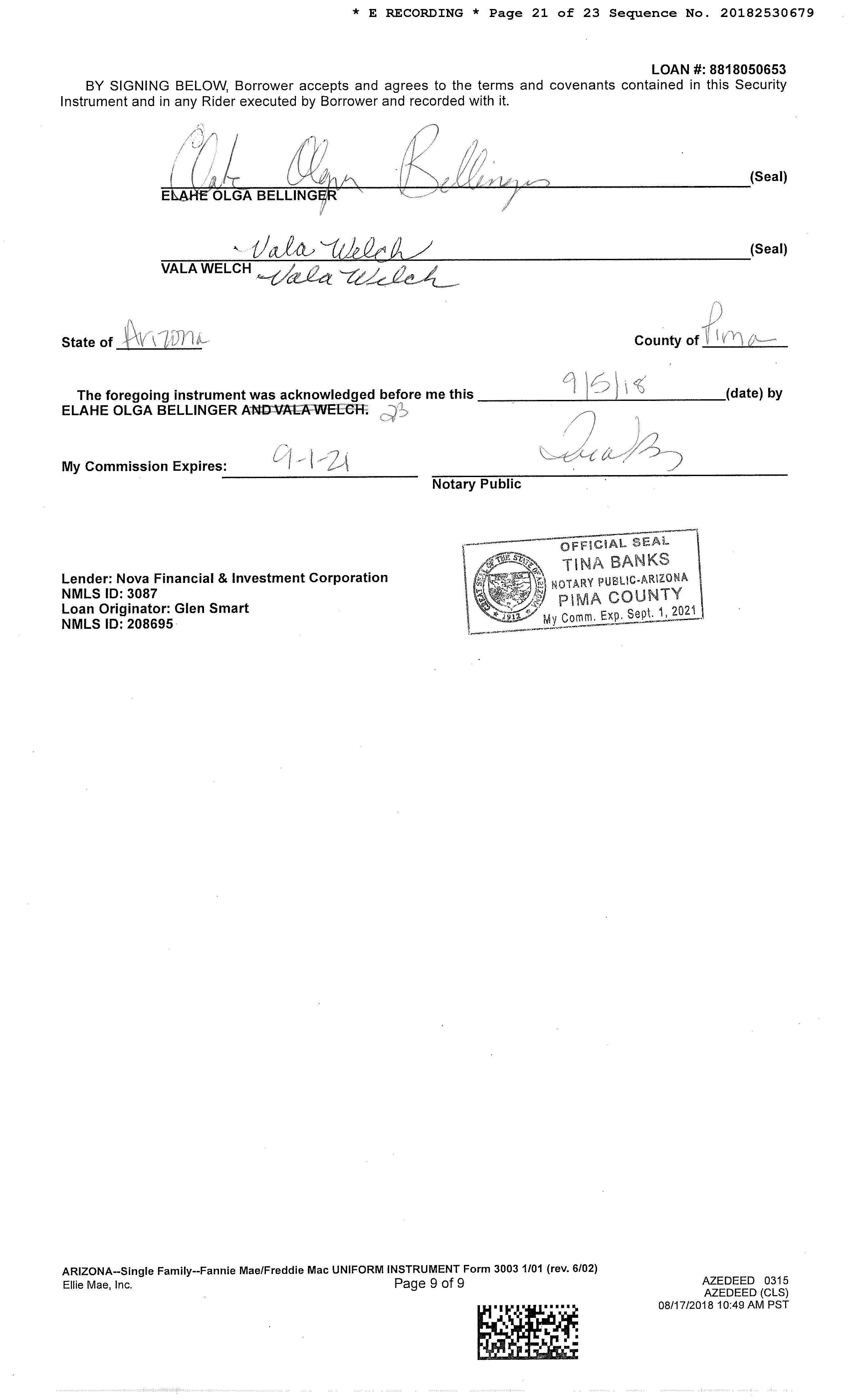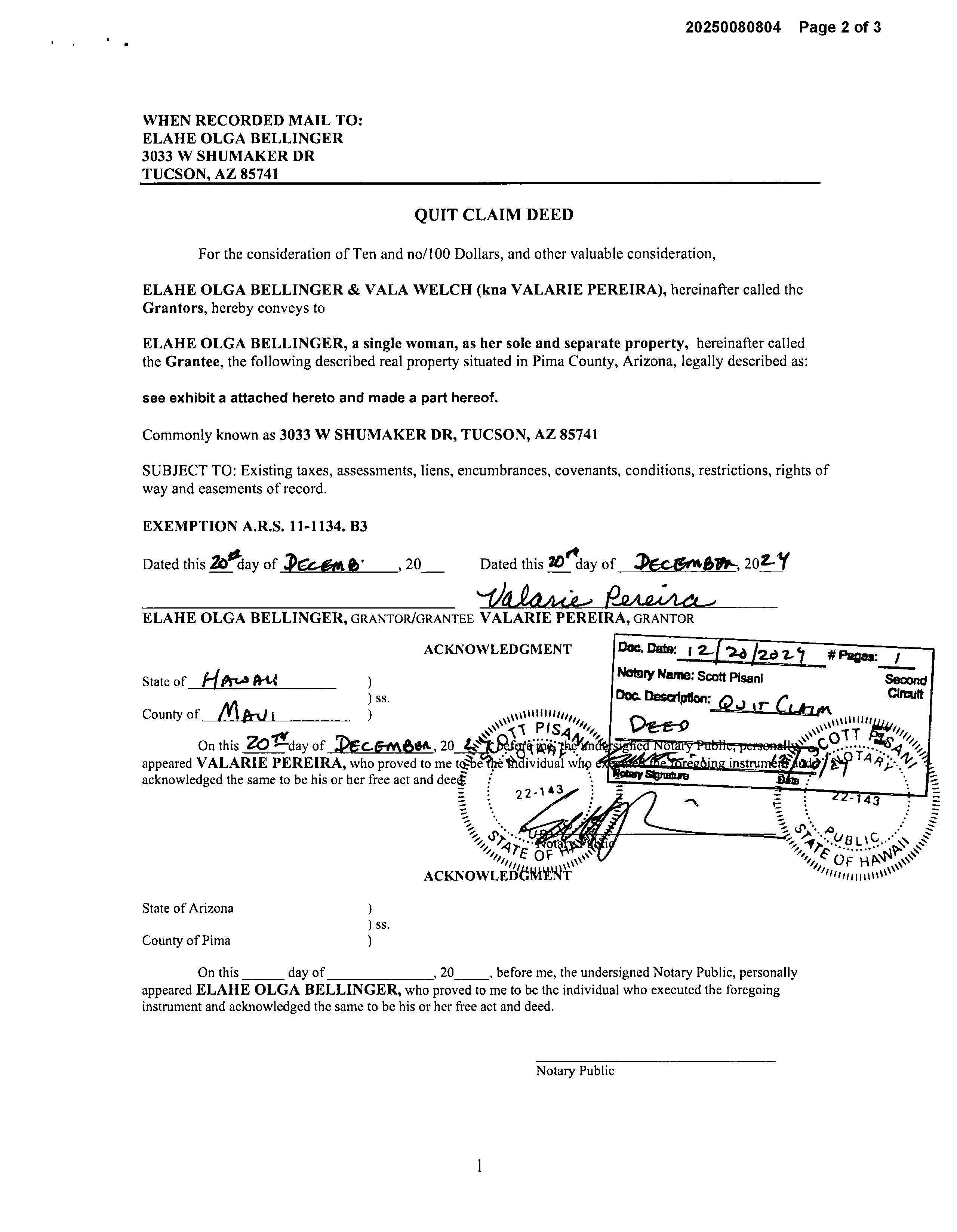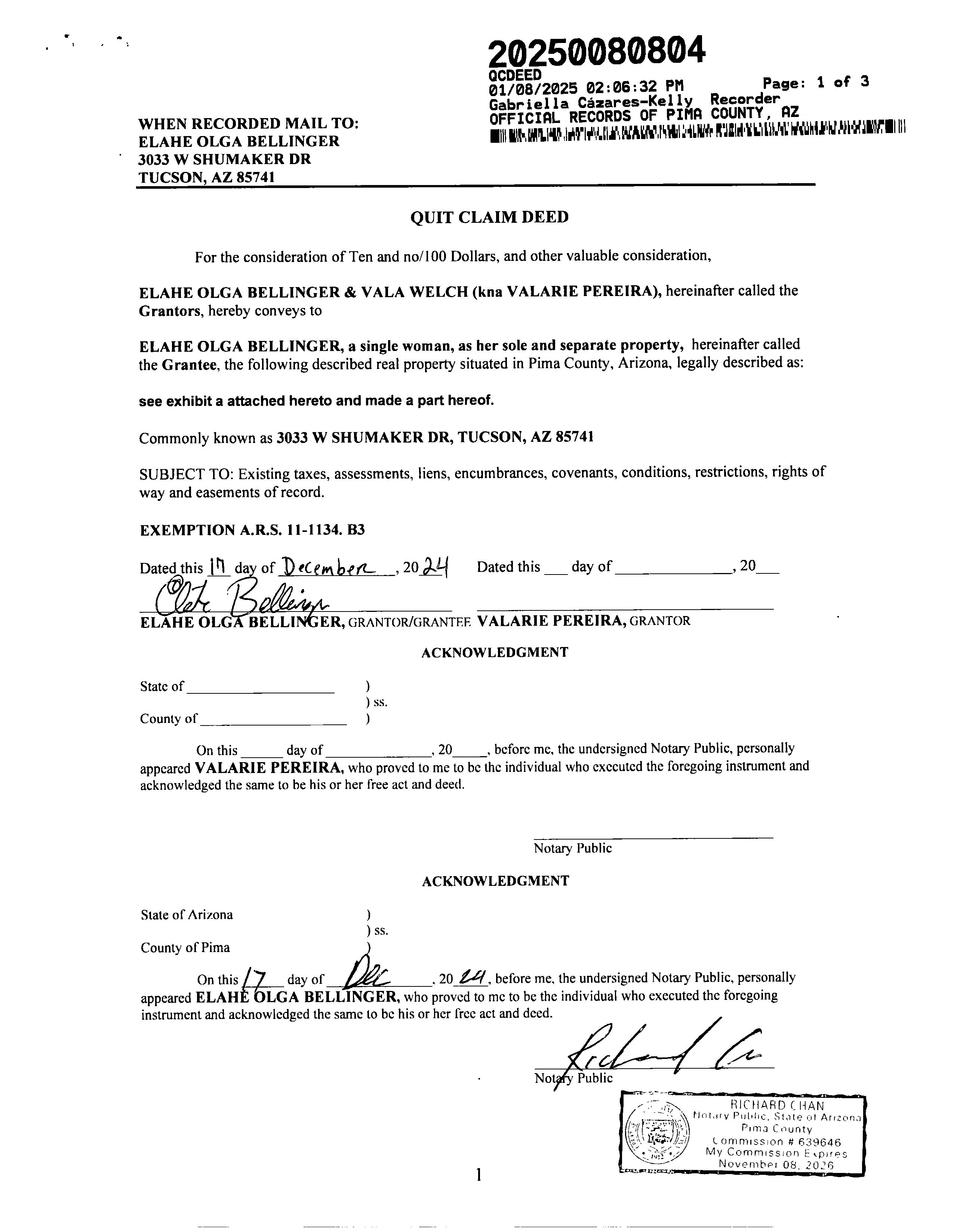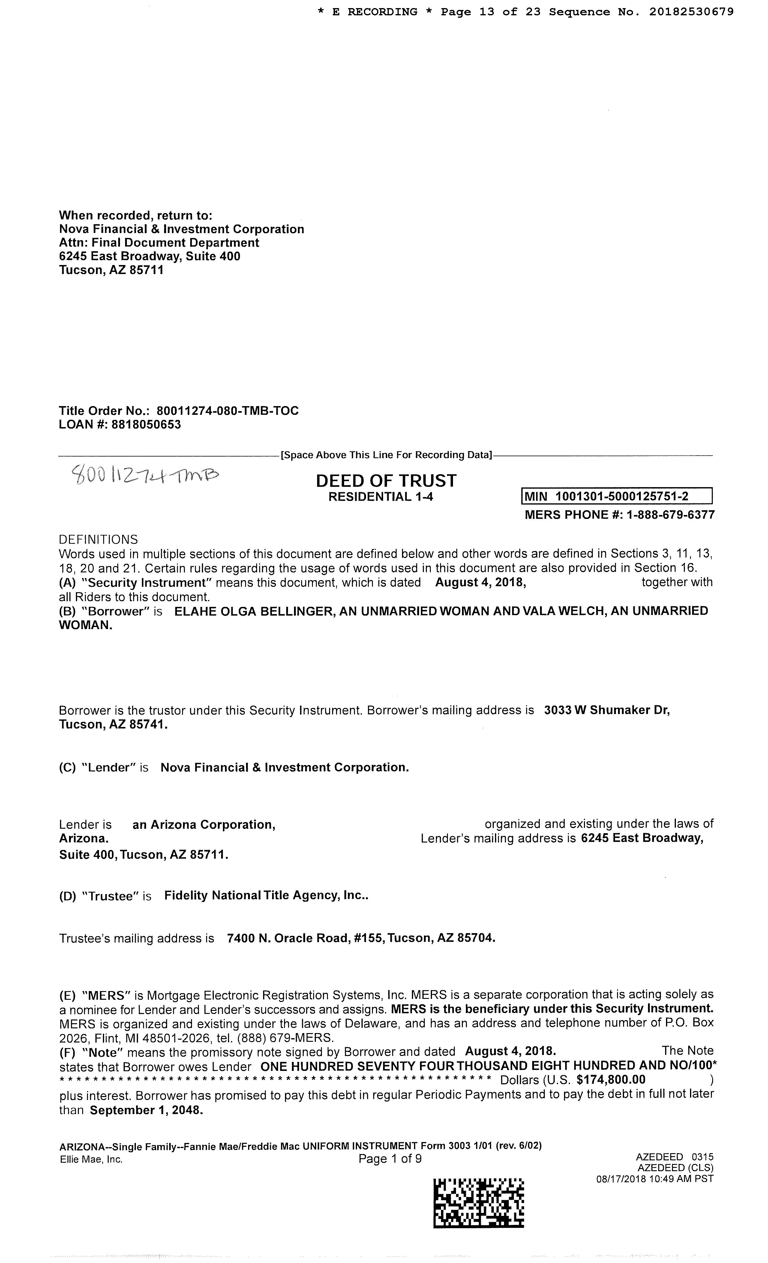 OWNER: BELLINGER ELAHE OLGA AFFIDAVIT 2018 2200605 08/08/2018
