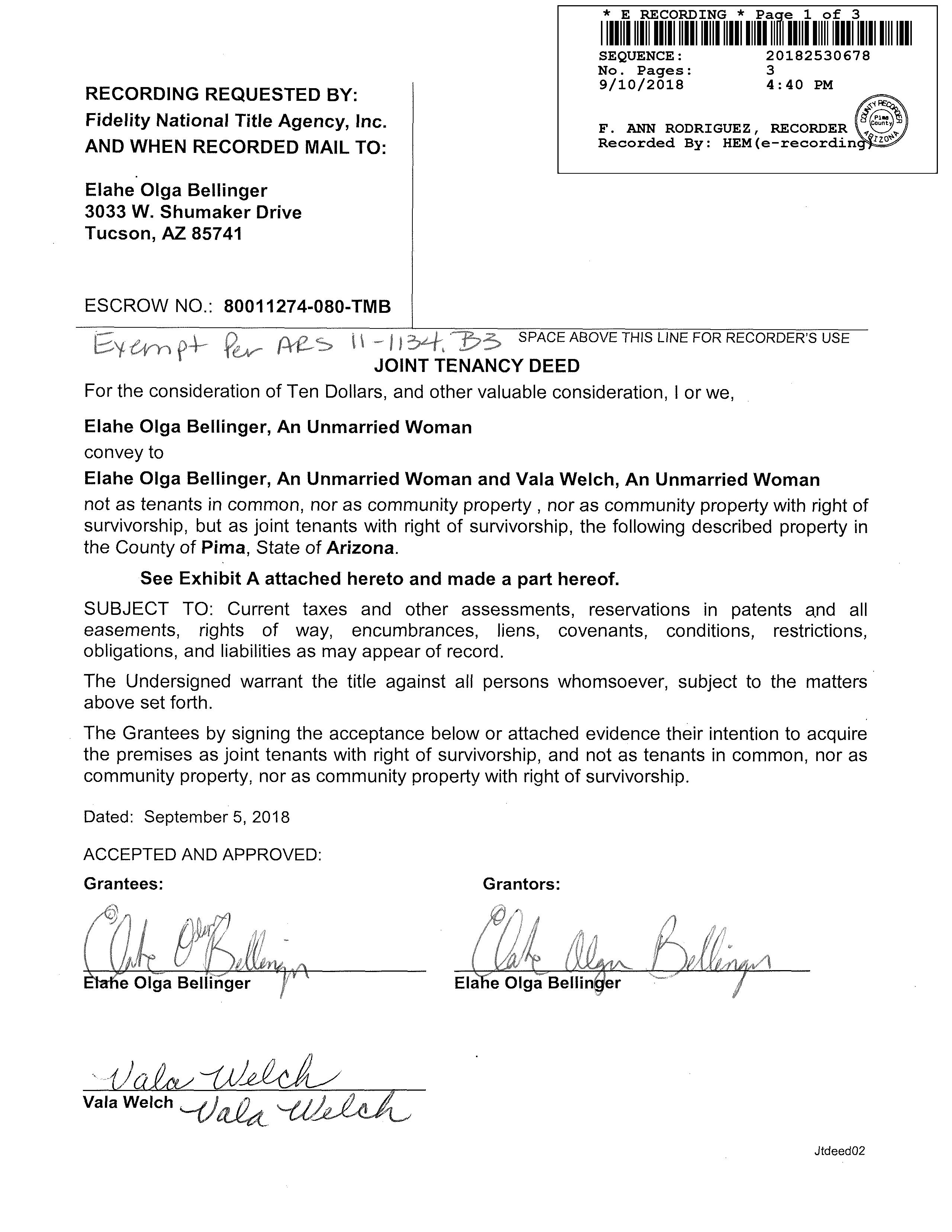 OWNER: BELLINGER ELAHE OLGA WELCH VALA JT RS