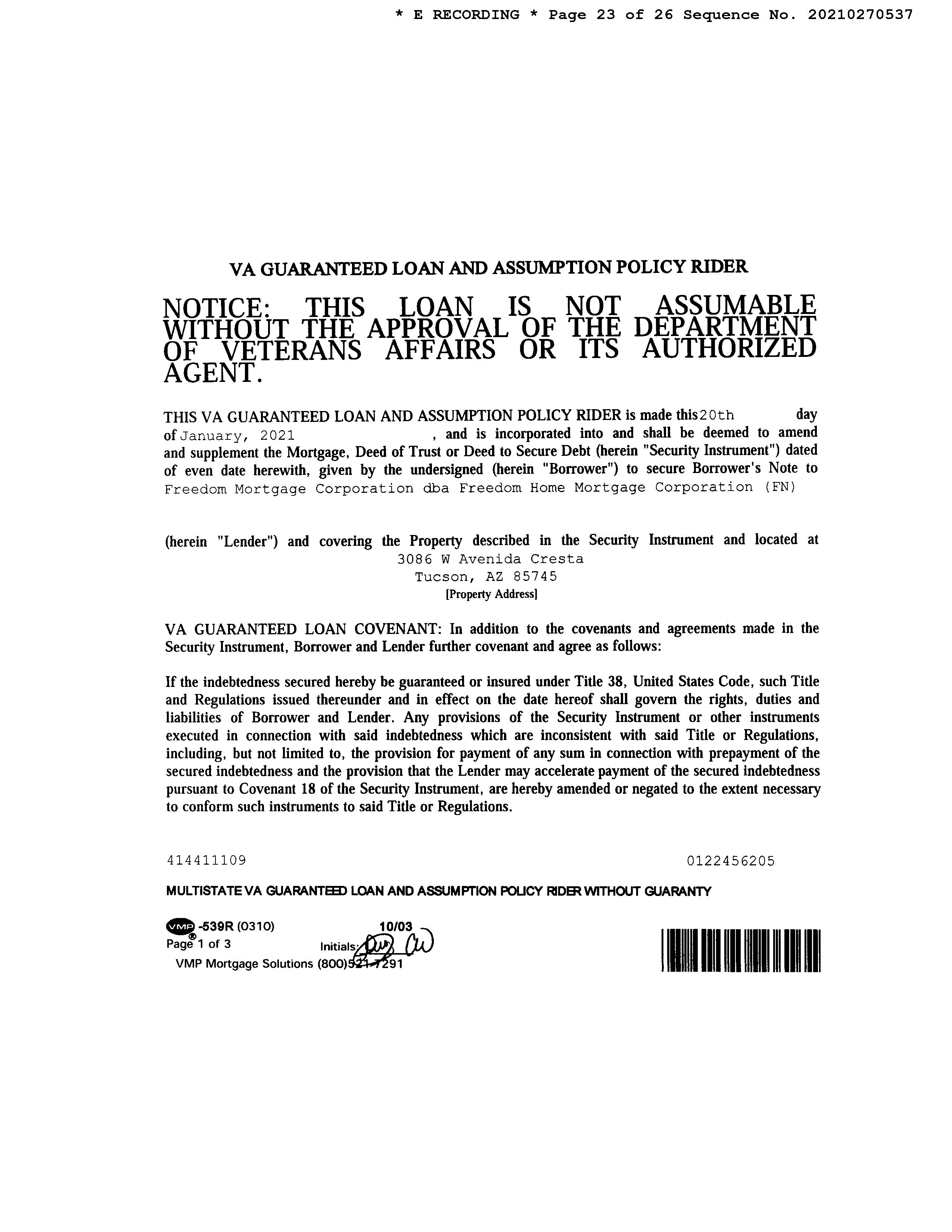 Mailing Address : 3086 W Avenida Cresta, Tucson AZ 85745-1025 R049