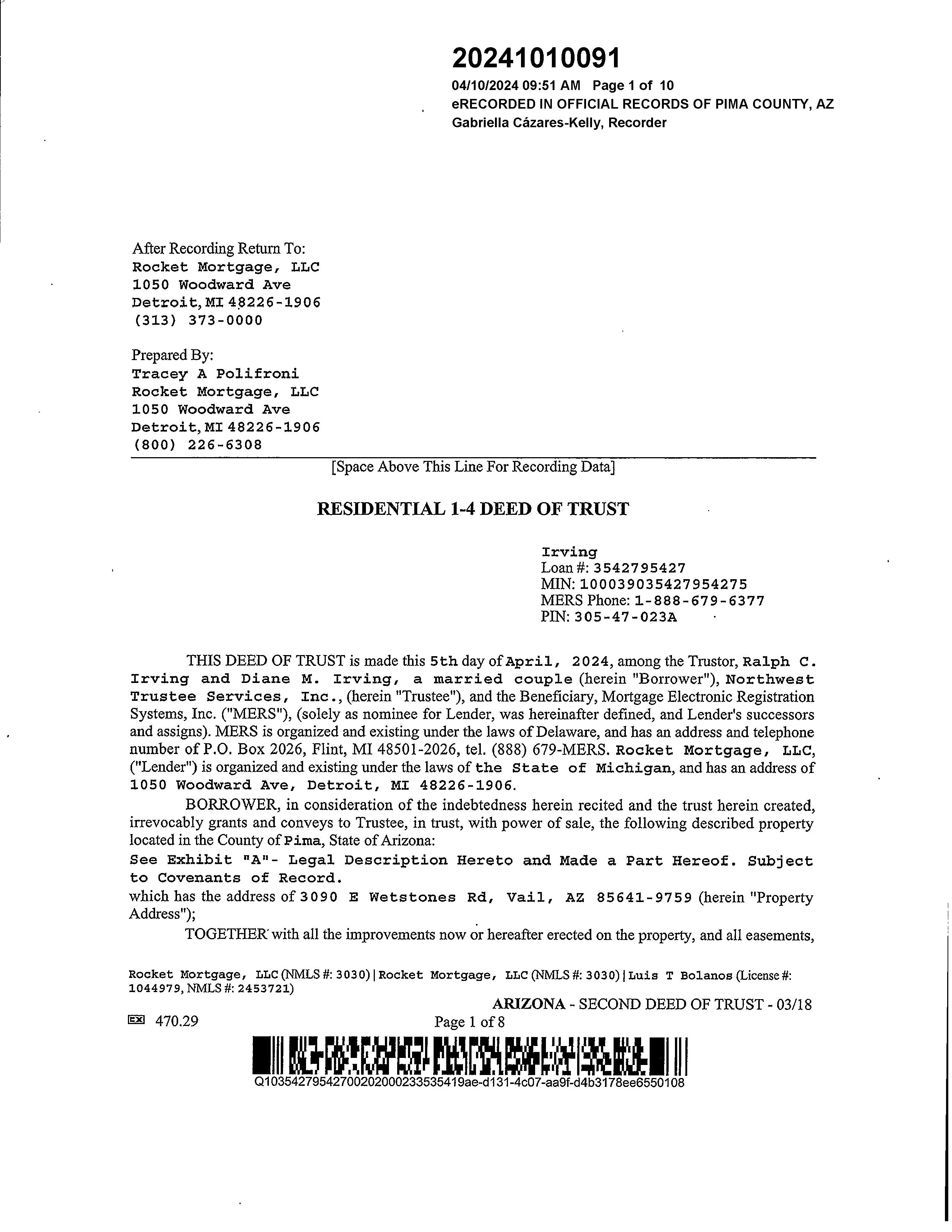 Subject Property : 3090 E Wetstones Rd Vail AZ 85641 Customer Name : Lisa Mrazek Customer Company Name : First American Title Insurance Company Prepared On : 04/18/2024 © 2024 CoreLogic. All rights reserved