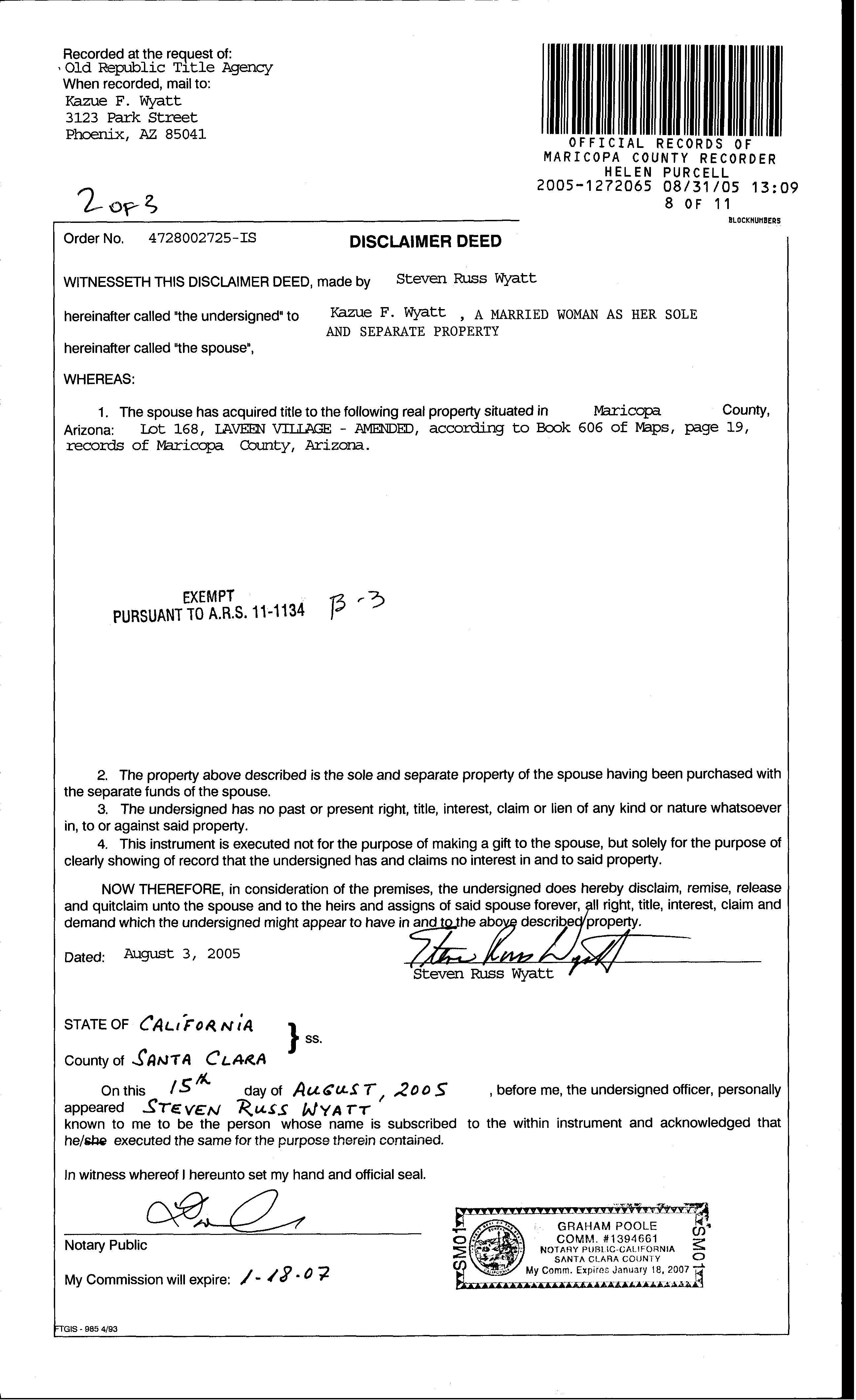 This information is furnished without fee and without benefit of a complete title search. No liability is assumed by First American Title. If it is desired that liability be assumed, you may apply for a policy of title insurance with First American Title Insurance Company.