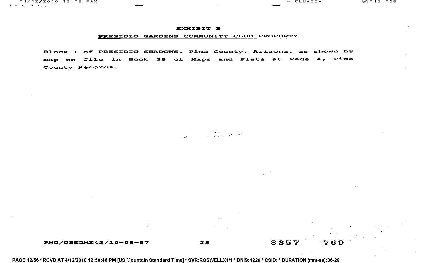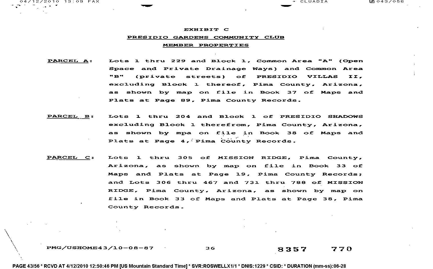 Mailing Address : 3220 W Camino Salero, Tucson AZ 85746-5059 C015