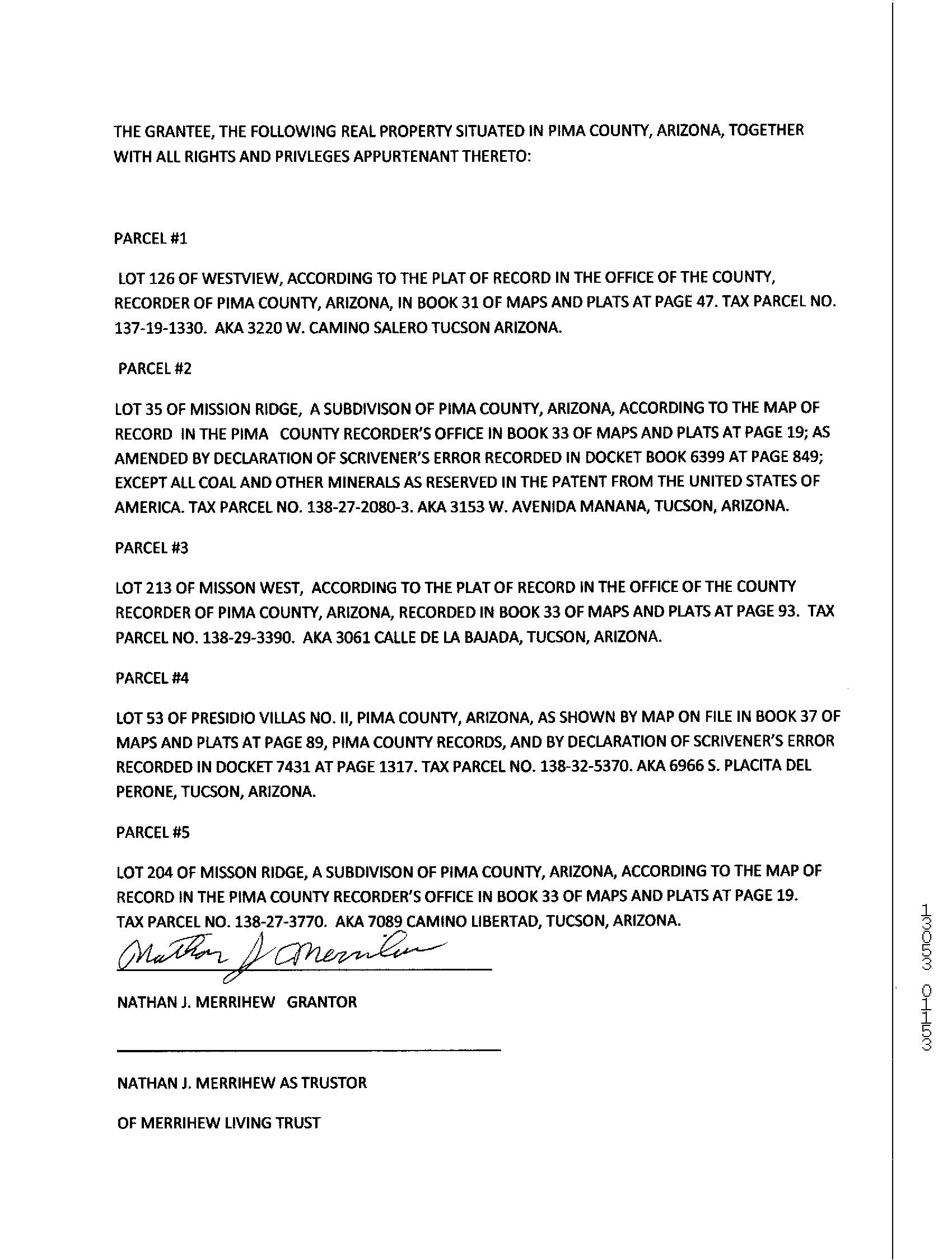APN / Alternate APN: 138-35-1580 / Deed Type: Warranty Deed