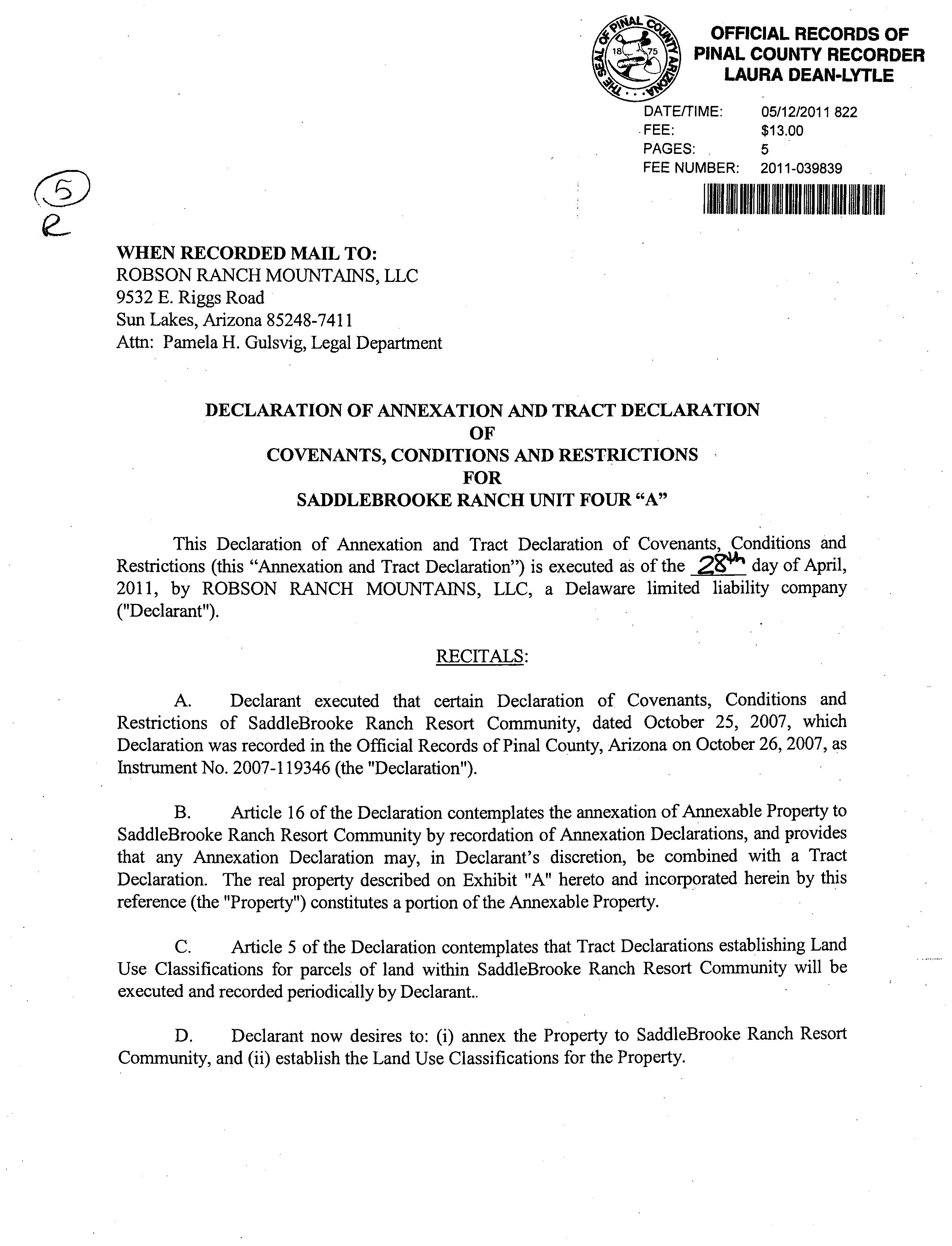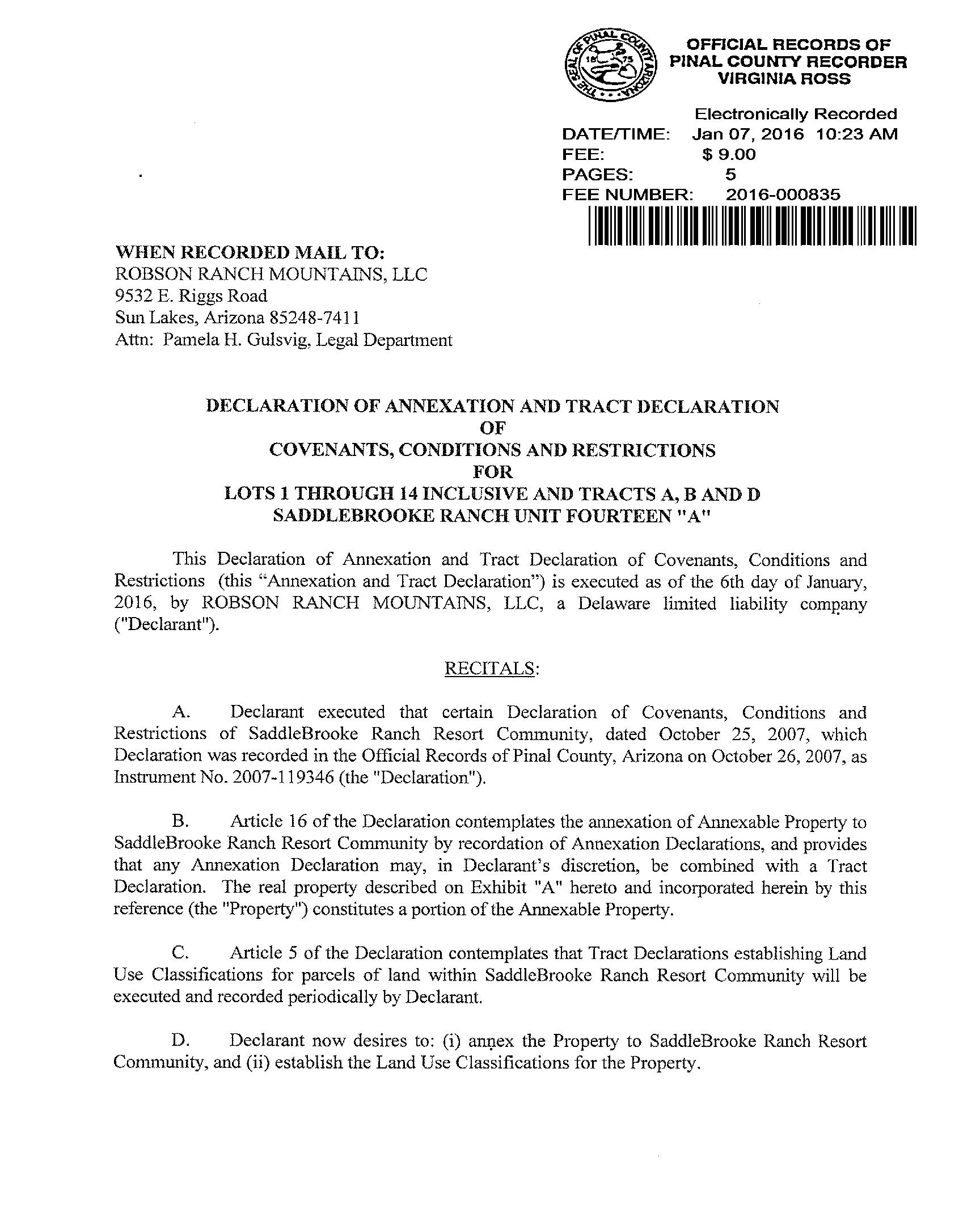 Legal Description : Lot 01 Saddlebrooke Ranch Unit Two Cab G - Sld 040 Secs 5 10s-14e