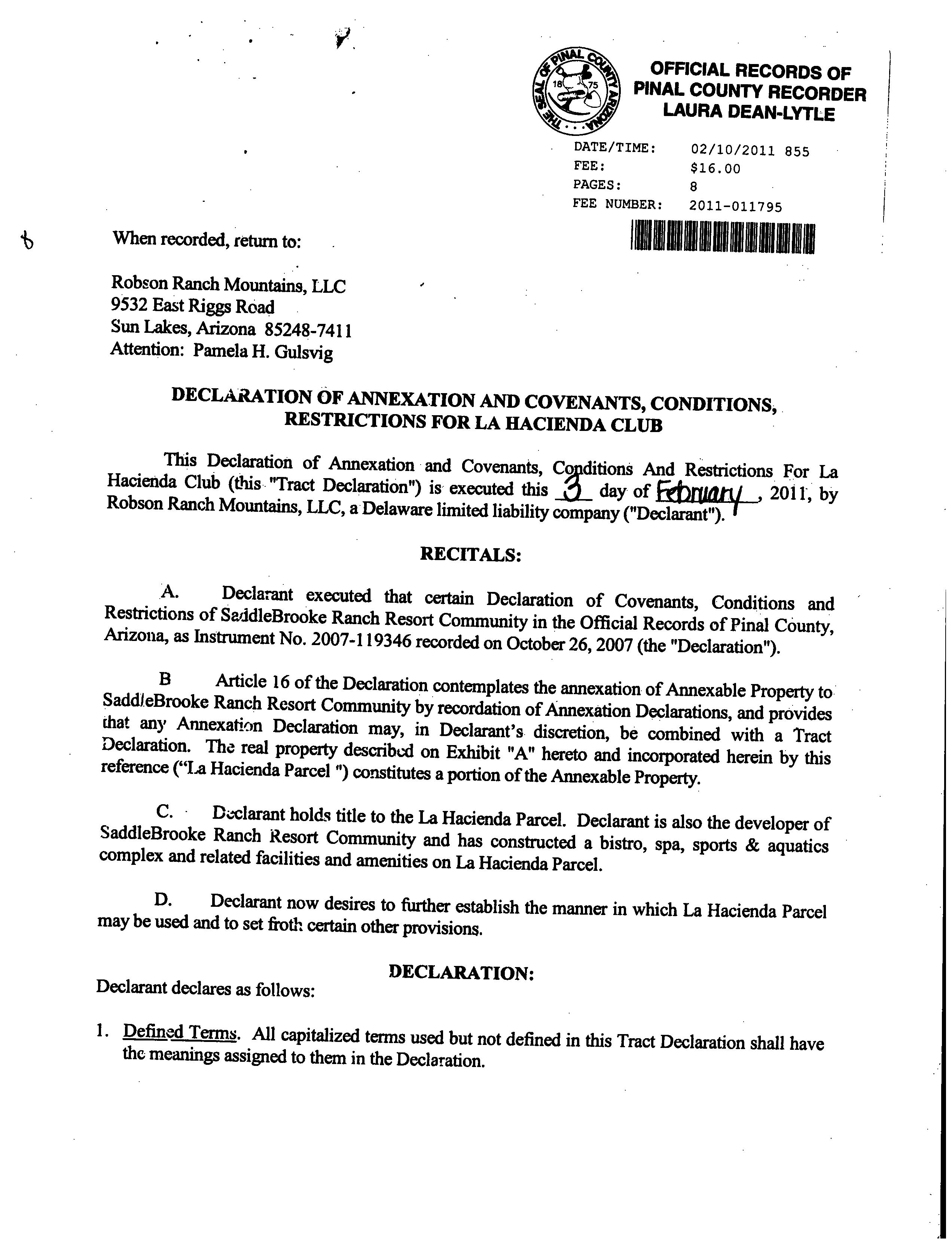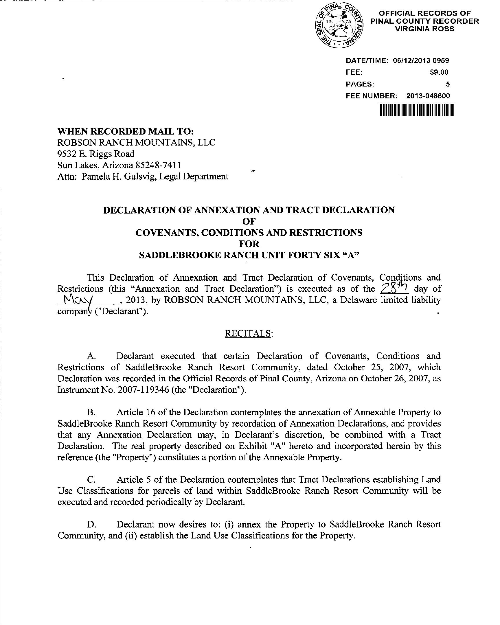 LEGAL: LOT 01 SADDLEBROOKE RANCH UNIT TWO CAB G - SLD 040 SECS 5 10S-14E