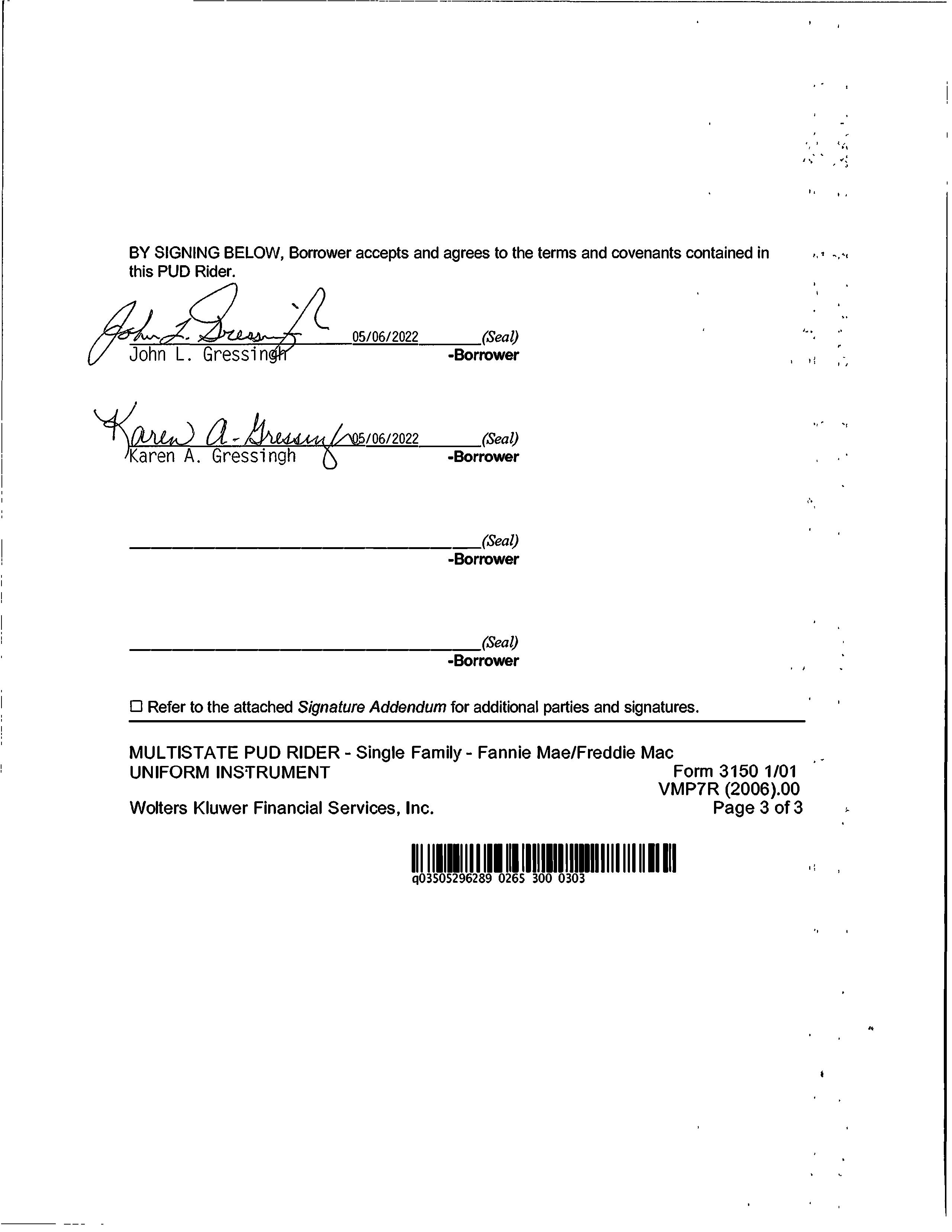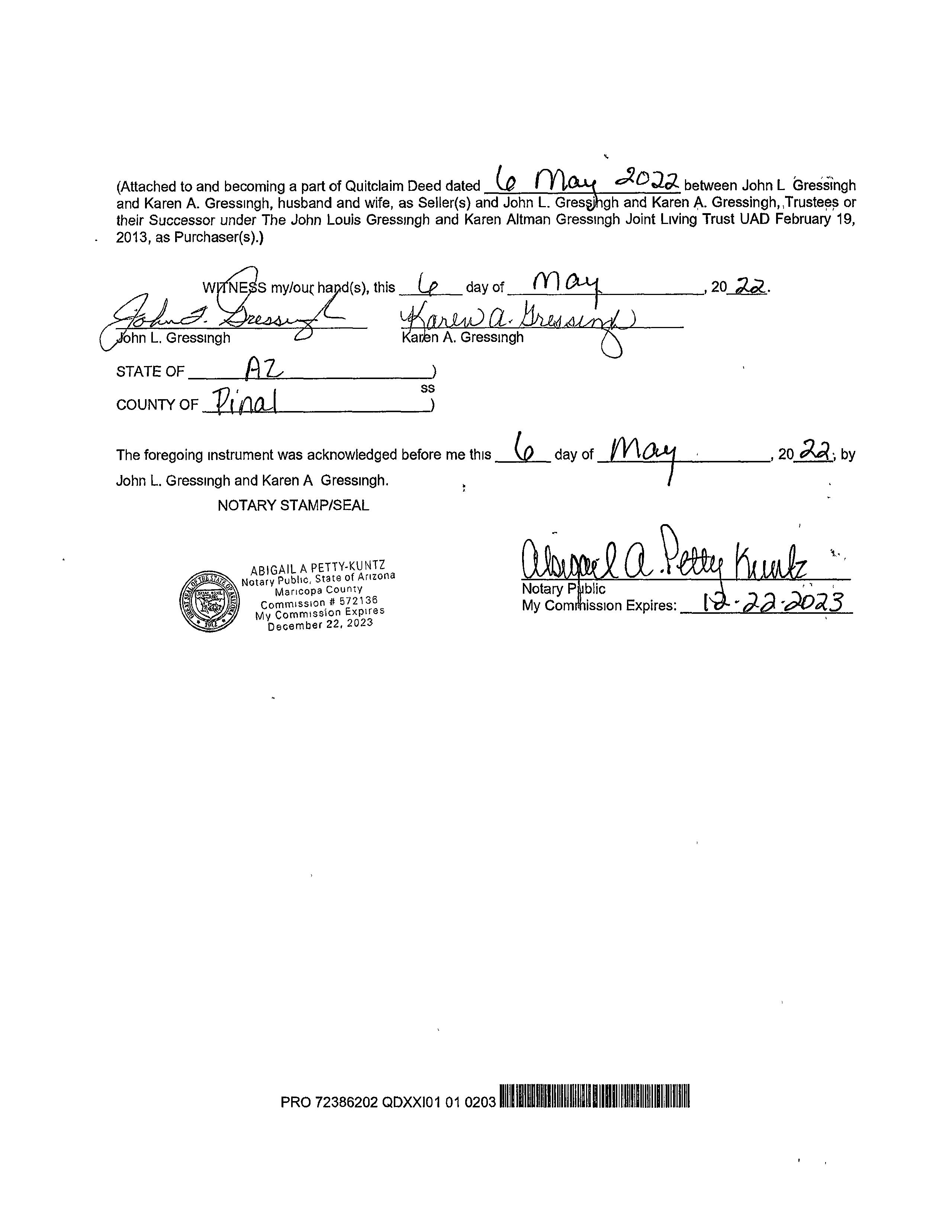 OWNER: GRESSINGH JOHN L/KAREN A AFFIDAVIT 2012 85450 10/02/2012