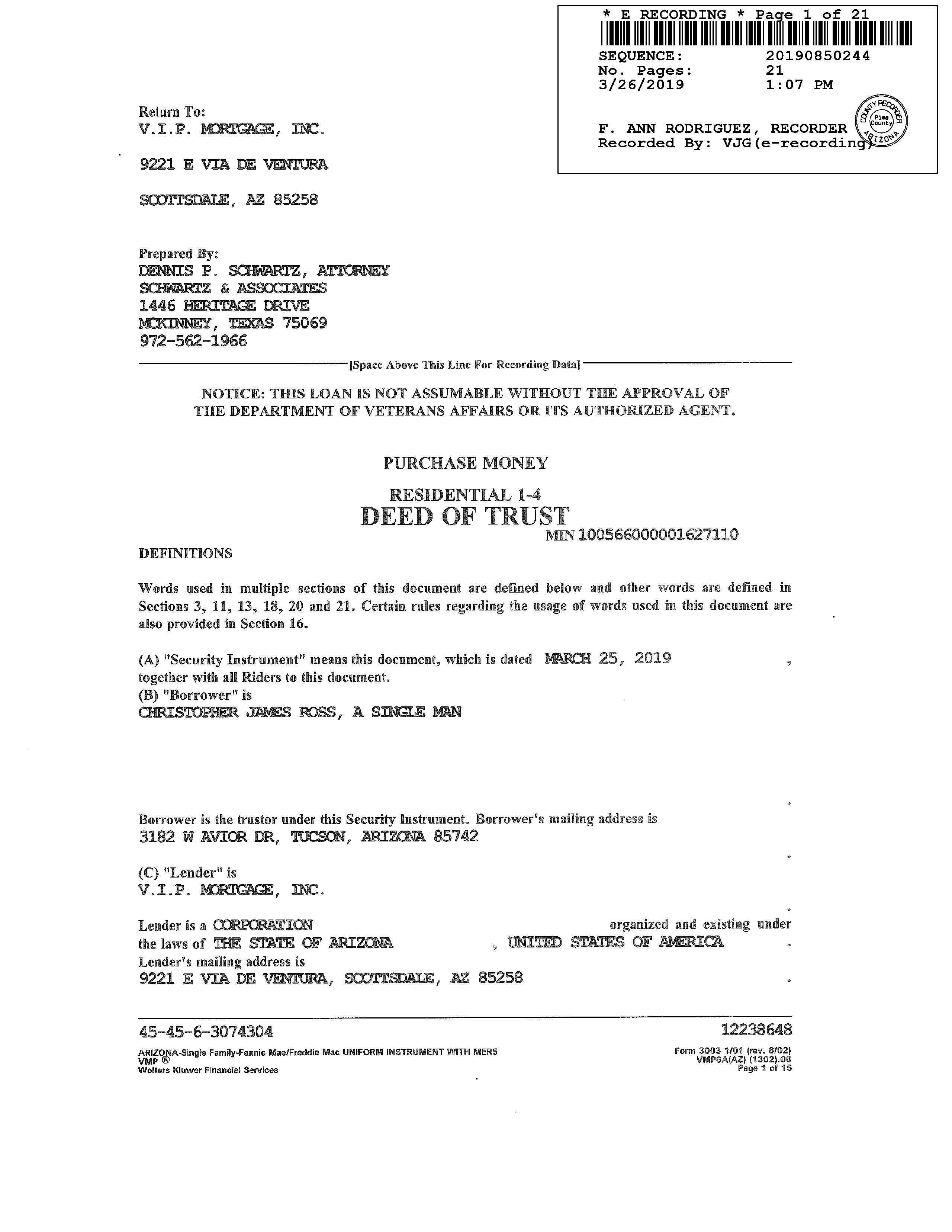 OWNER: ROSS CHRISTOPHER JAMES AFFIDAVIT 2019 850243 03/26/2019