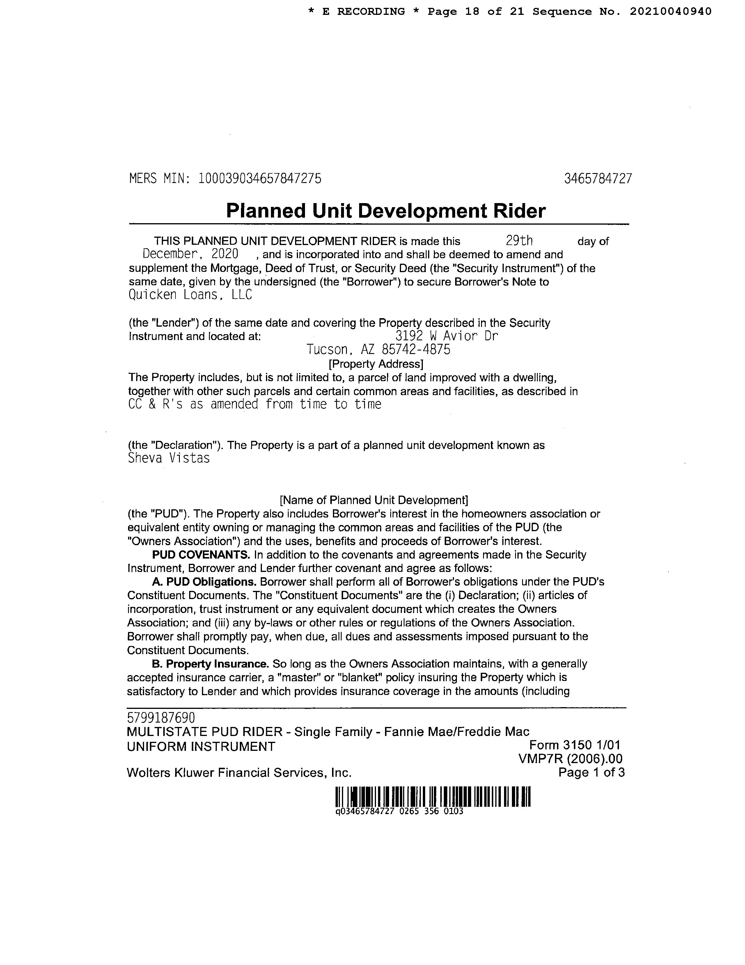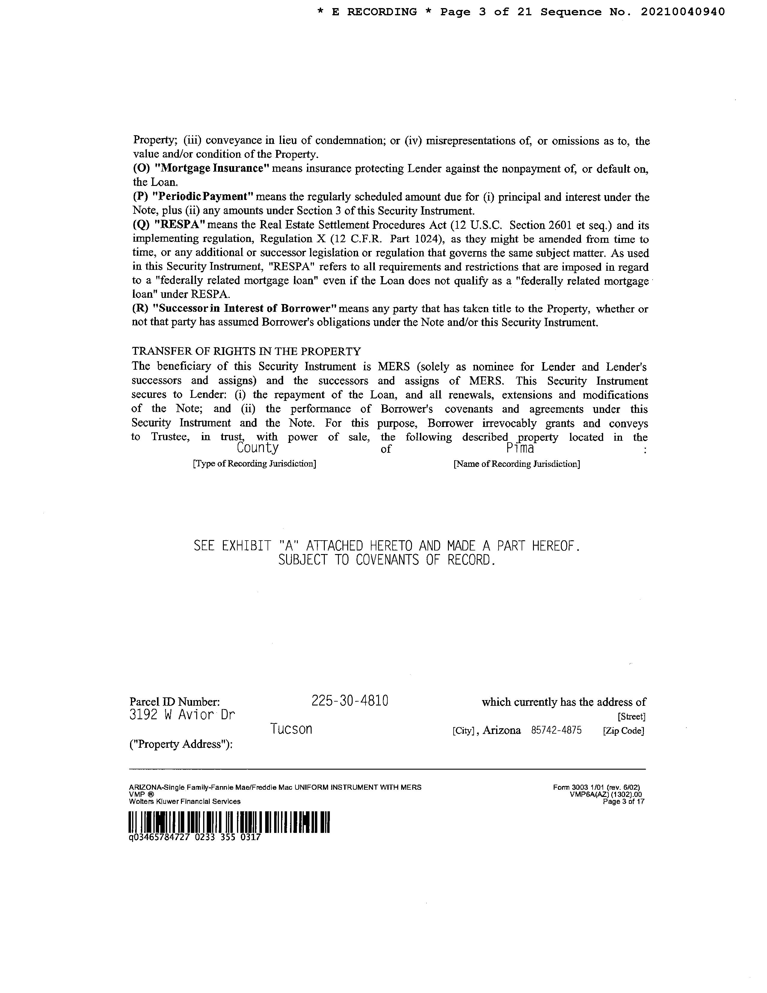 Subject Property : 3192 W Avior Dr Tucson AZ 85742