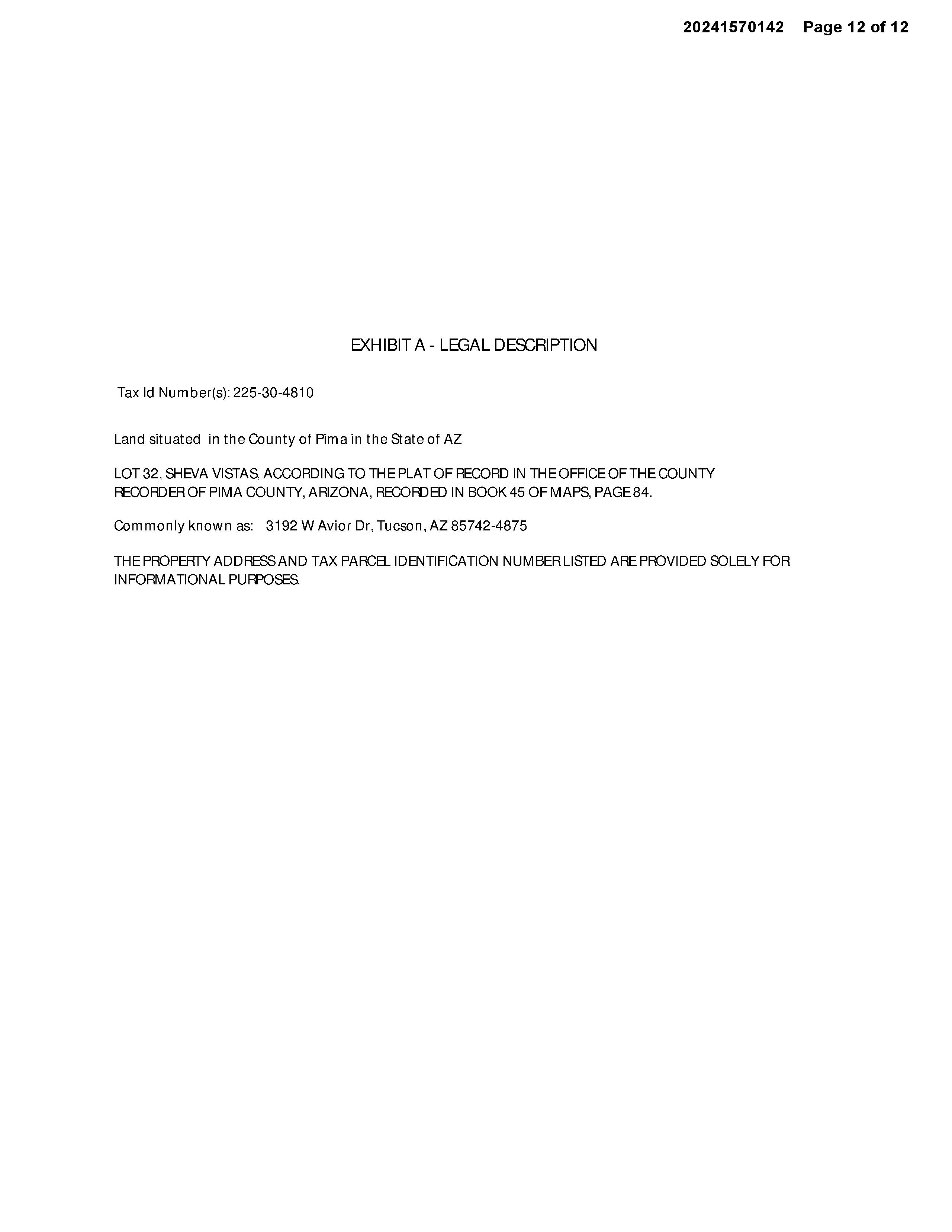 Mailing Address : 3192 W Avior Dr, Tucson AZ 85742-4875 R067