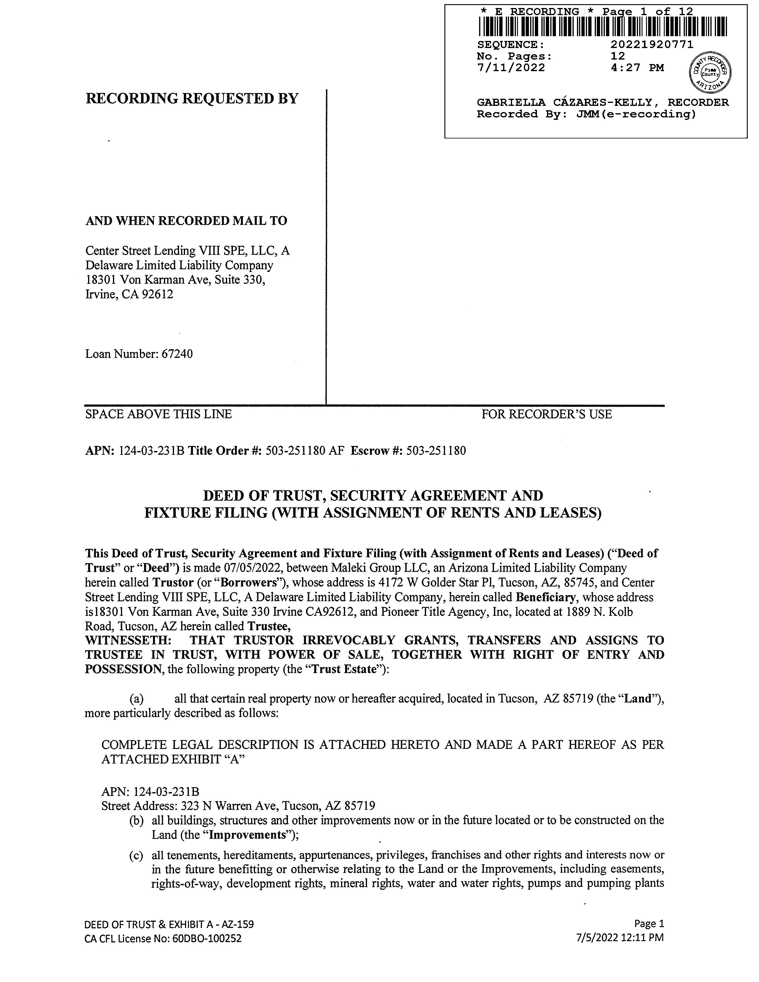 OWNER: MALEKI GROUP LLC AFFIDAVIT 2022 1920770 07/11/2022