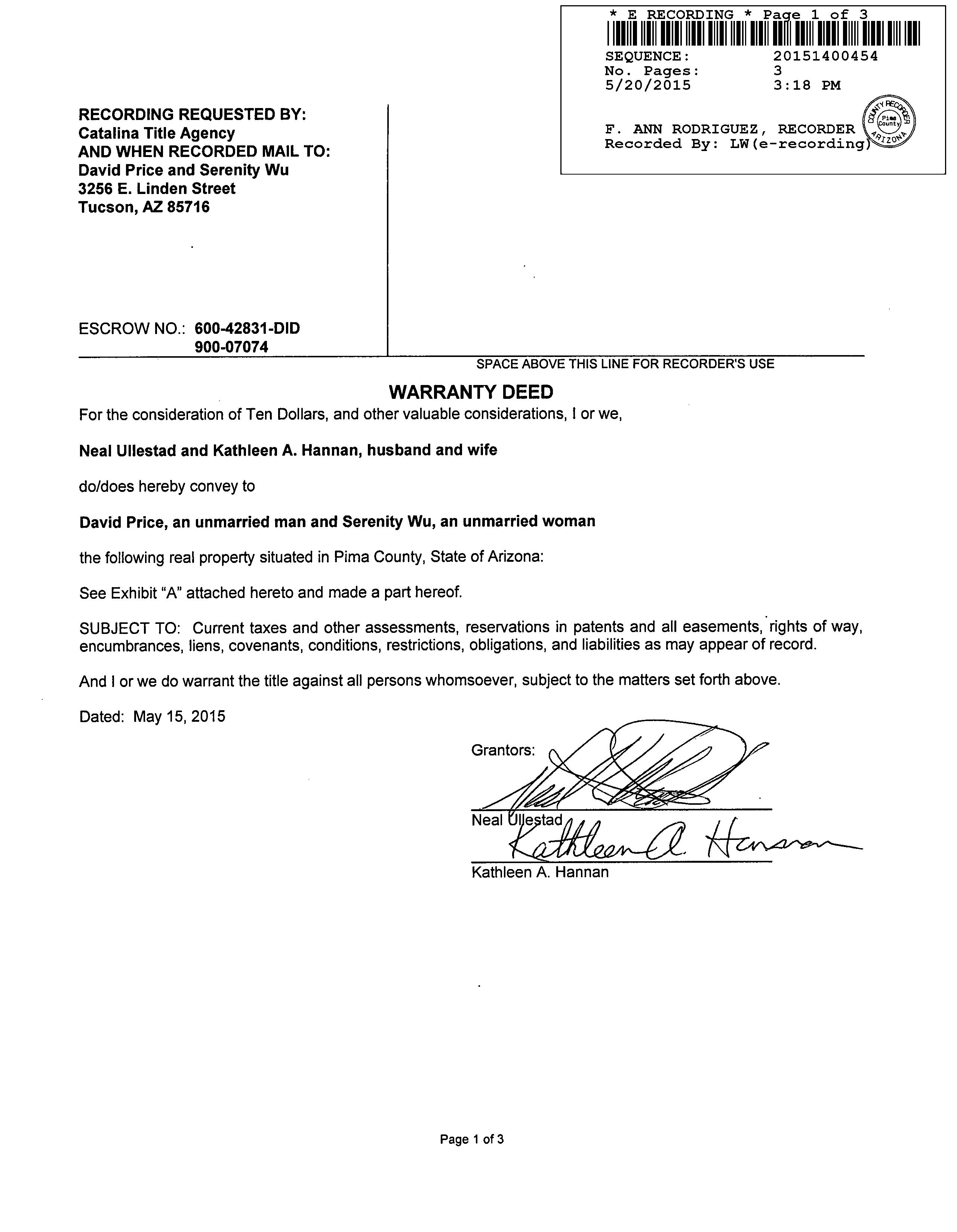 Owner Name: Price David /Wu Serenity