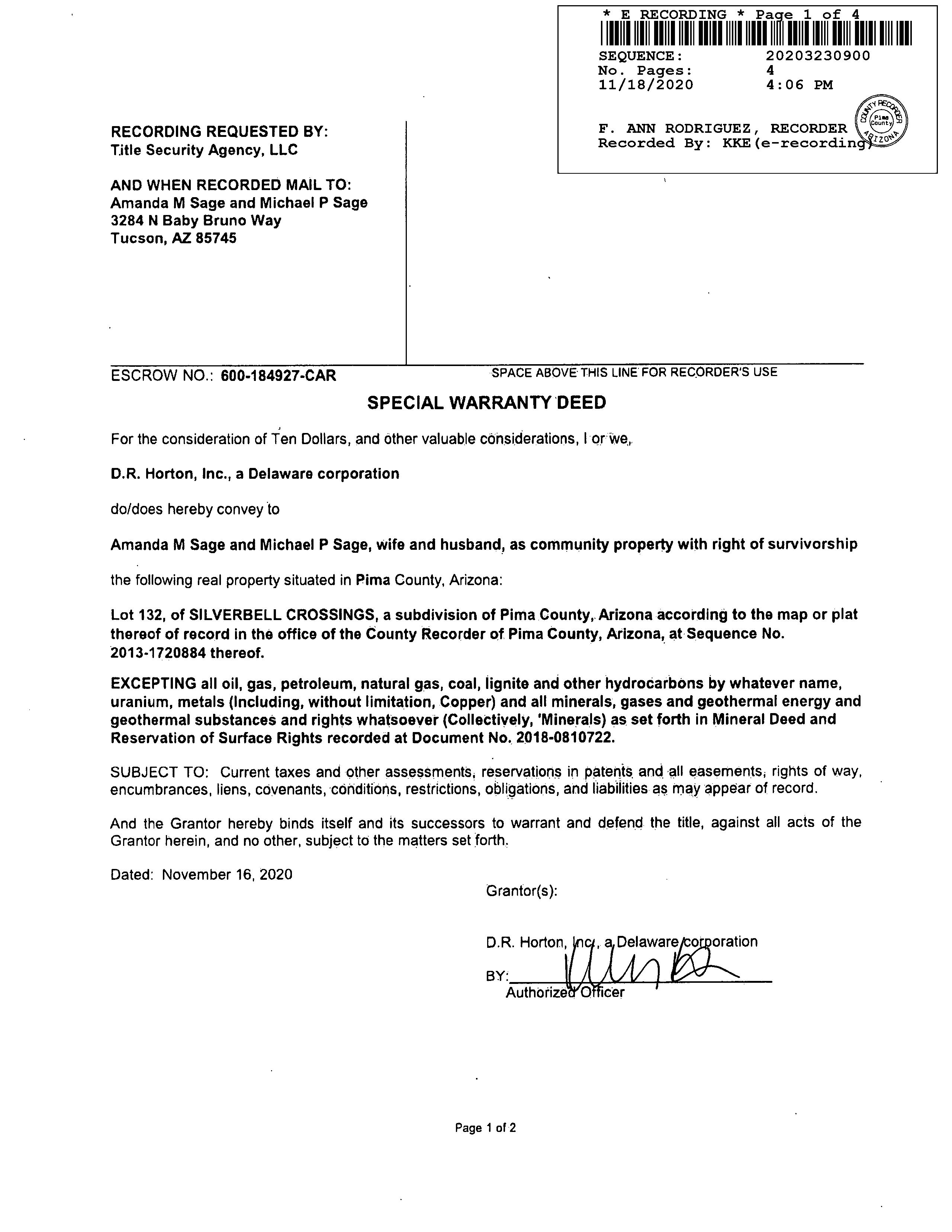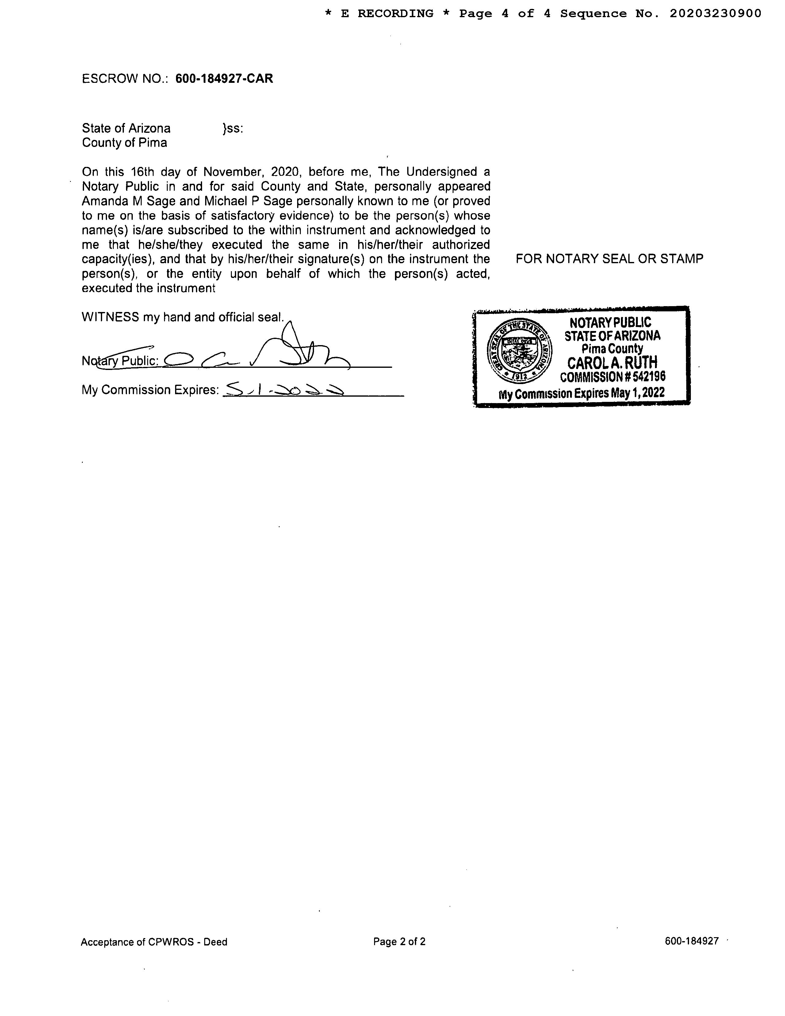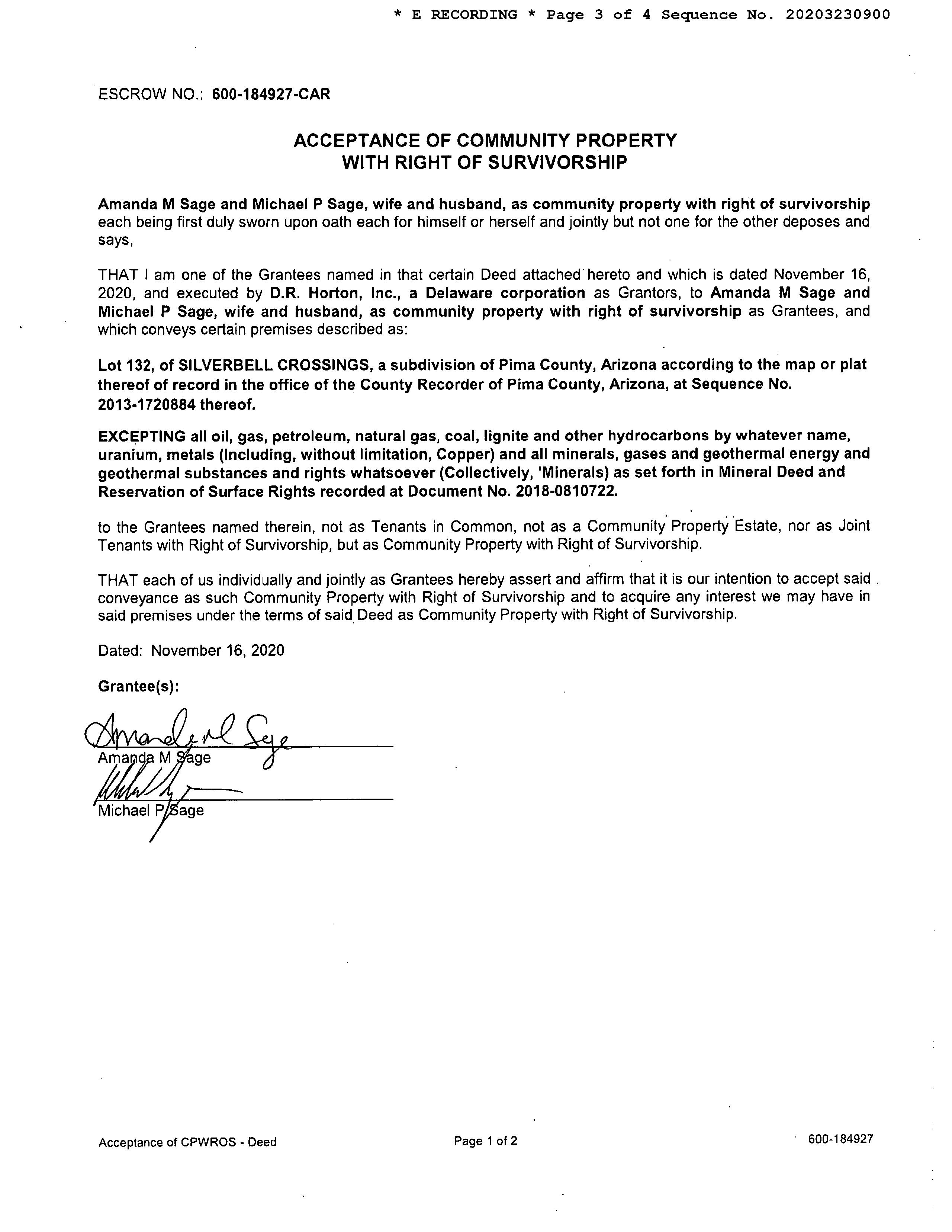 OWNER: SAGE AMANDA M & MICHAEL P AFFIDAVIT 2020 3230900 11/18/2020
