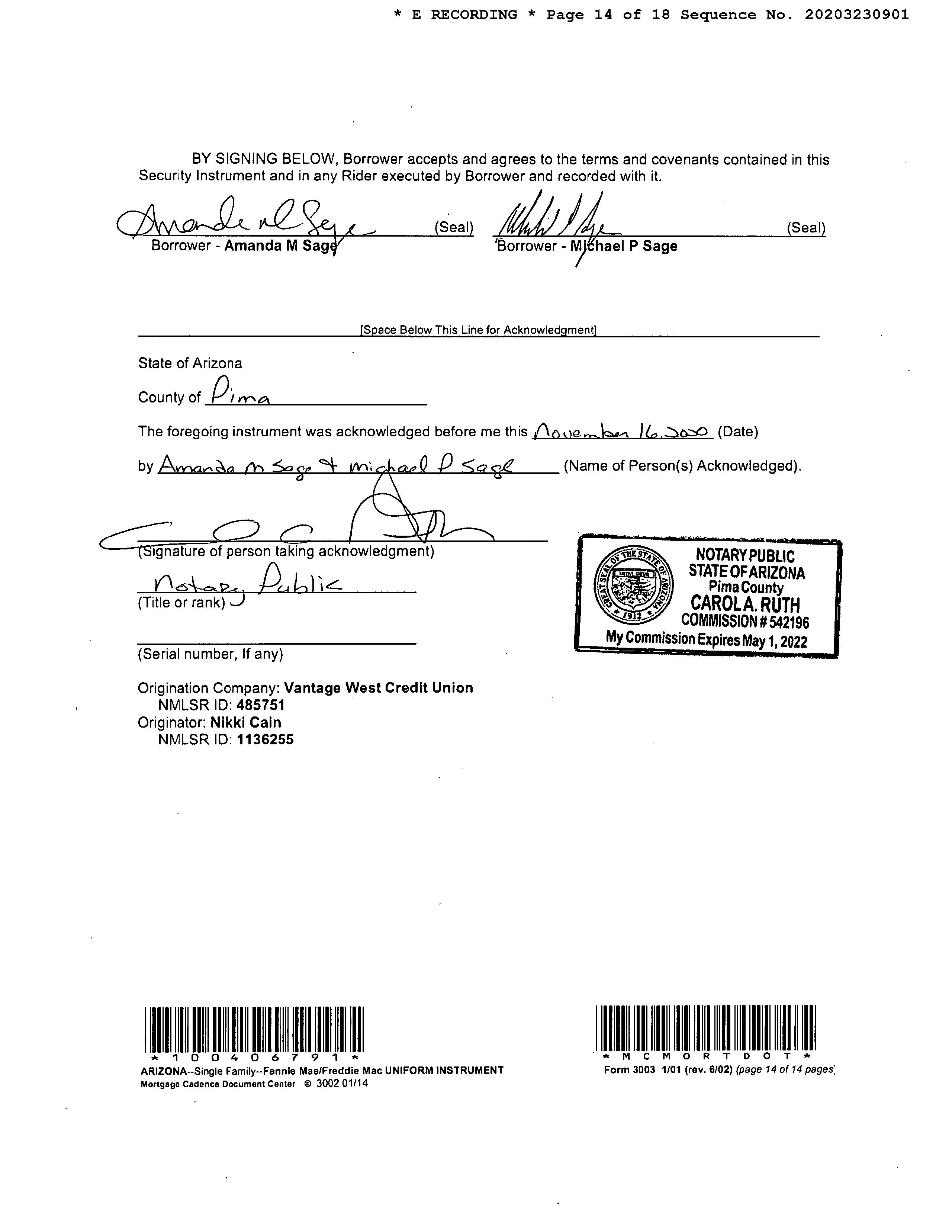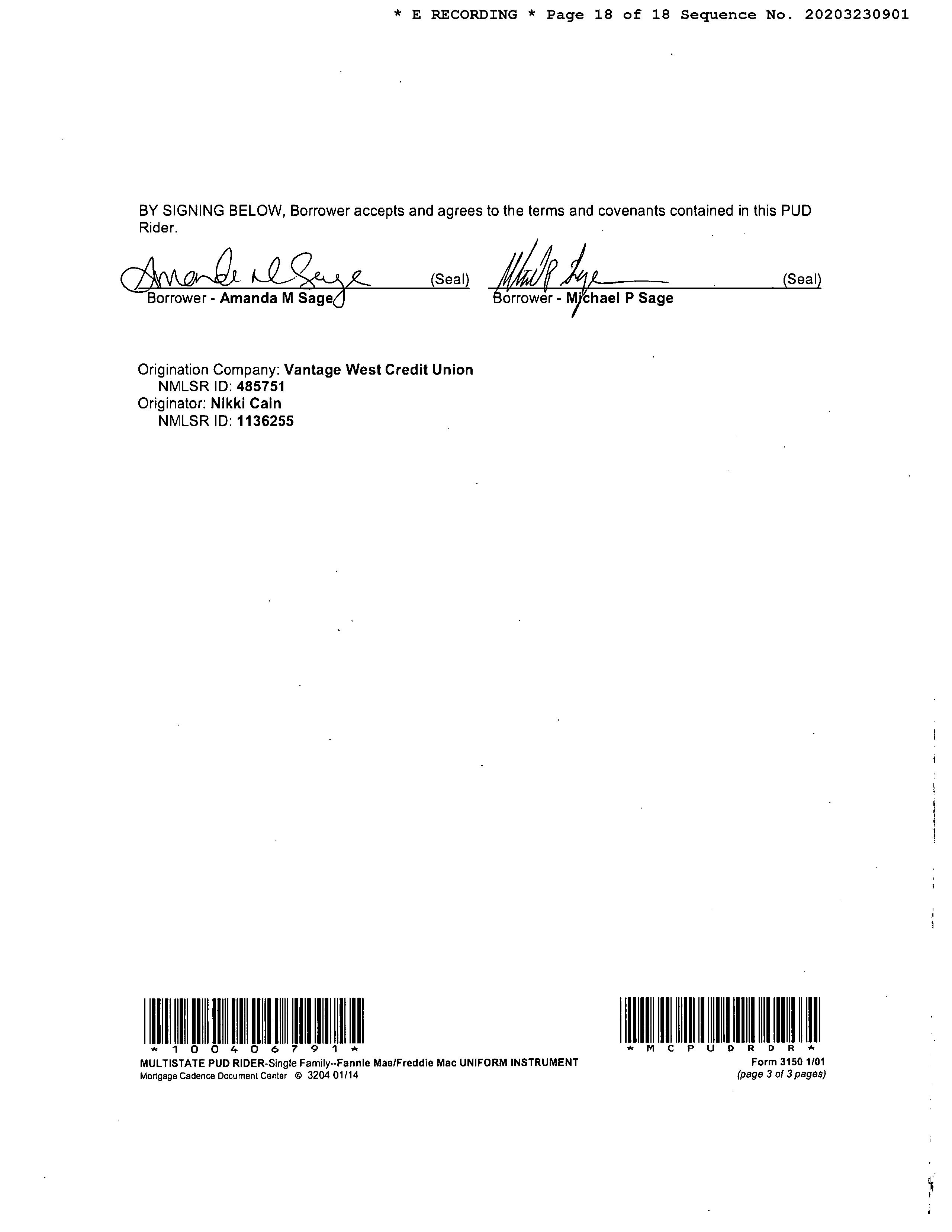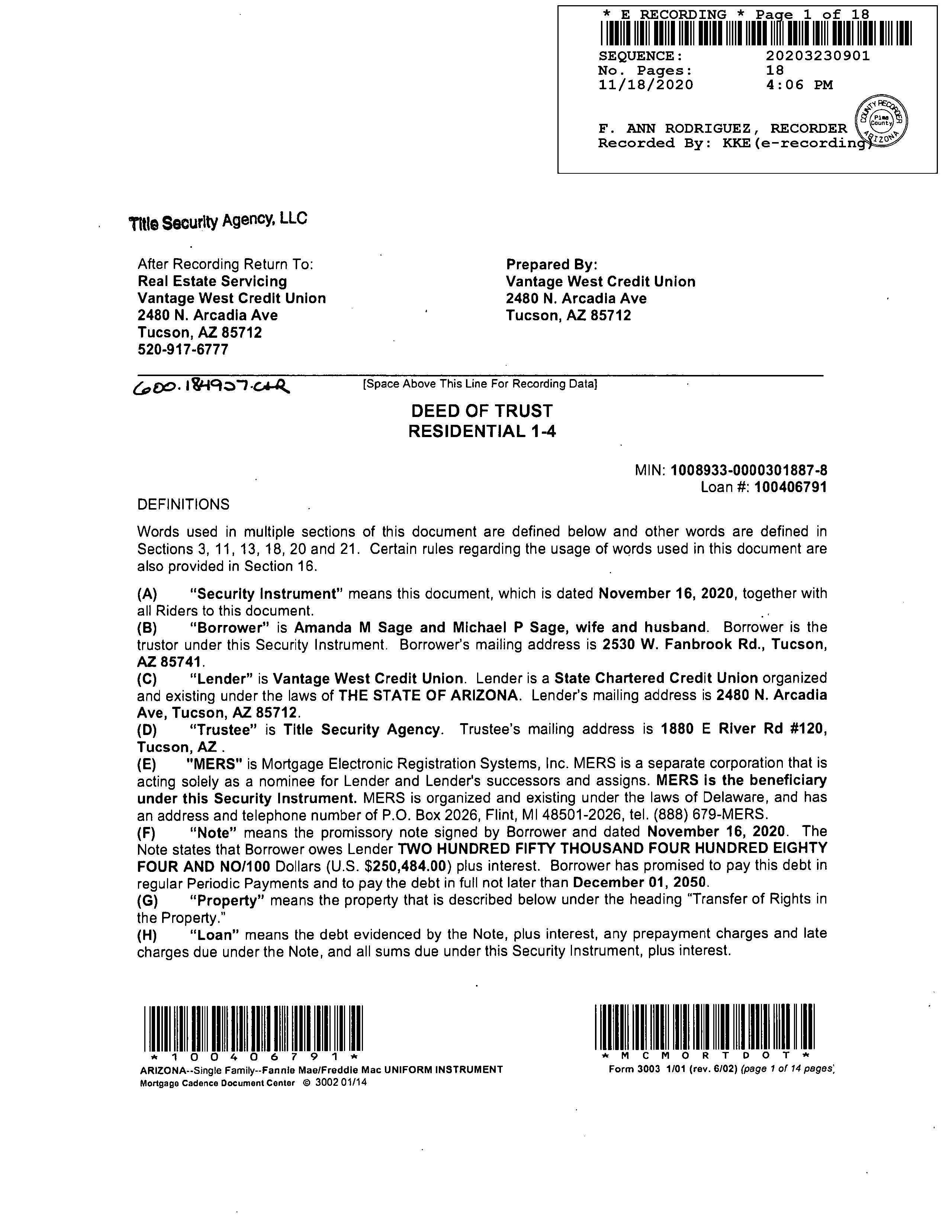 OWNER: SAGE AMANDA M & MICHAEL P AFFIDAVIT 2020 3230900 11/18/2020