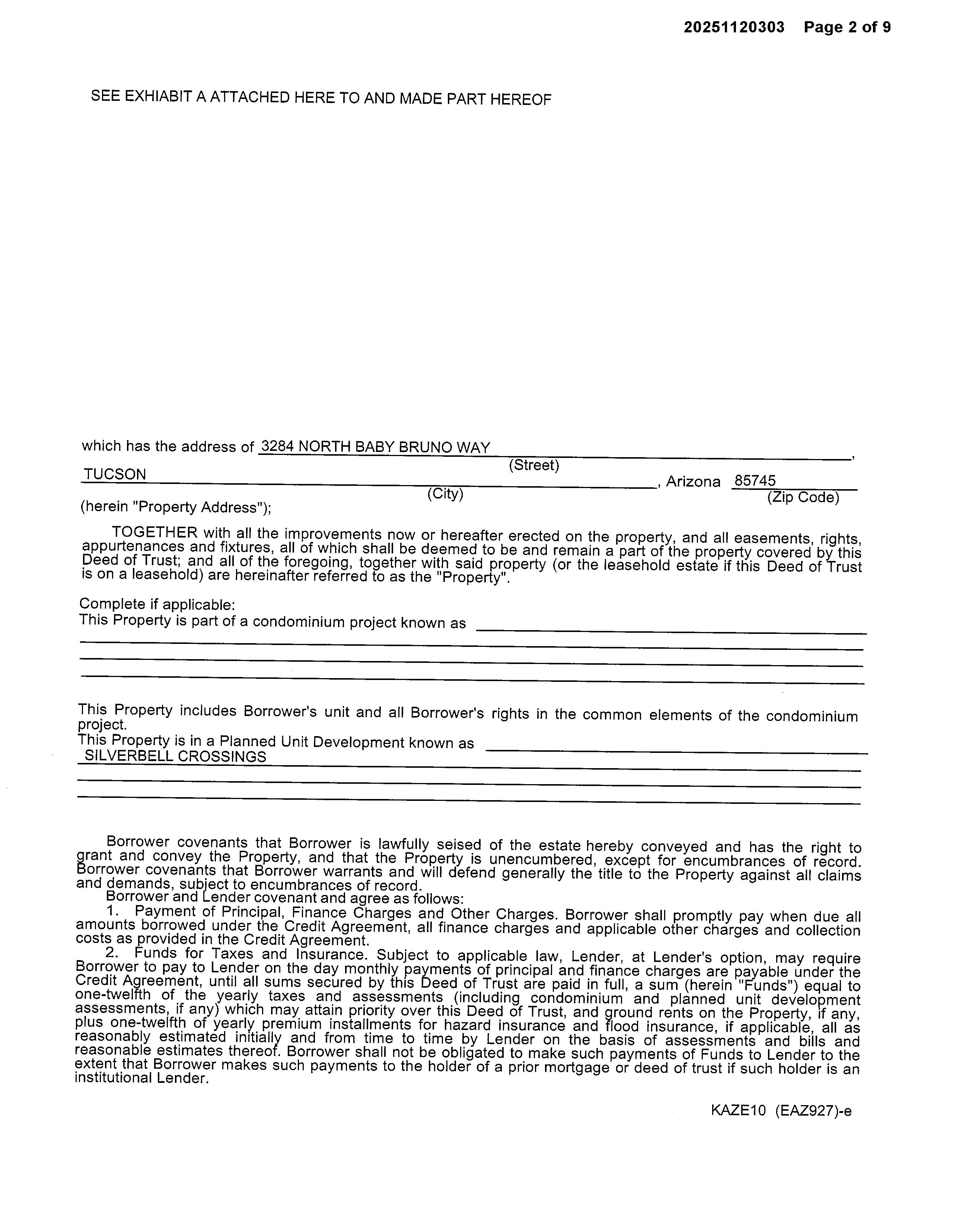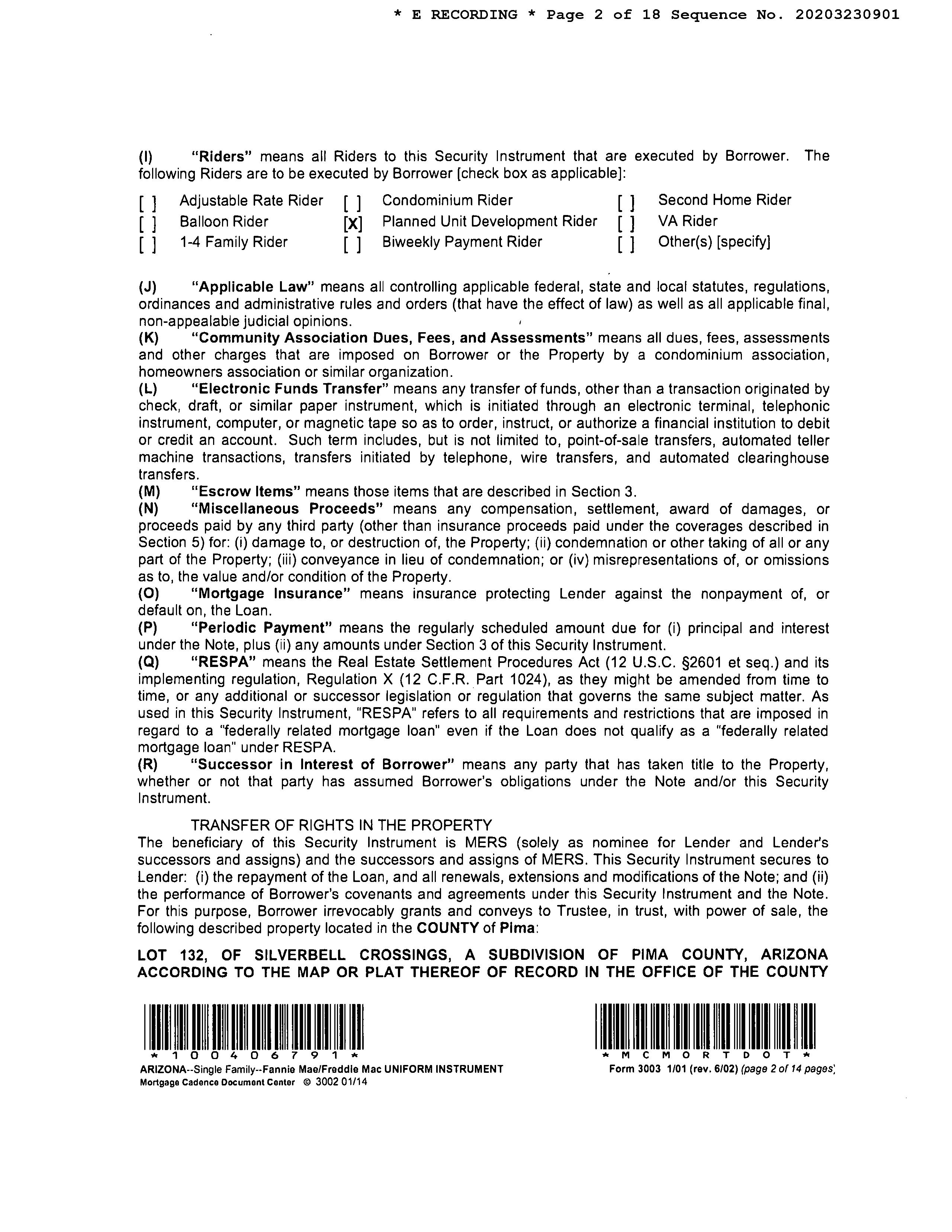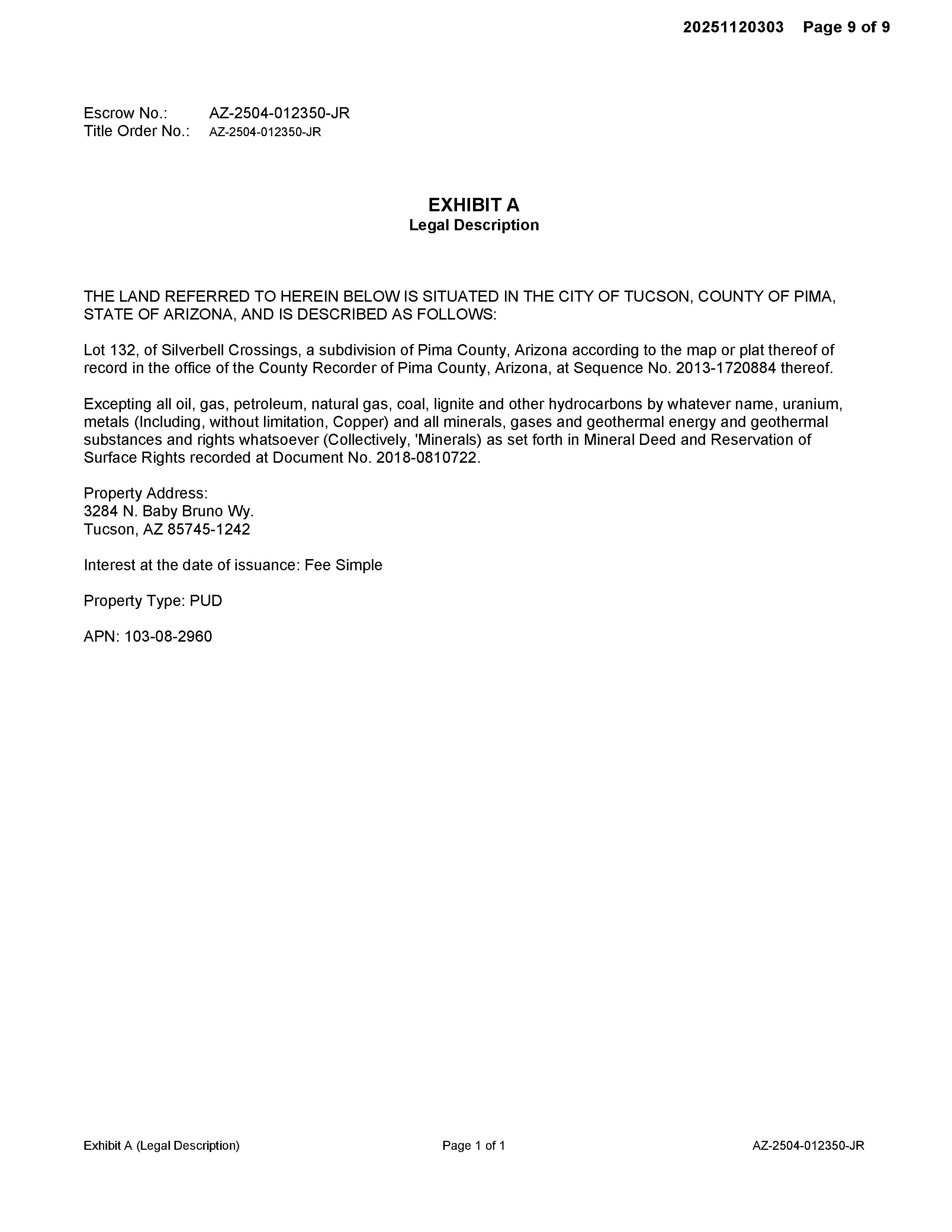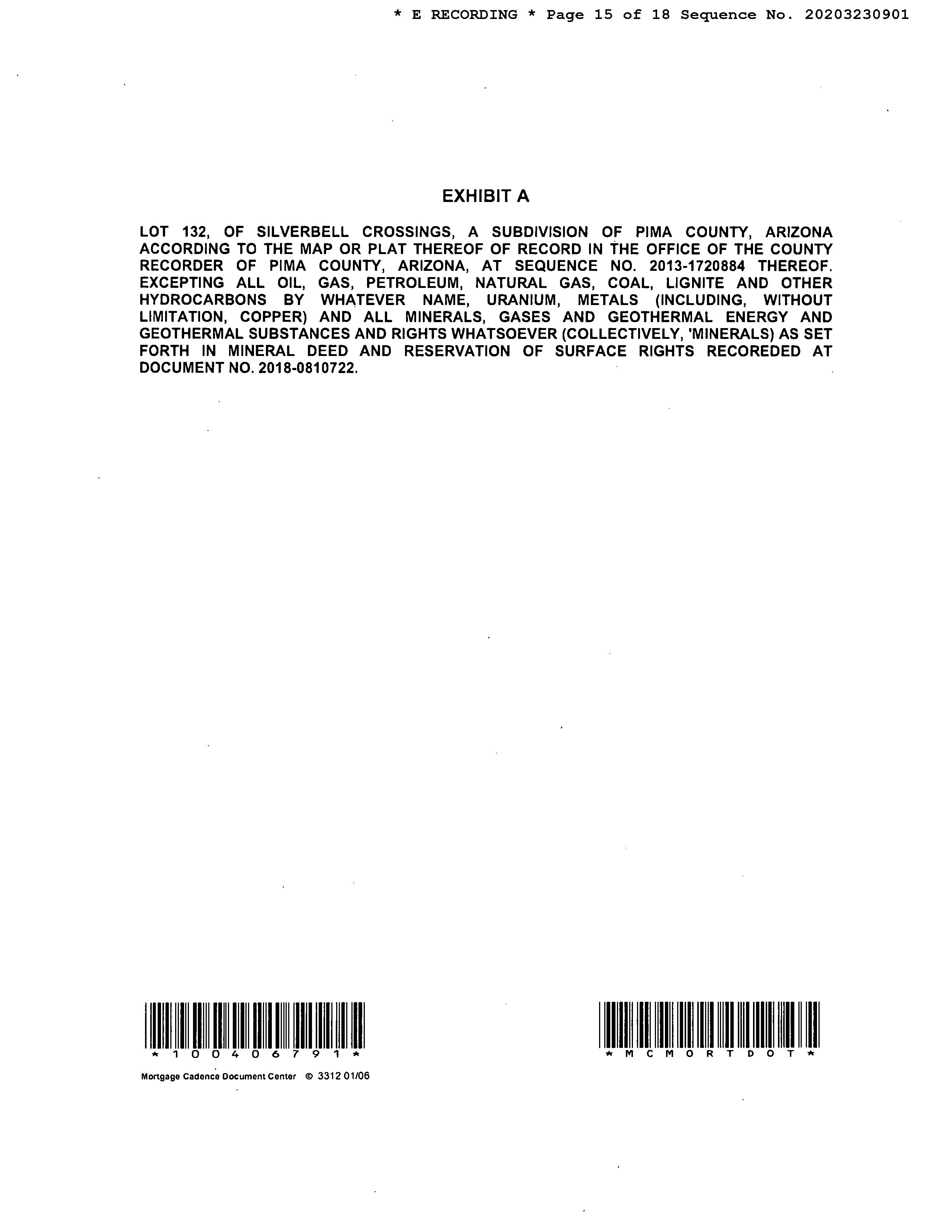 Legal Description : Silverbell Crossings Sq20131720884 Lot 132 Exc Mineral Rights Below 30-ft