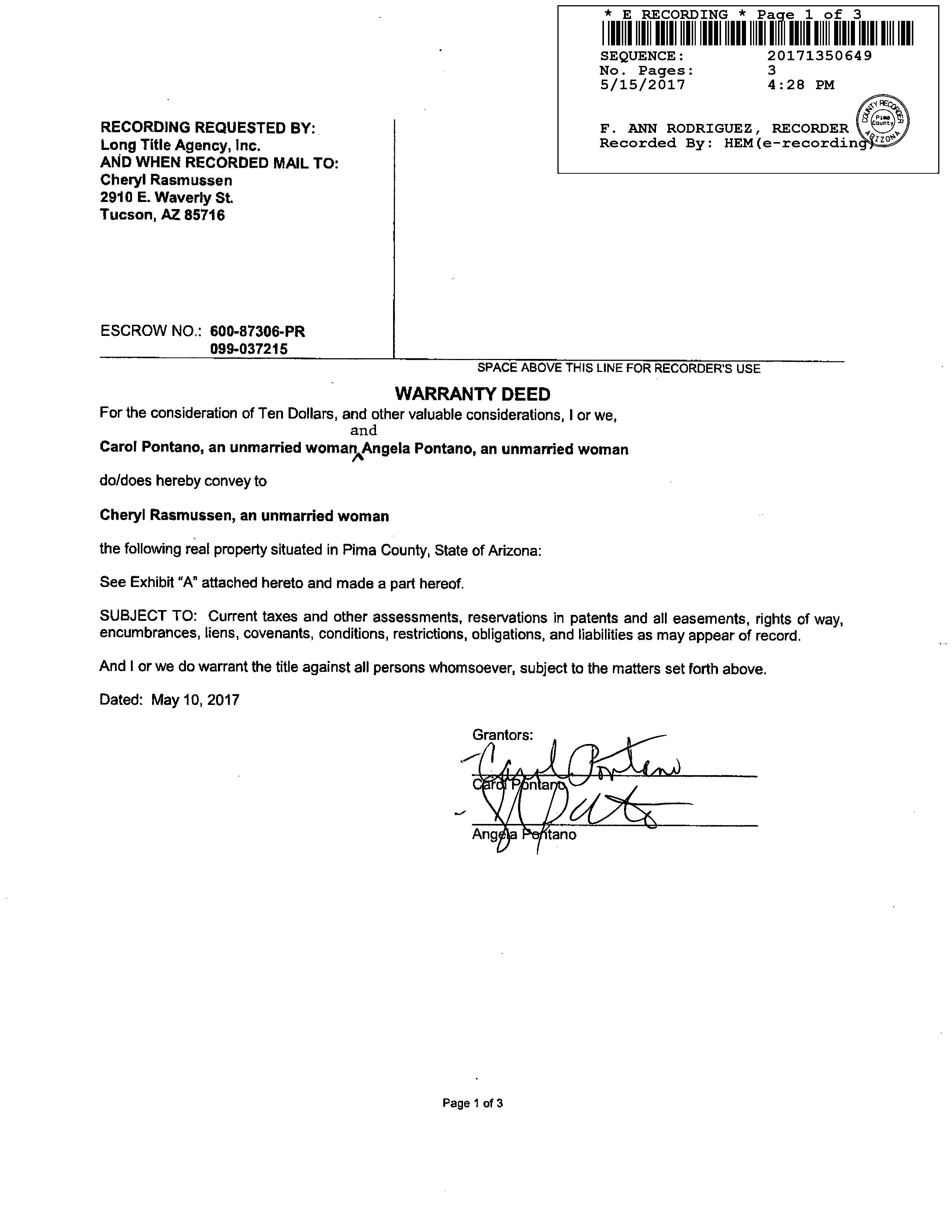 2017 1350649 WD PONTANO CAROL & ANGELA 02/03/2000 95,000 11127 1847 WD RINGWOOD RICHARD S
