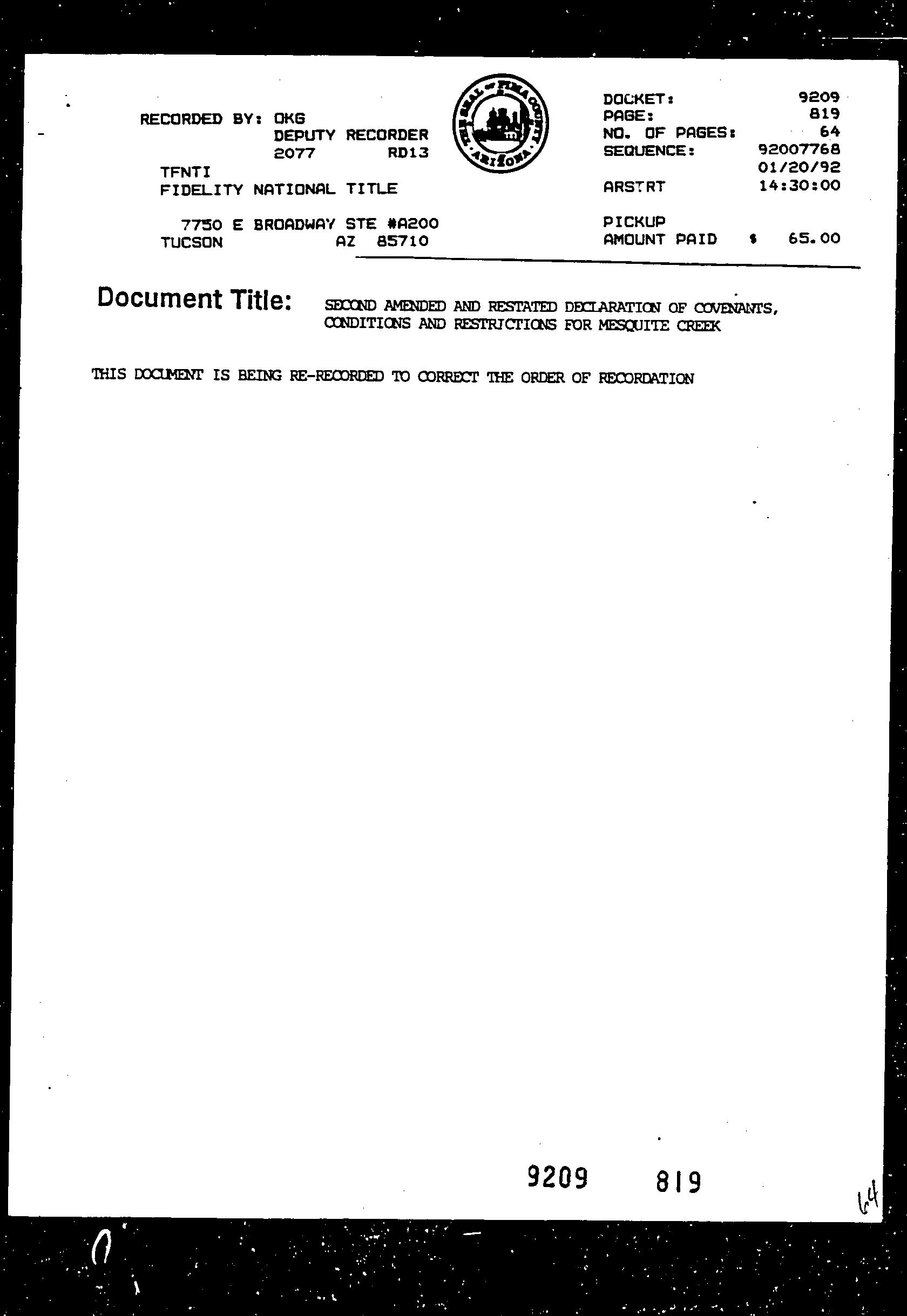Mailing Address : 4319 N Placita De Sandra, Tucson AZ 85718-7422 C048