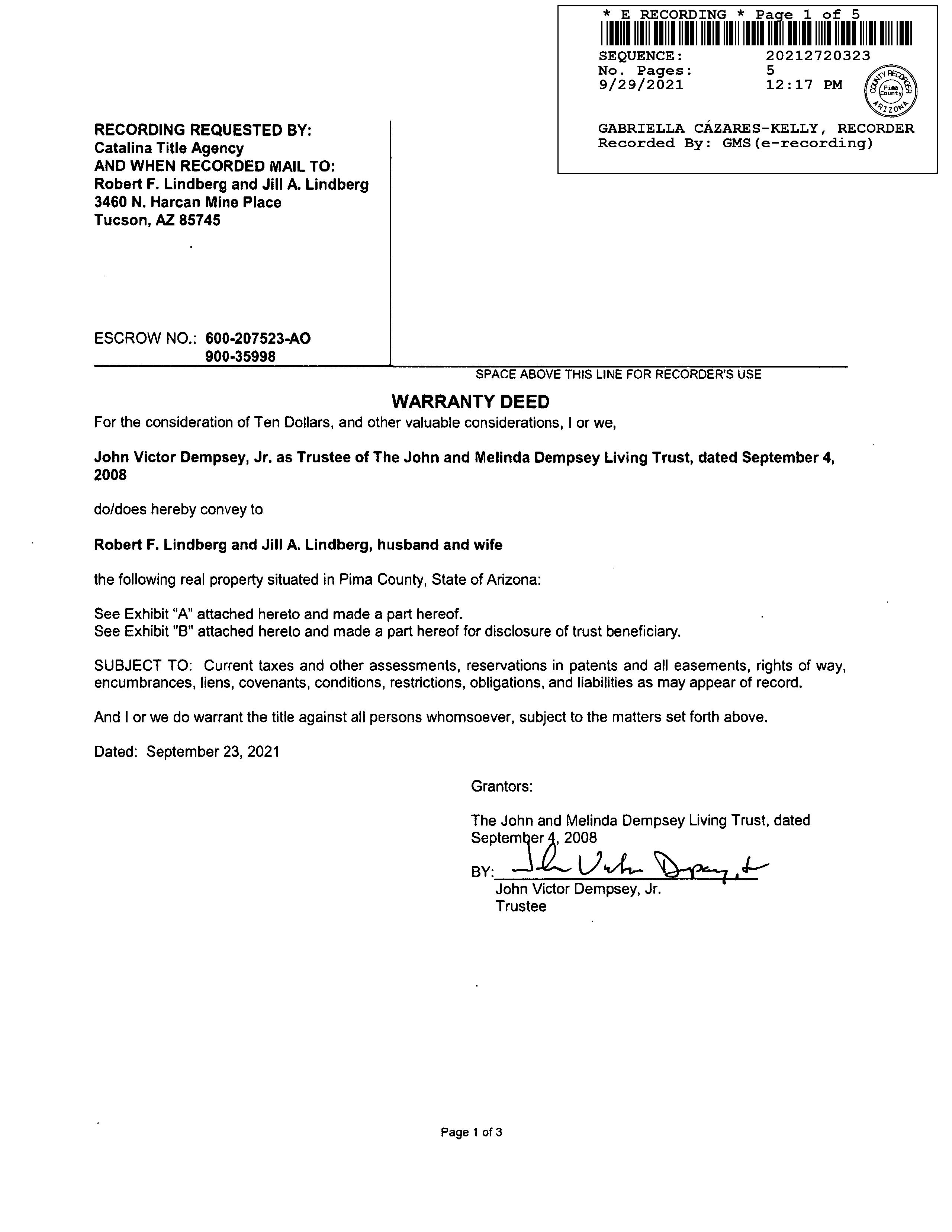 2022 1860728 WD LINDBERG ROBERT F/JILL A 09/29/2021