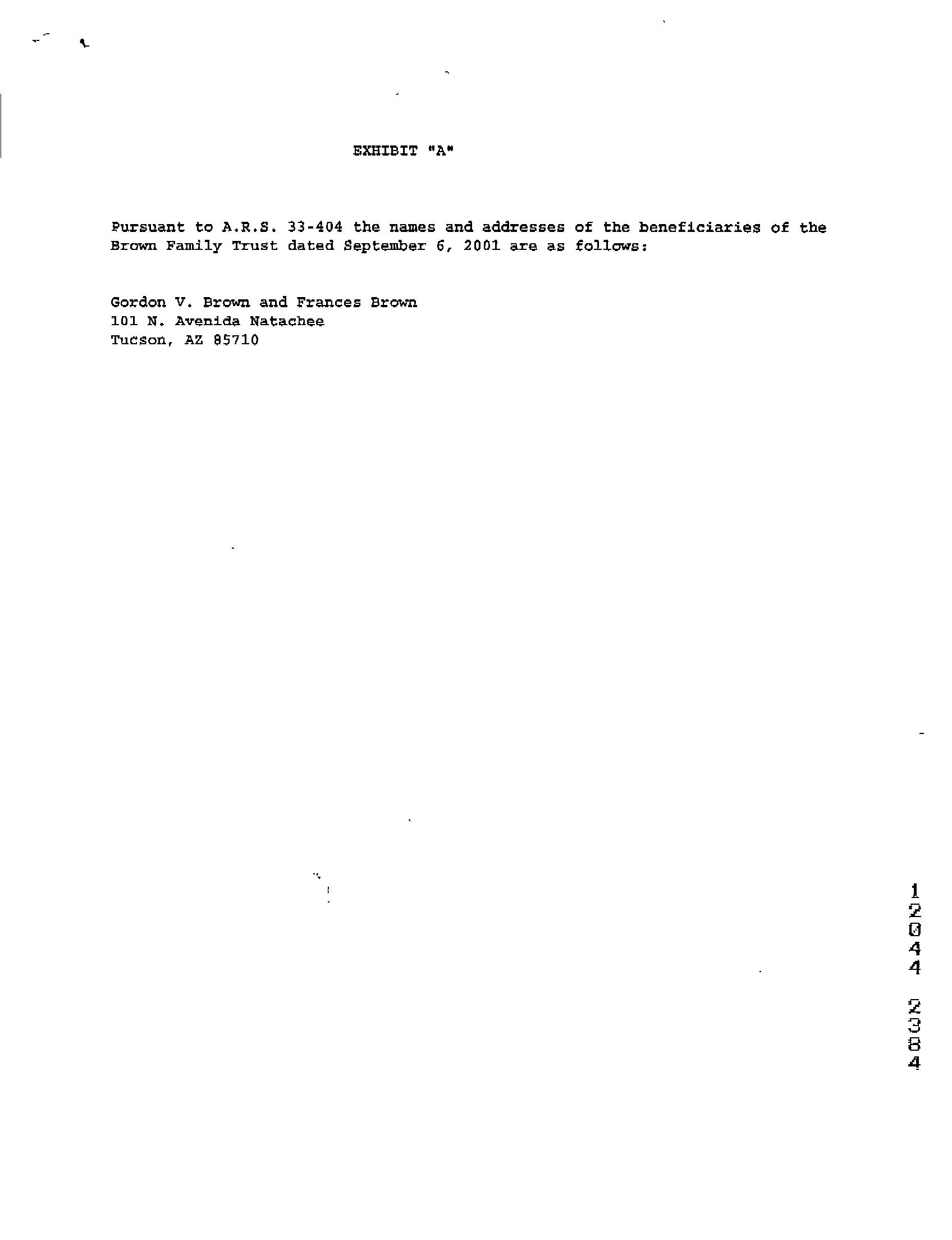 Mailing Address : 3464 E Via Guadalupe, Tucson AZ 85716-5847 C001
