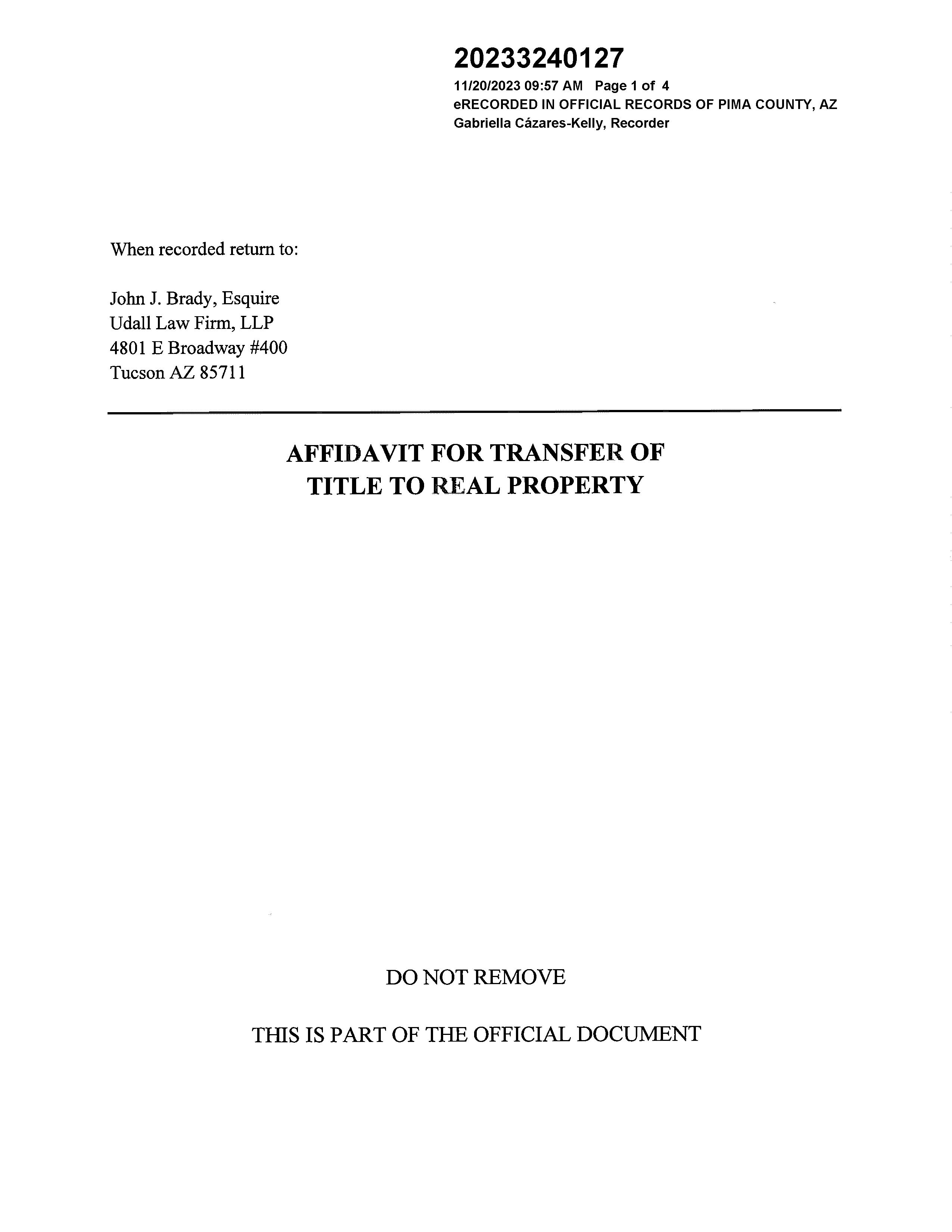 Bute of Arisona A MAE SMYTH ARTD OND County Recorder