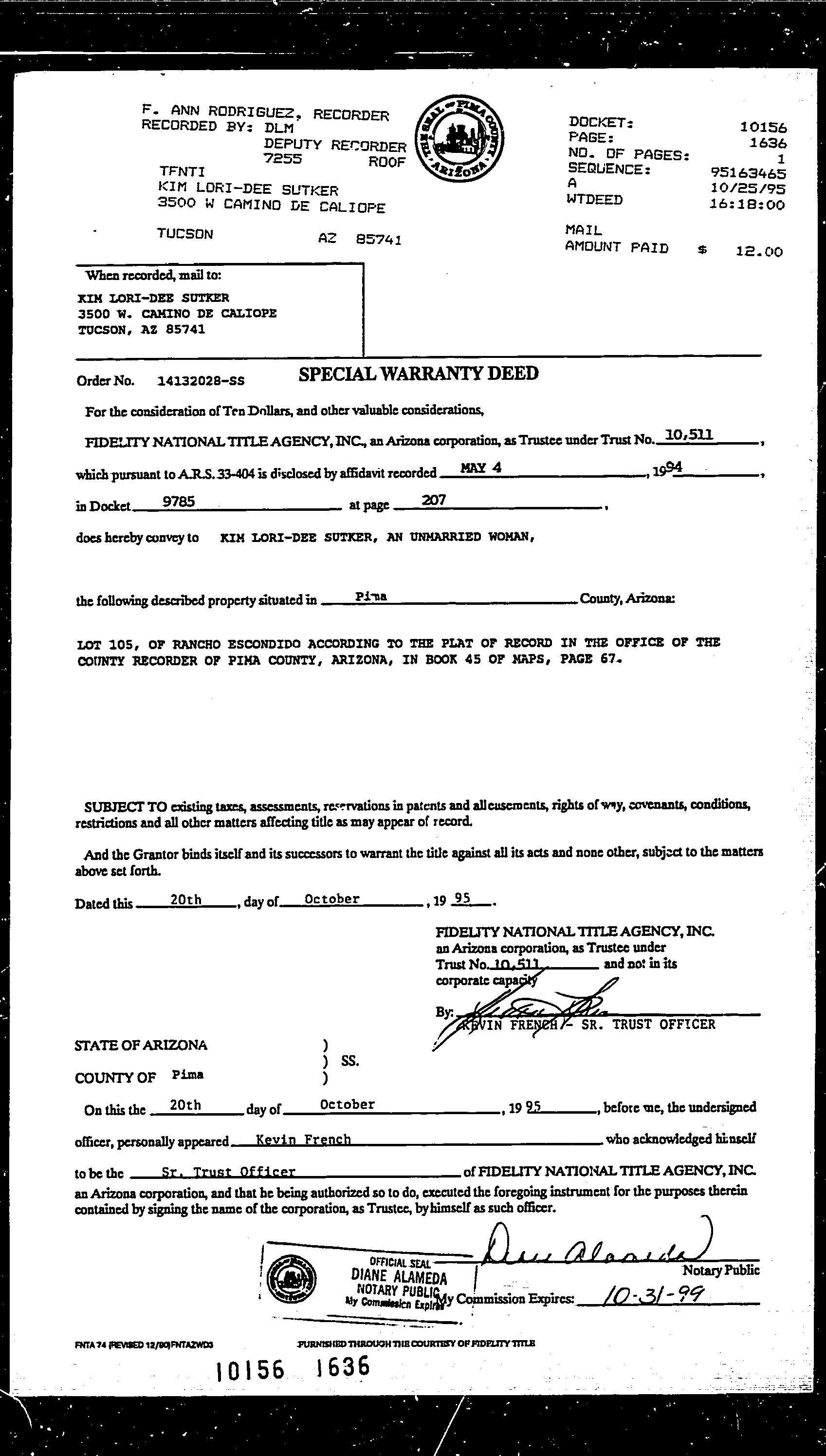 OWNER: SUTKER KIM LORI-DEE 10156 1636 10/25/1995