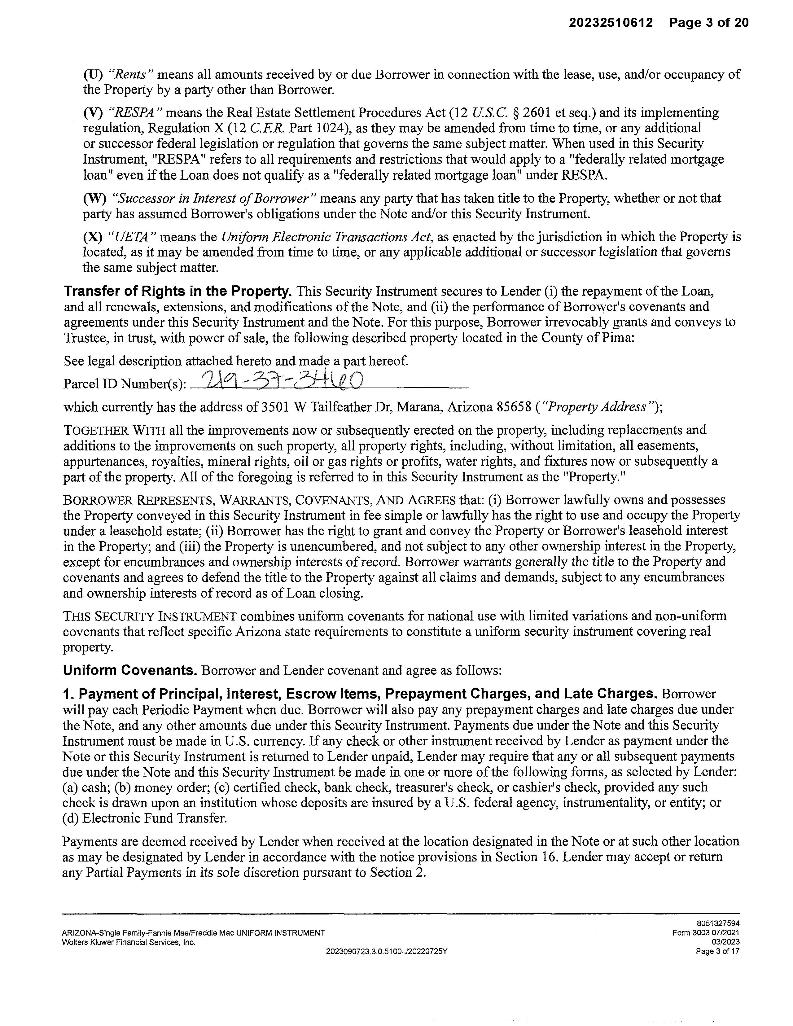 Mailing Address : 3501 W Tailfeather Dr, Marana AZ 85658-4683 H016