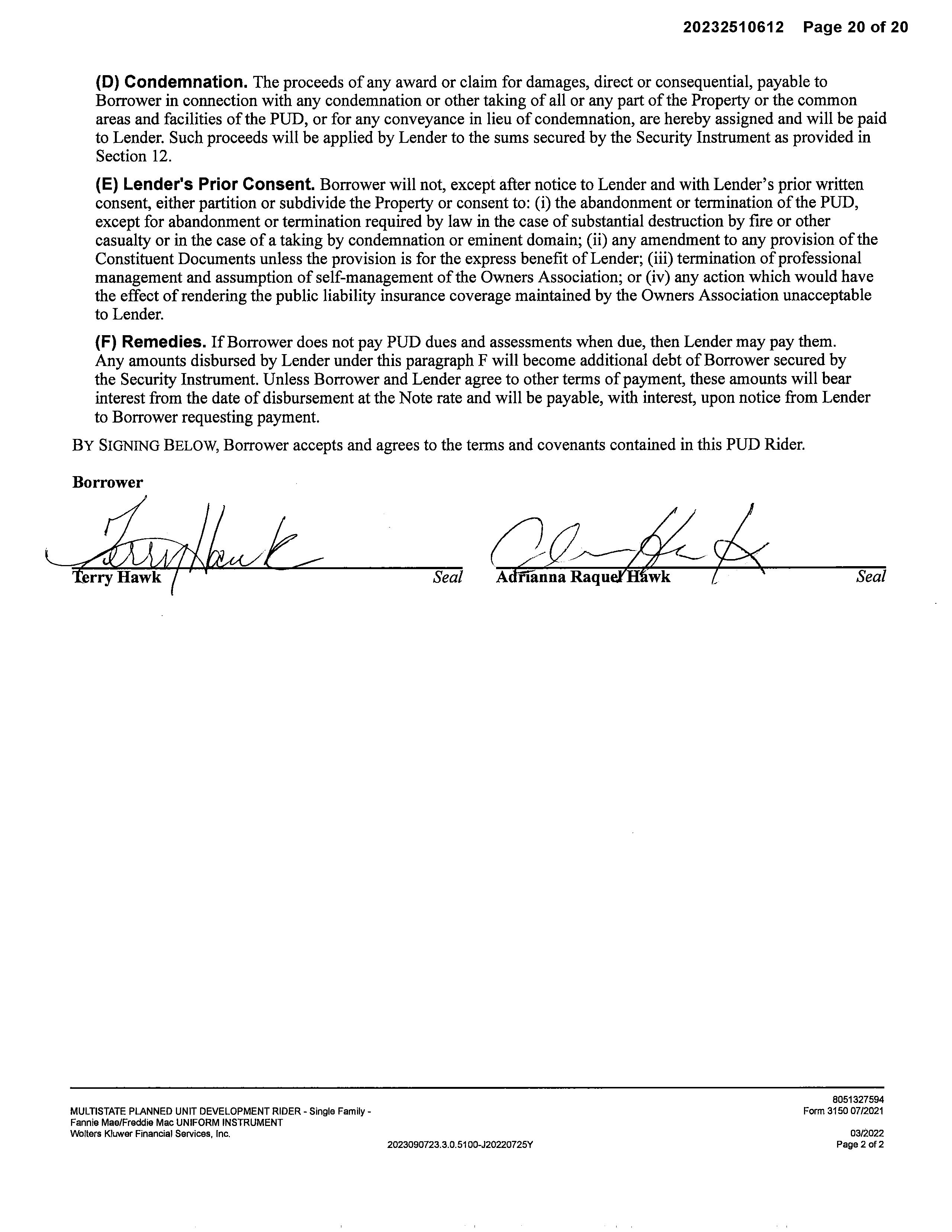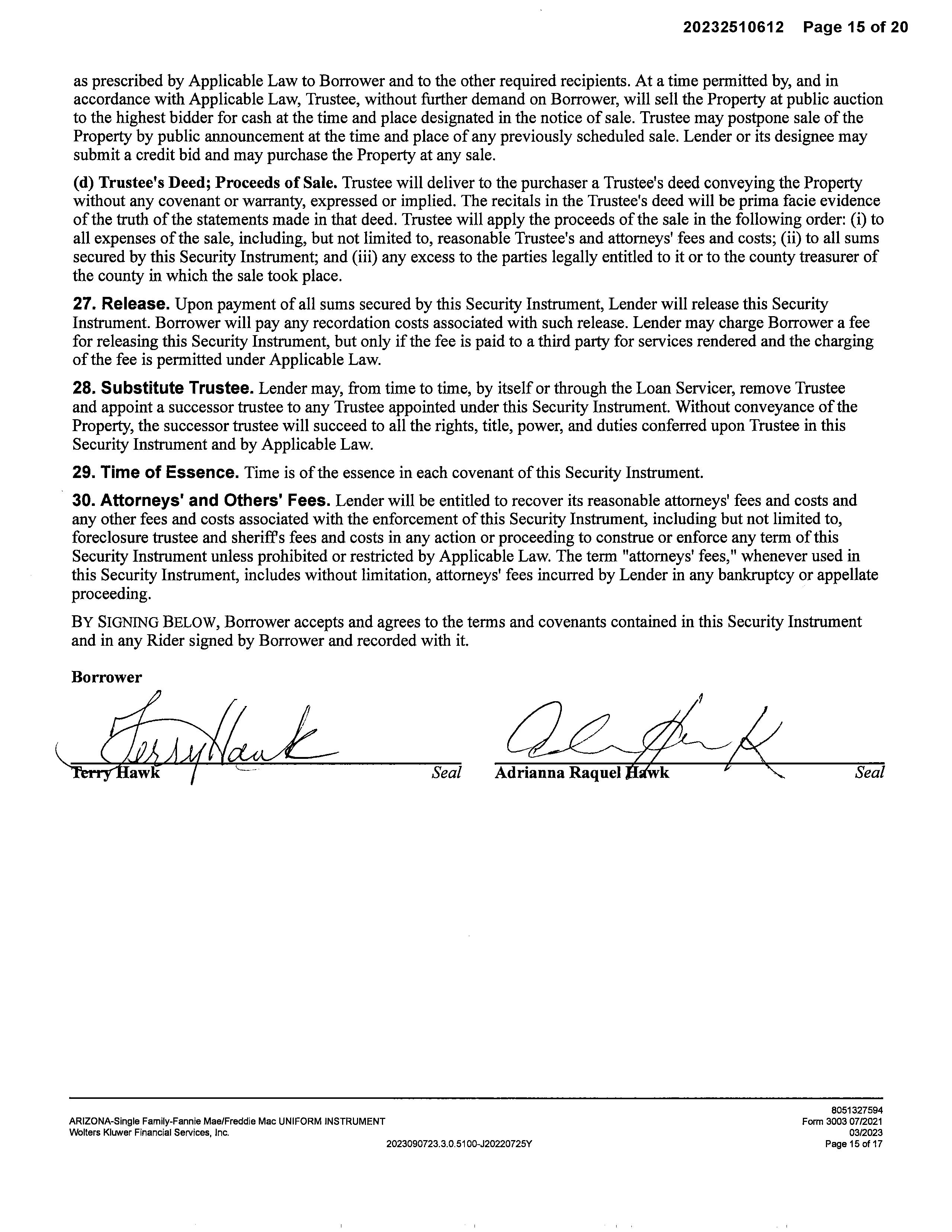 OWNER: HAWK TERRY & ADRIANNA AFFIDAVIT 2023 2510611 09/08/2023