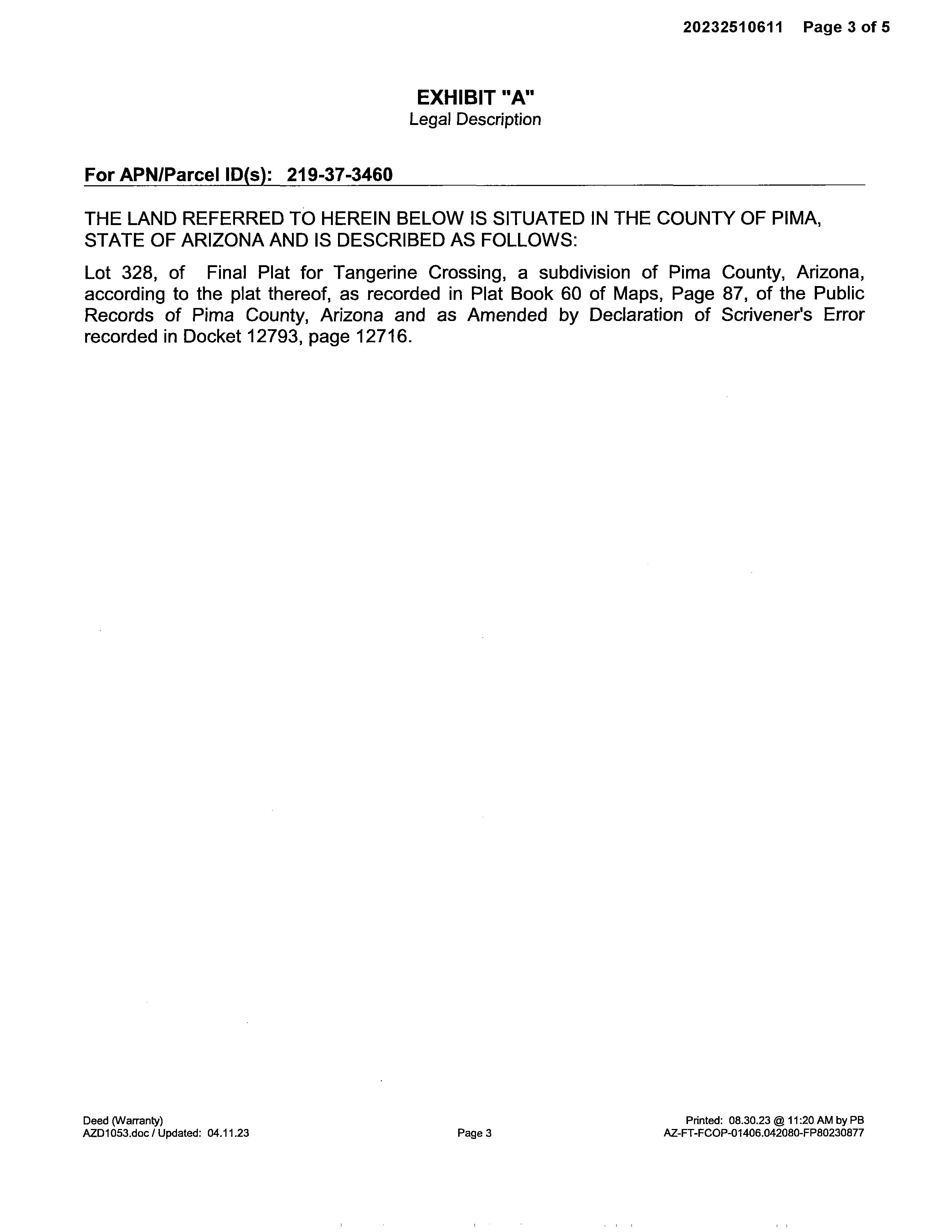 Subject Property : 3501 W Tailfeather Dr Marana AZ 85658