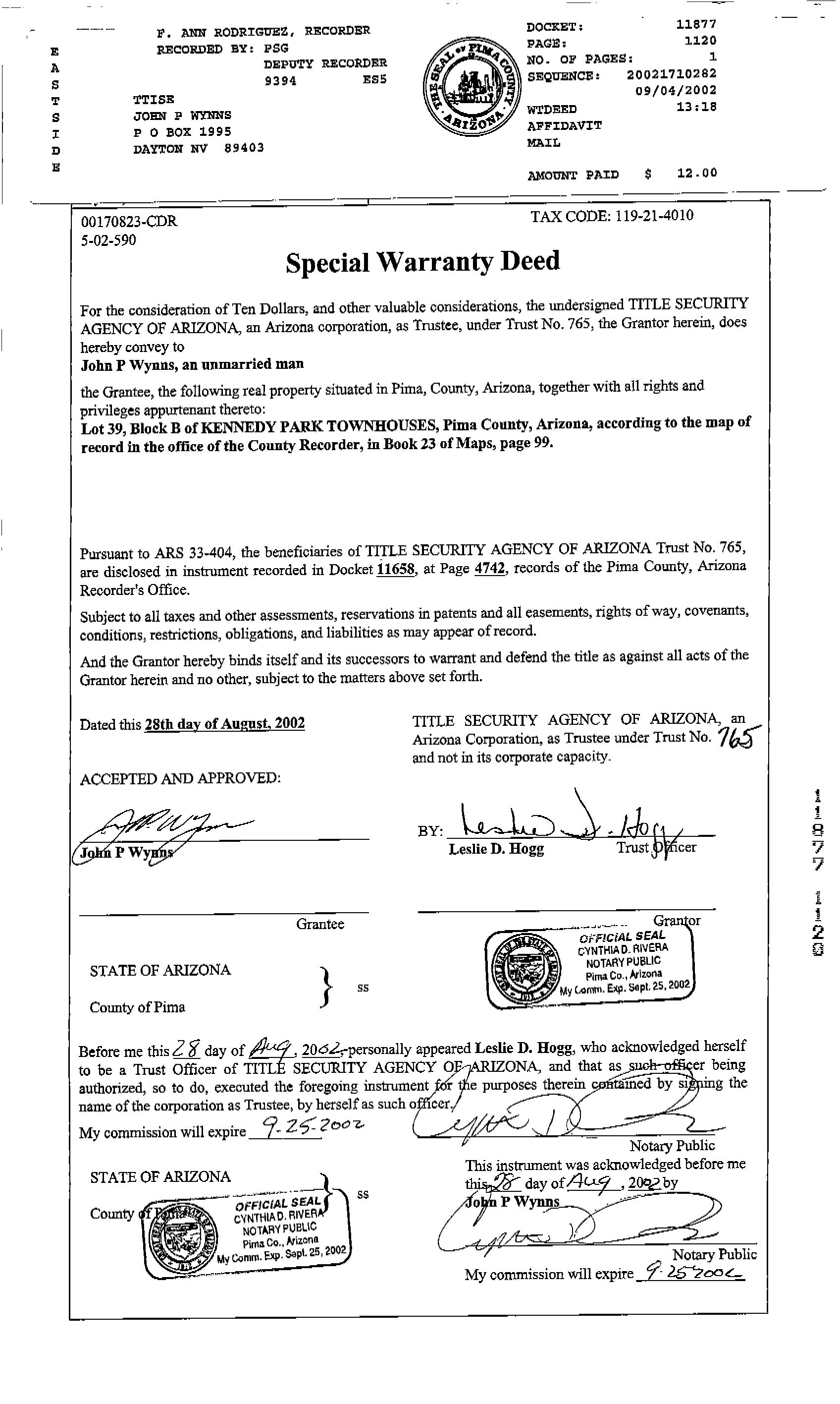 Legal Description : Kennedy Park Townhouses Lot 39 Blk B