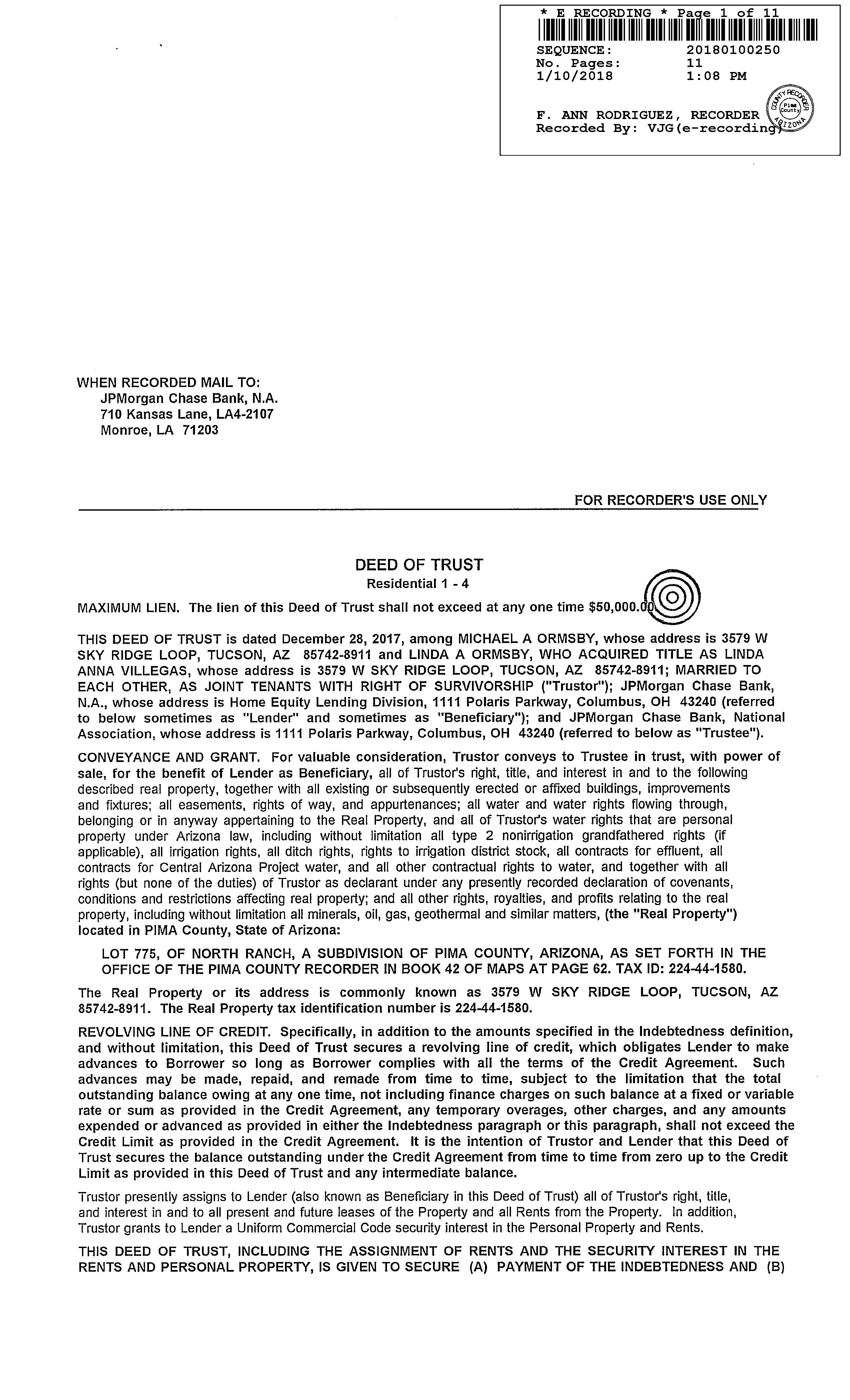 Mailing Address : 3579 W Sky Ridge Loop, Tucson AZ 85742-8911 R047