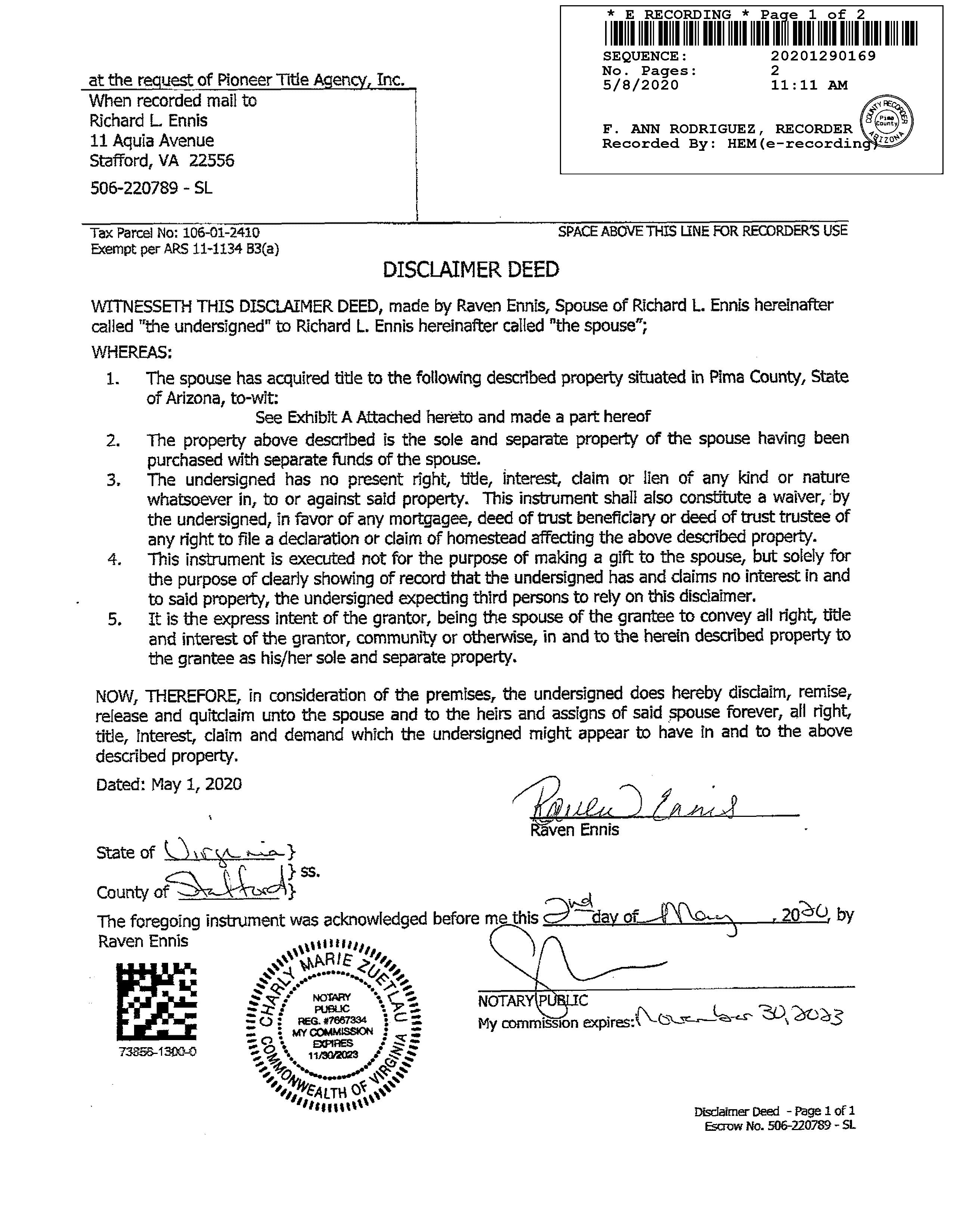 OWNER: ROADRUNNER WAY LLC 2020 1810195 06/29/2020