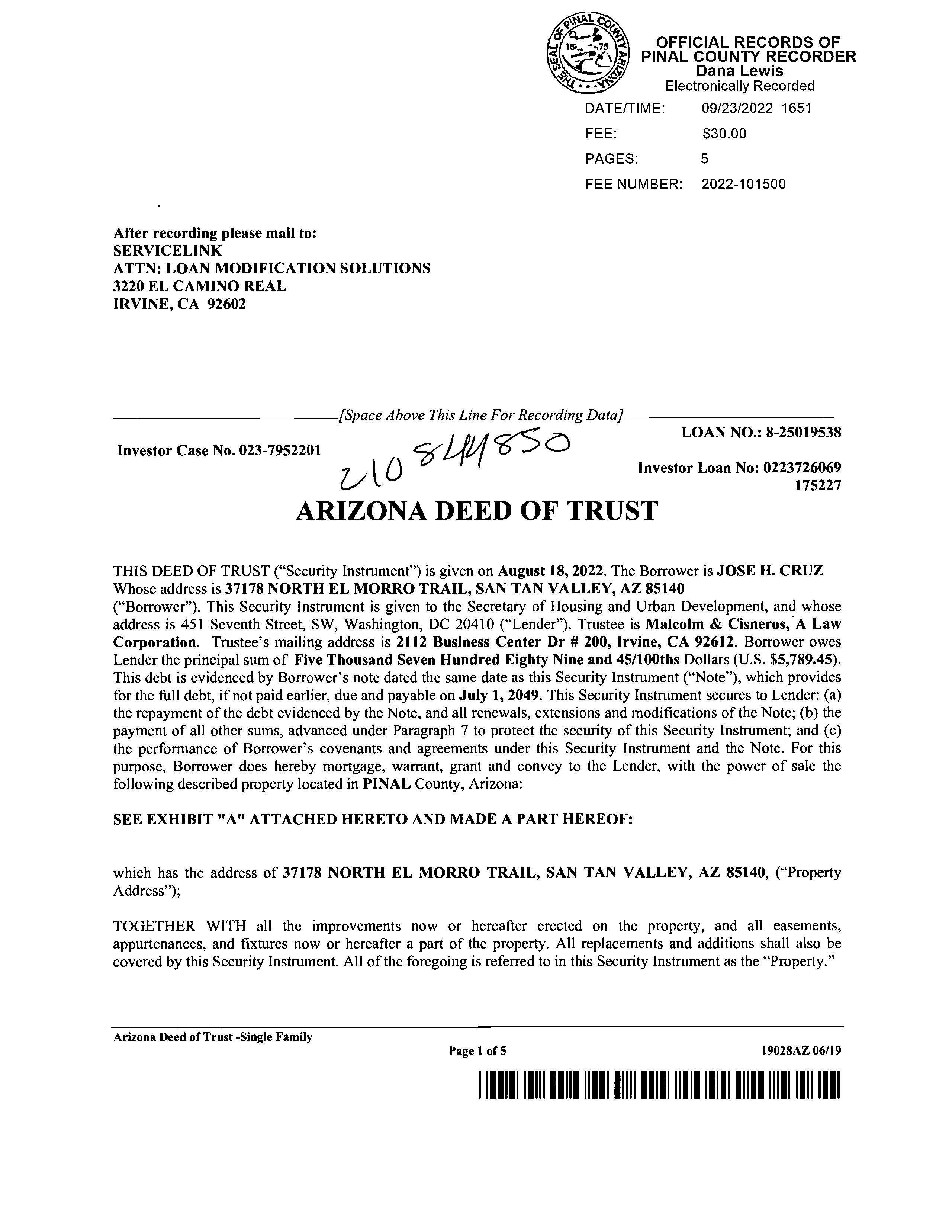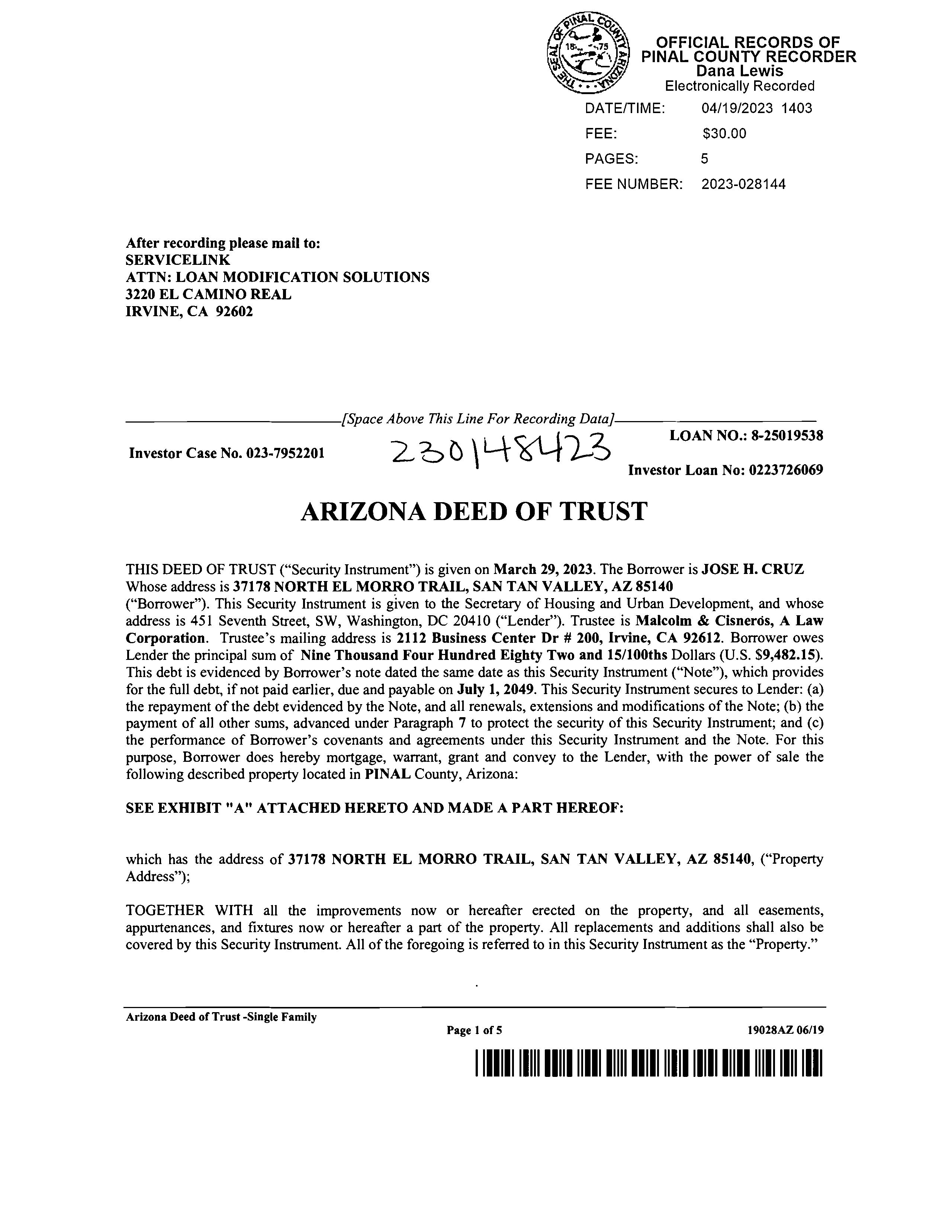 Subject Property : 37178 N El Morro Trl San Tan Valley AZ 85140