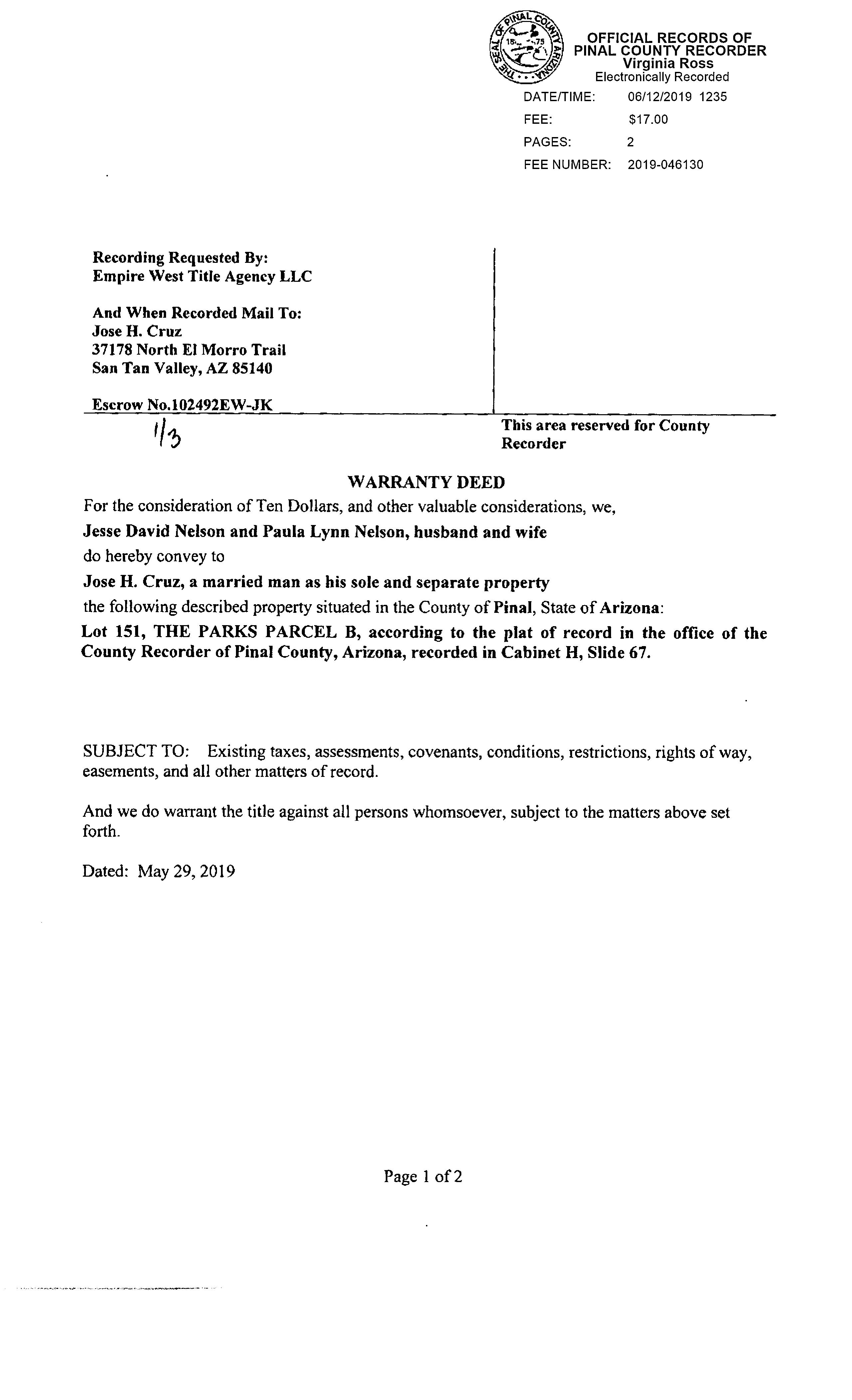 APN / Alternate APN: 104-98-221 / Deed Type: Warranty Deed