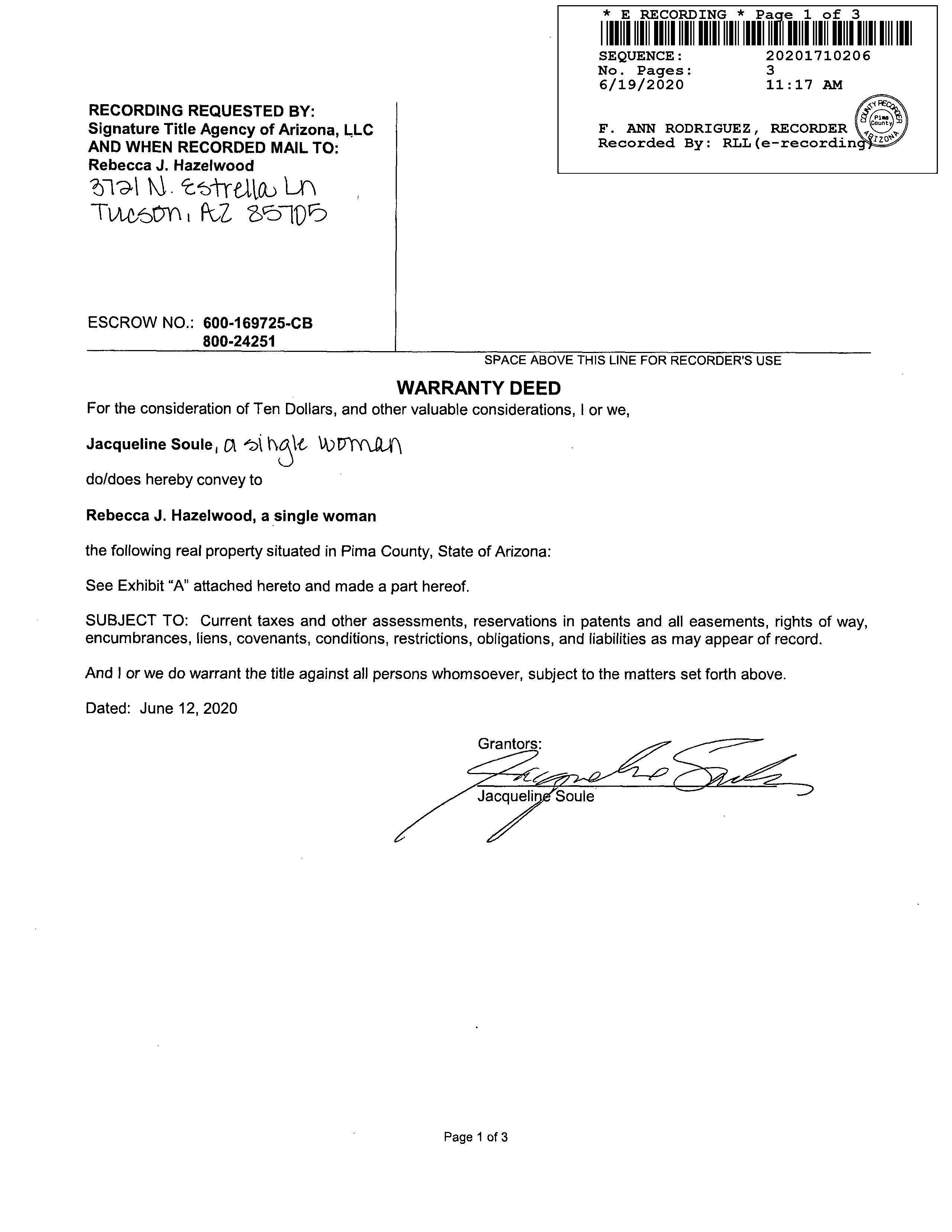 Owner Name : Hazelwood Rebecca J