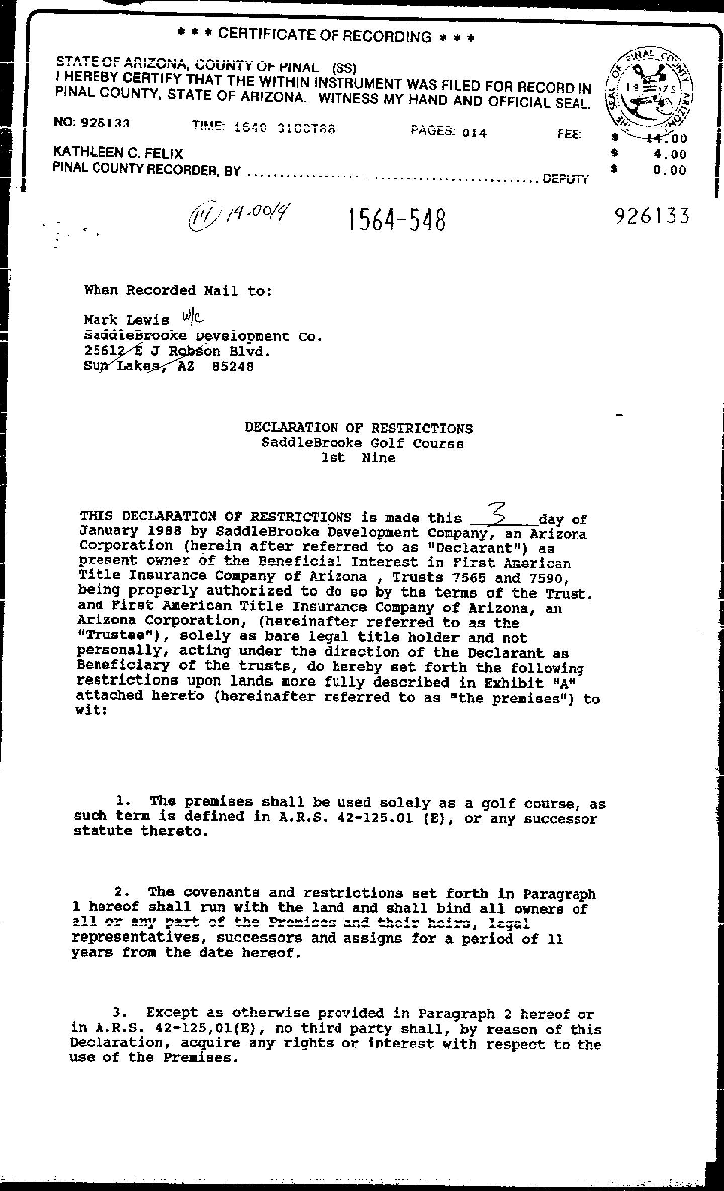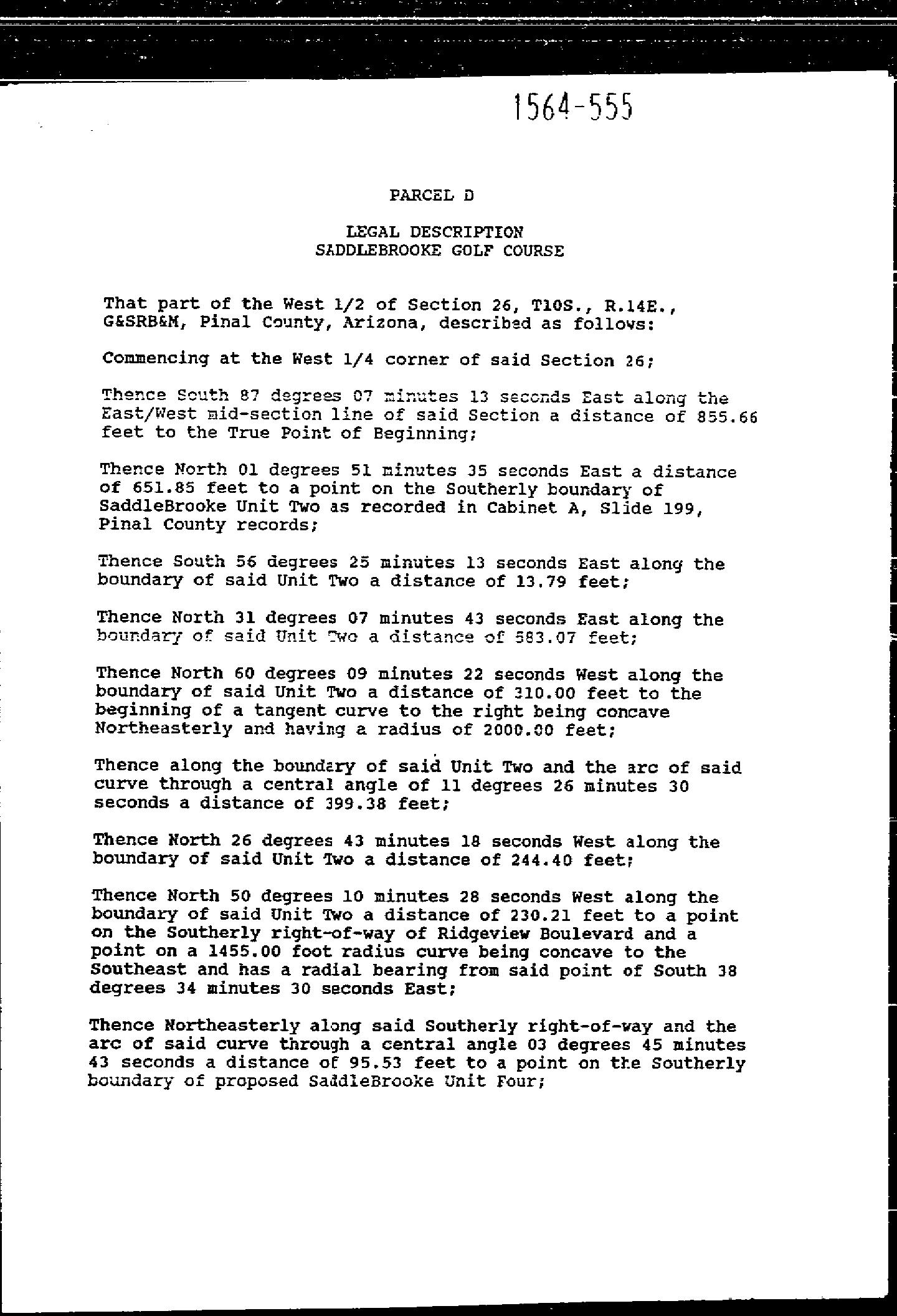 LEGAL: LOT 98 SADDLEBROOKE UNIT TWO CAB A SLD 199 SEC 26 & 27-10S-14E 7232 SQ FT