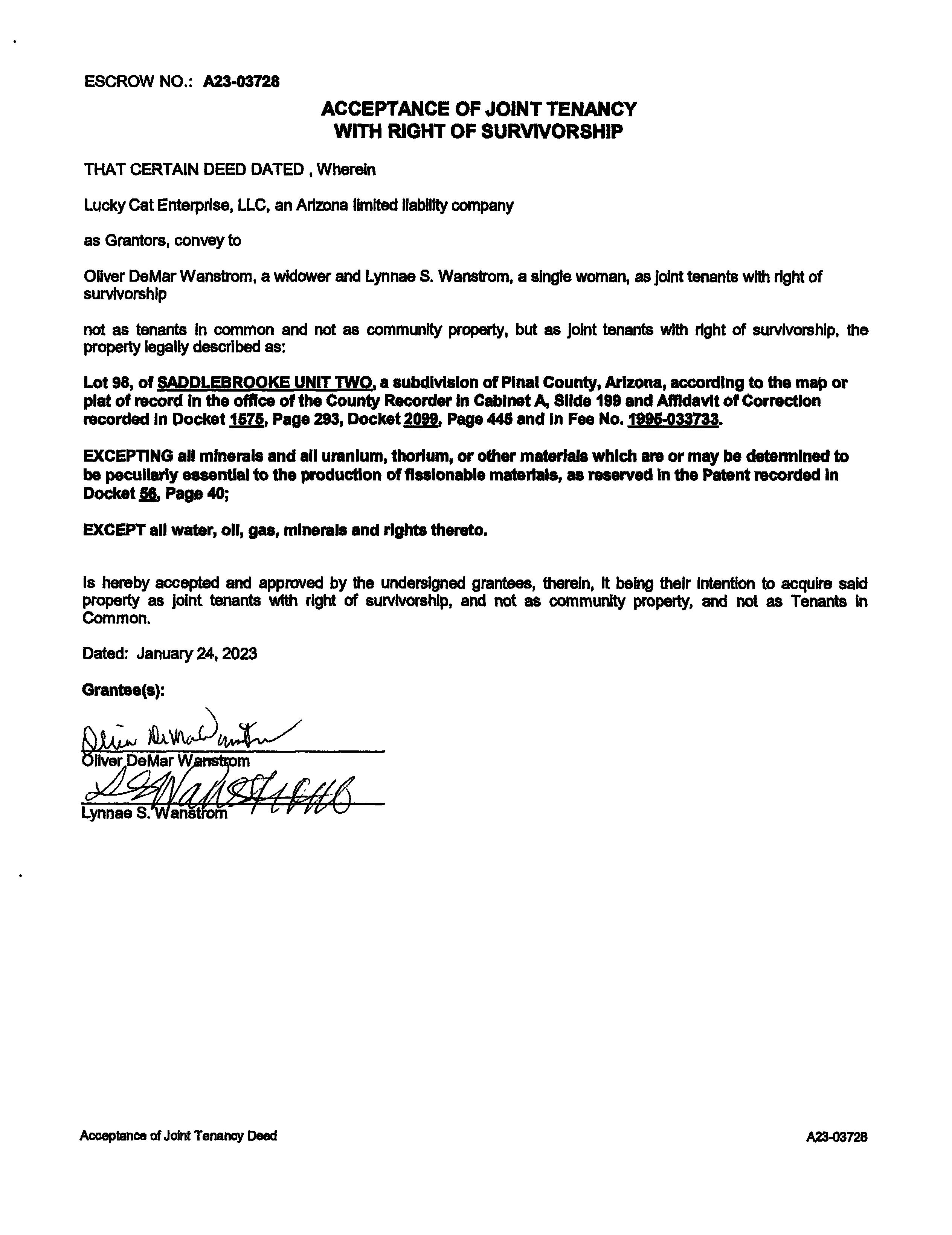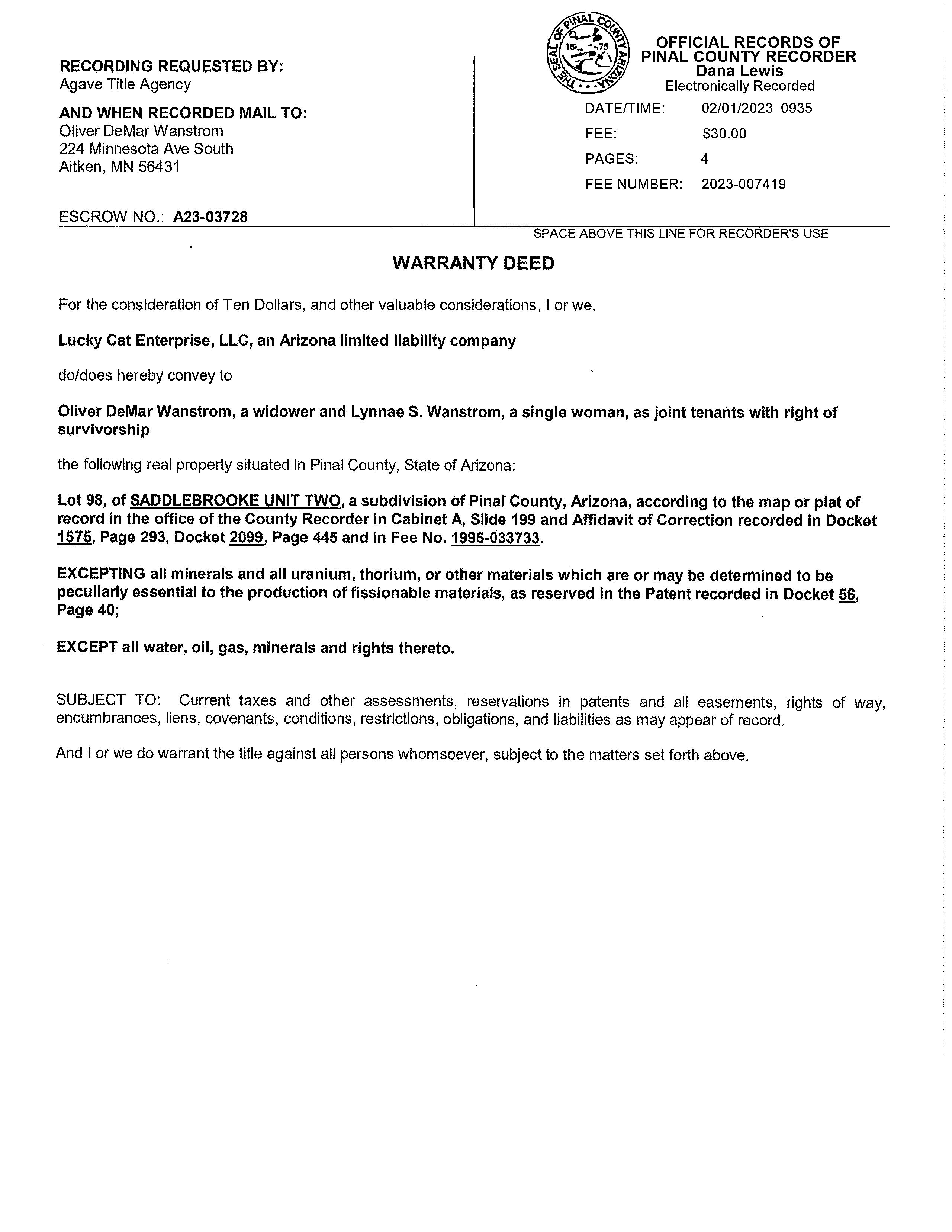OWNER: WANSTROM OLIVER & LYNNAE