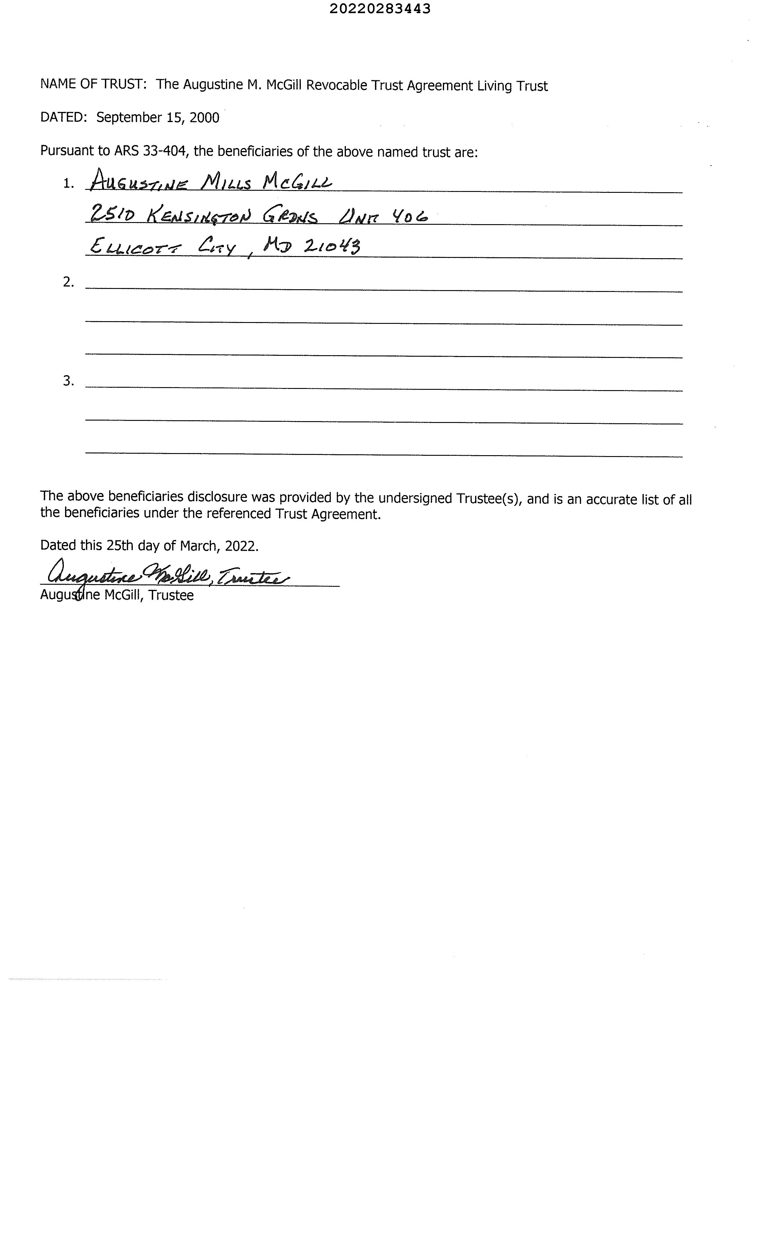 Mailing Address : 943 W Yosemite Dr, Chandler AZ 85248-0085 R042