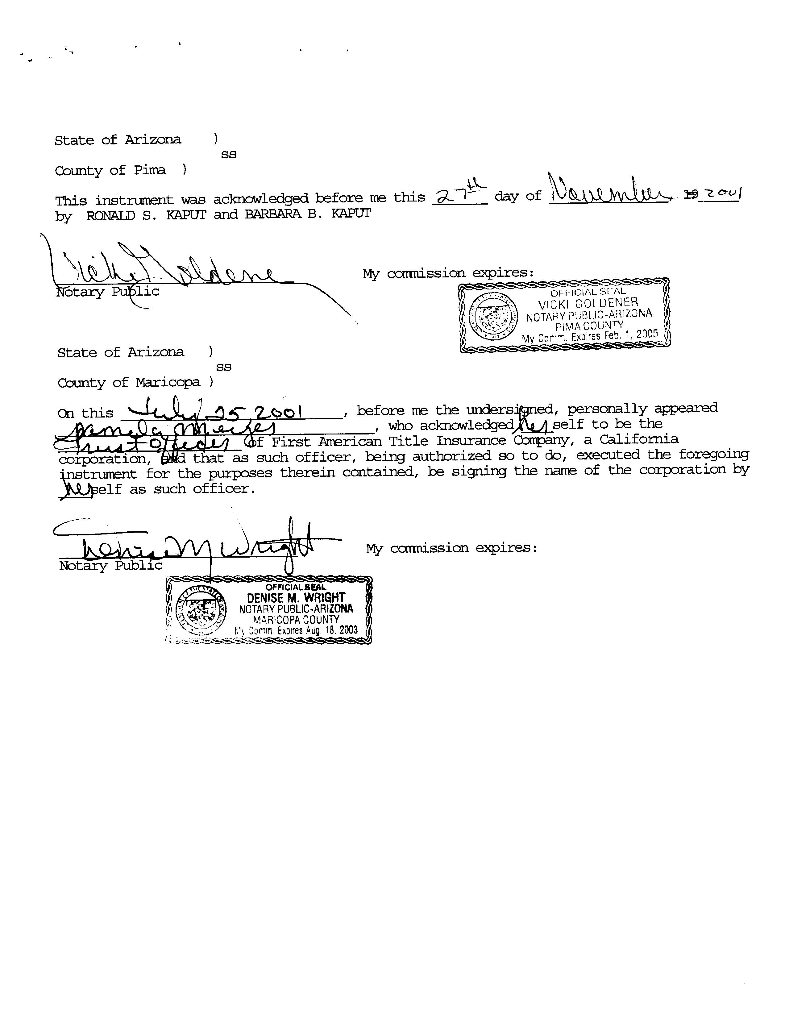 OWNER: KAPUT RONALD S & BARBARA B     2001 54693 11/29/2001