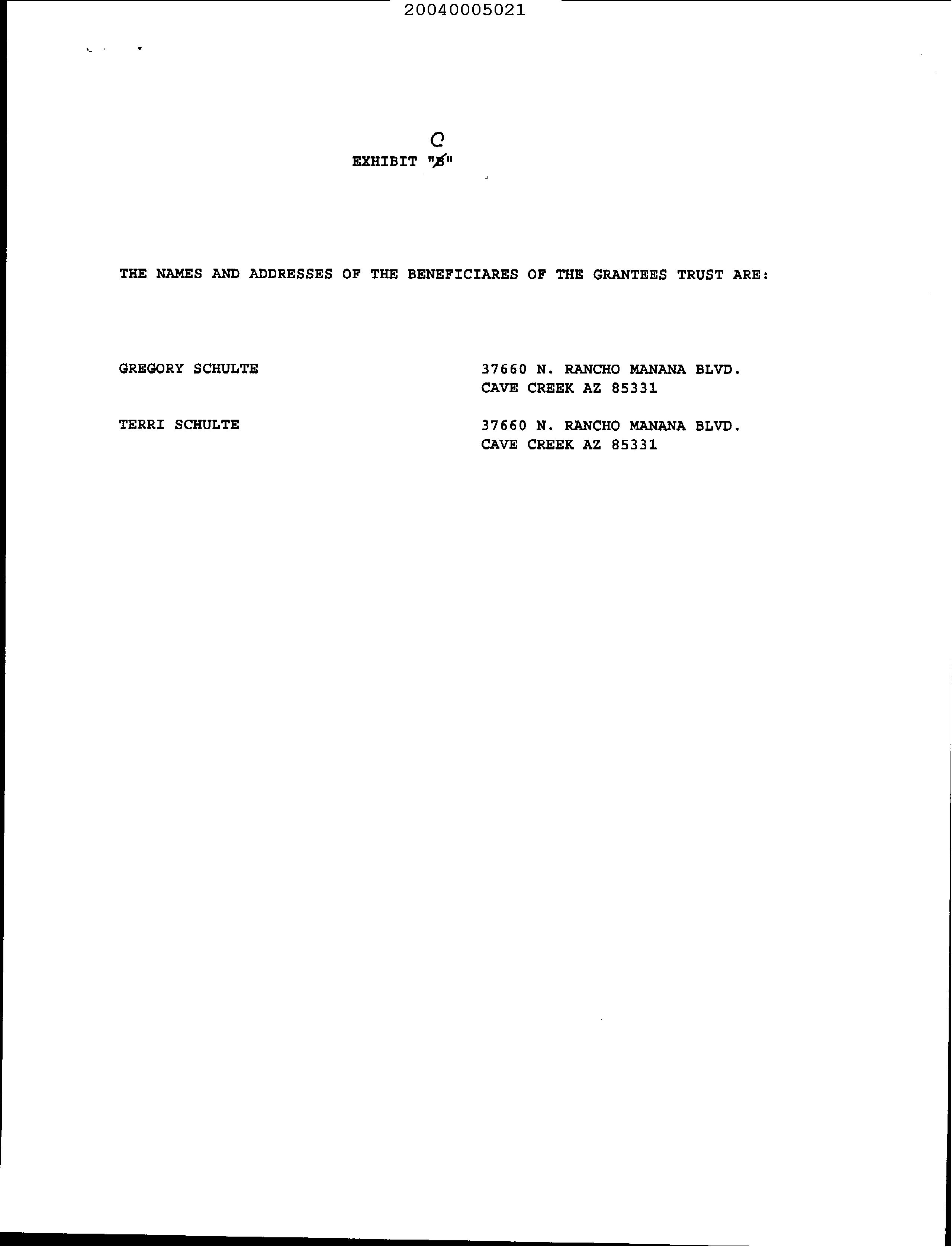 OWNER: GREGORY AND TERRI SCHULTE REVOCABLE LIVING TR