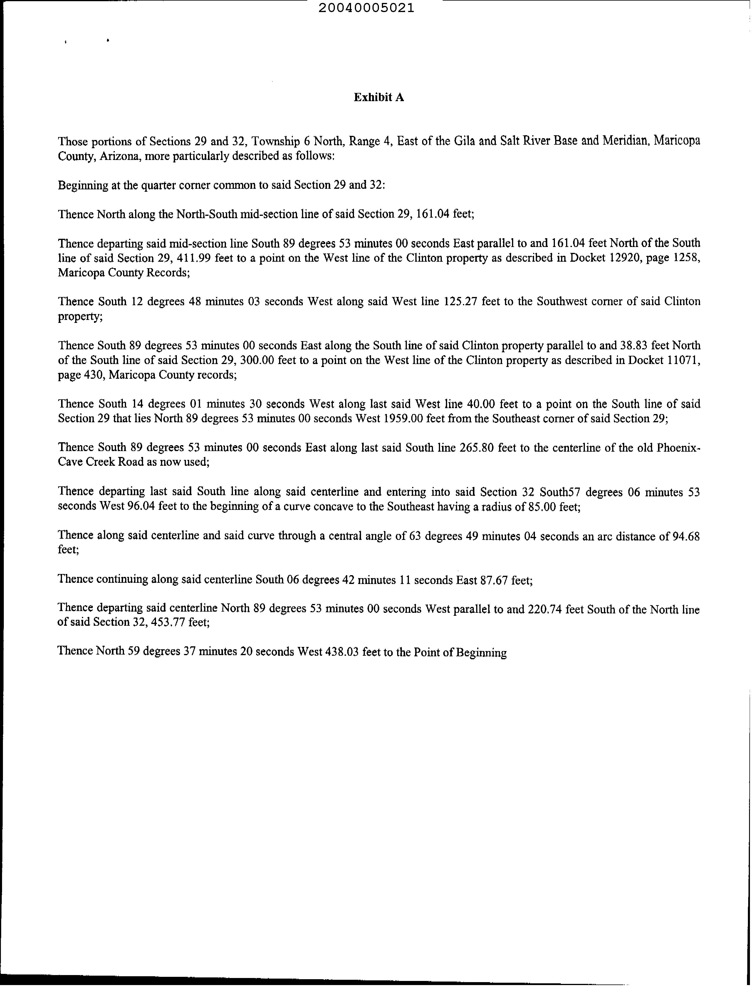 LEGAL: POR SEC 32 DAF BEG N4 COR SD SEC TH S 59D 37M E 438.03F TH E 453.77F TO C/L OF OLD PHOENIX-CAVE CREEK RD AS NOW USED TH S 06D 42M E 99.46F TH S 17D 23M W 127.70F TH W 804.91F TH N 429.34F POB P/F 91-0098675