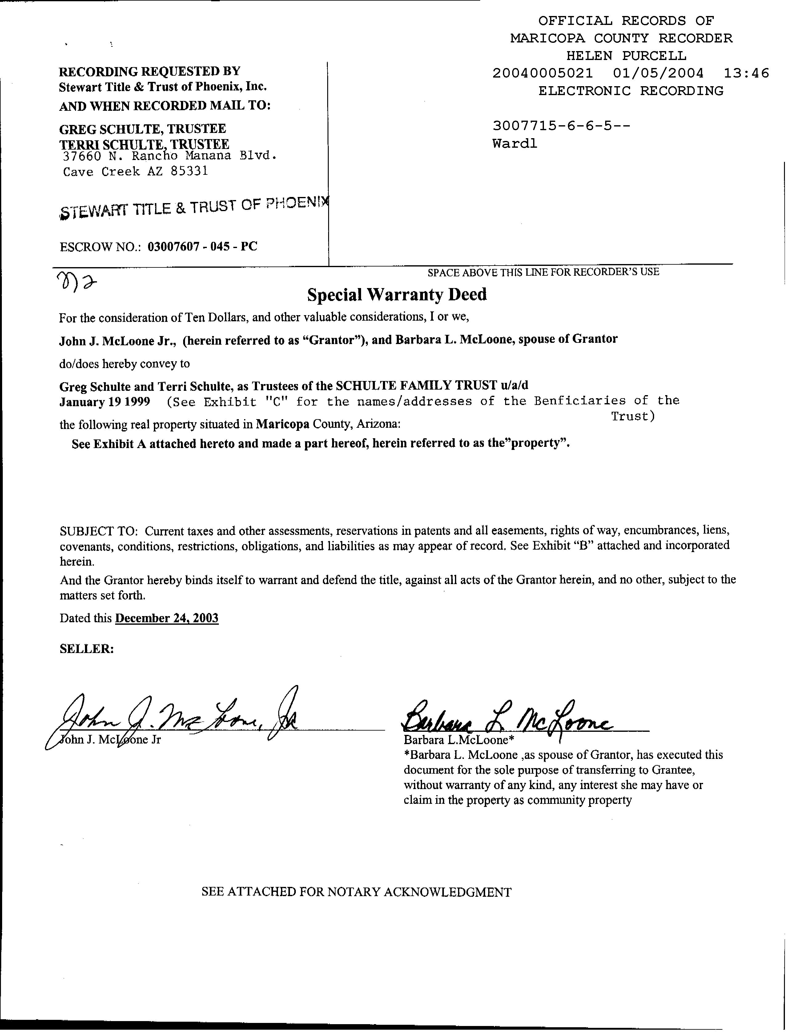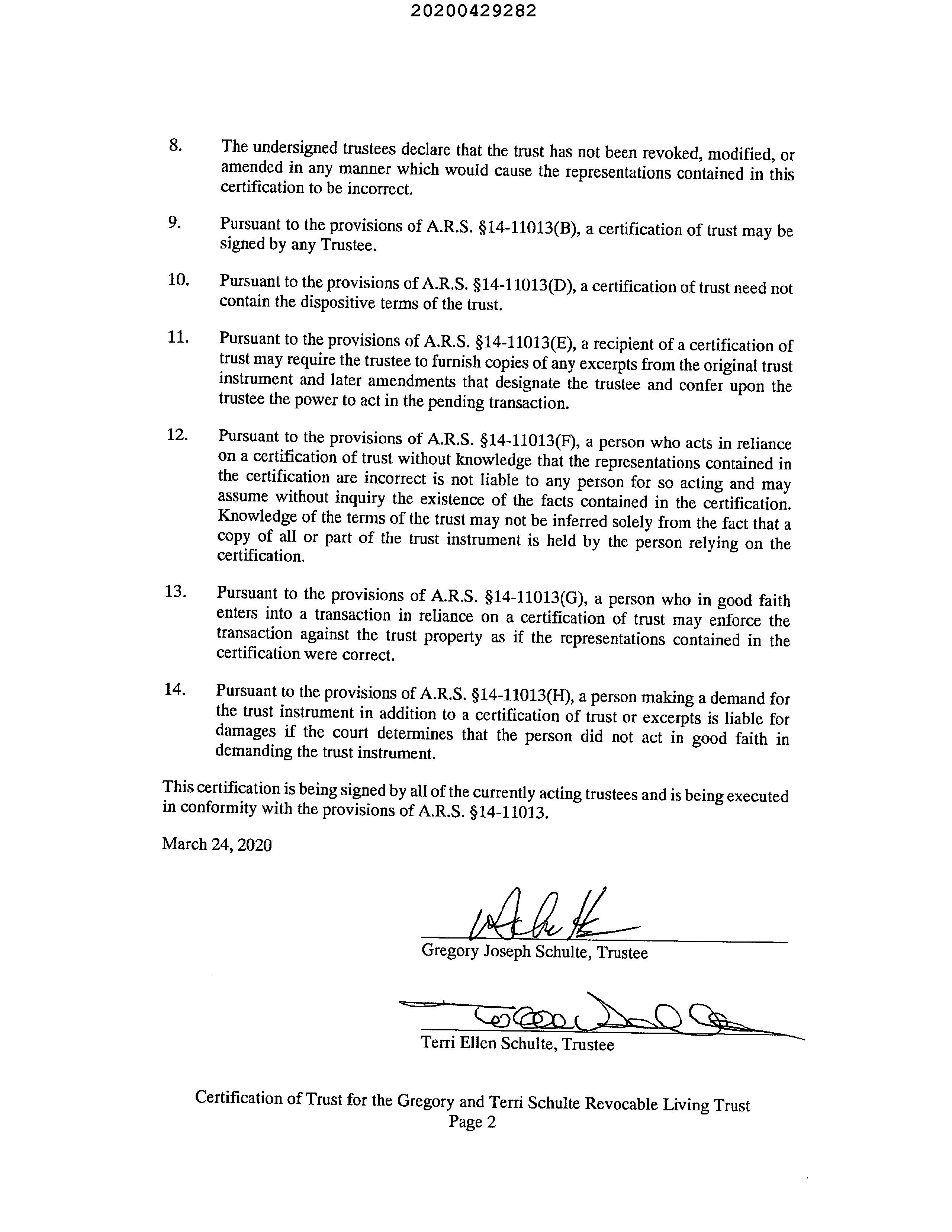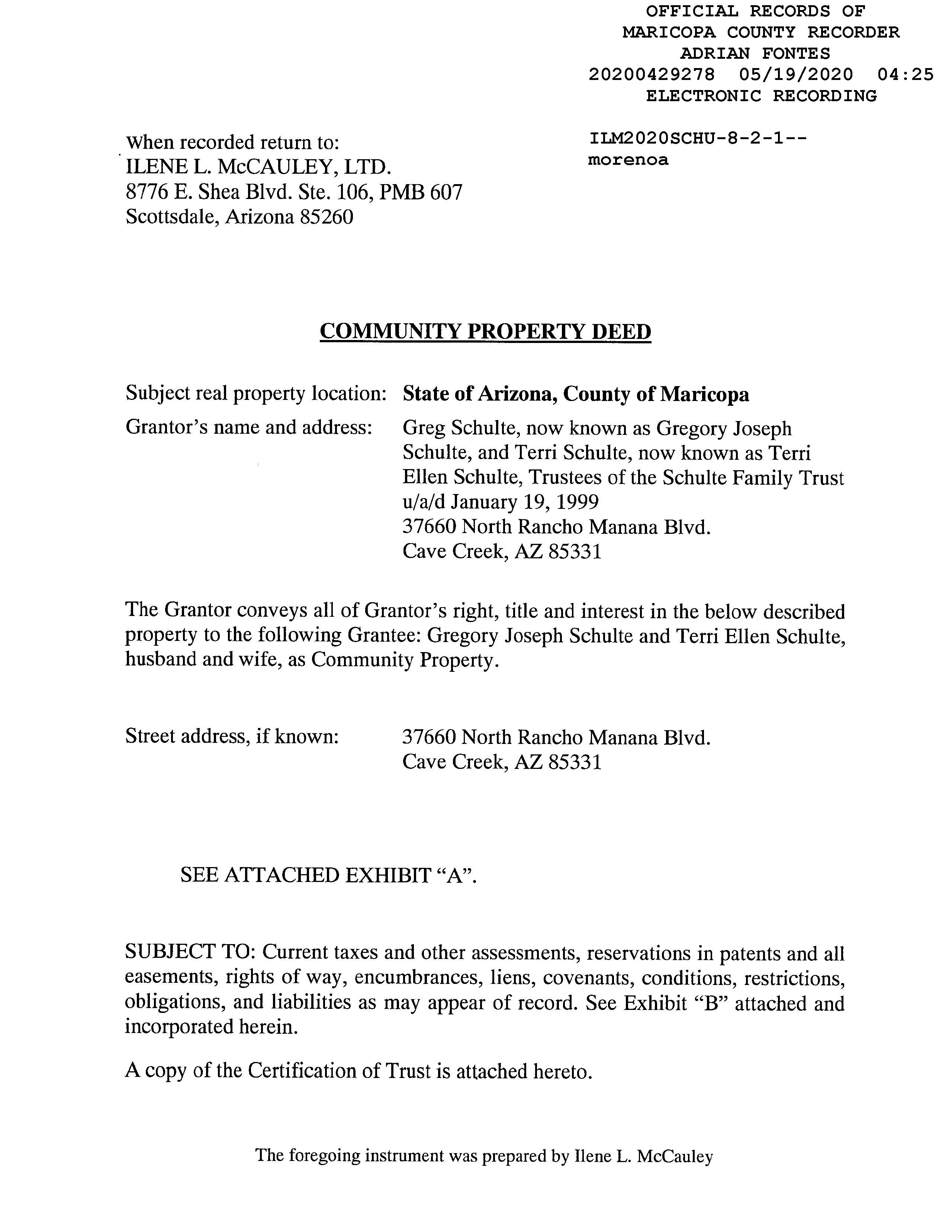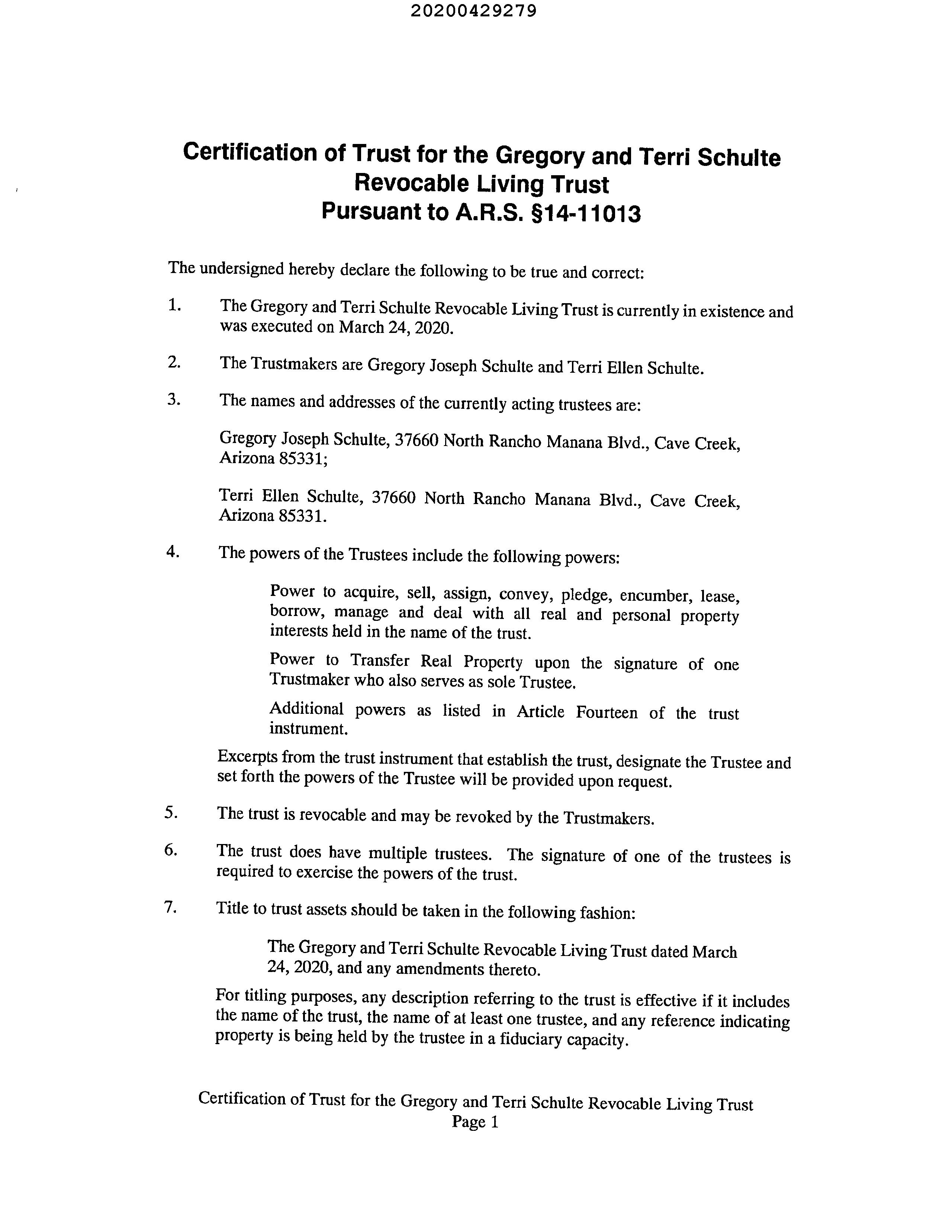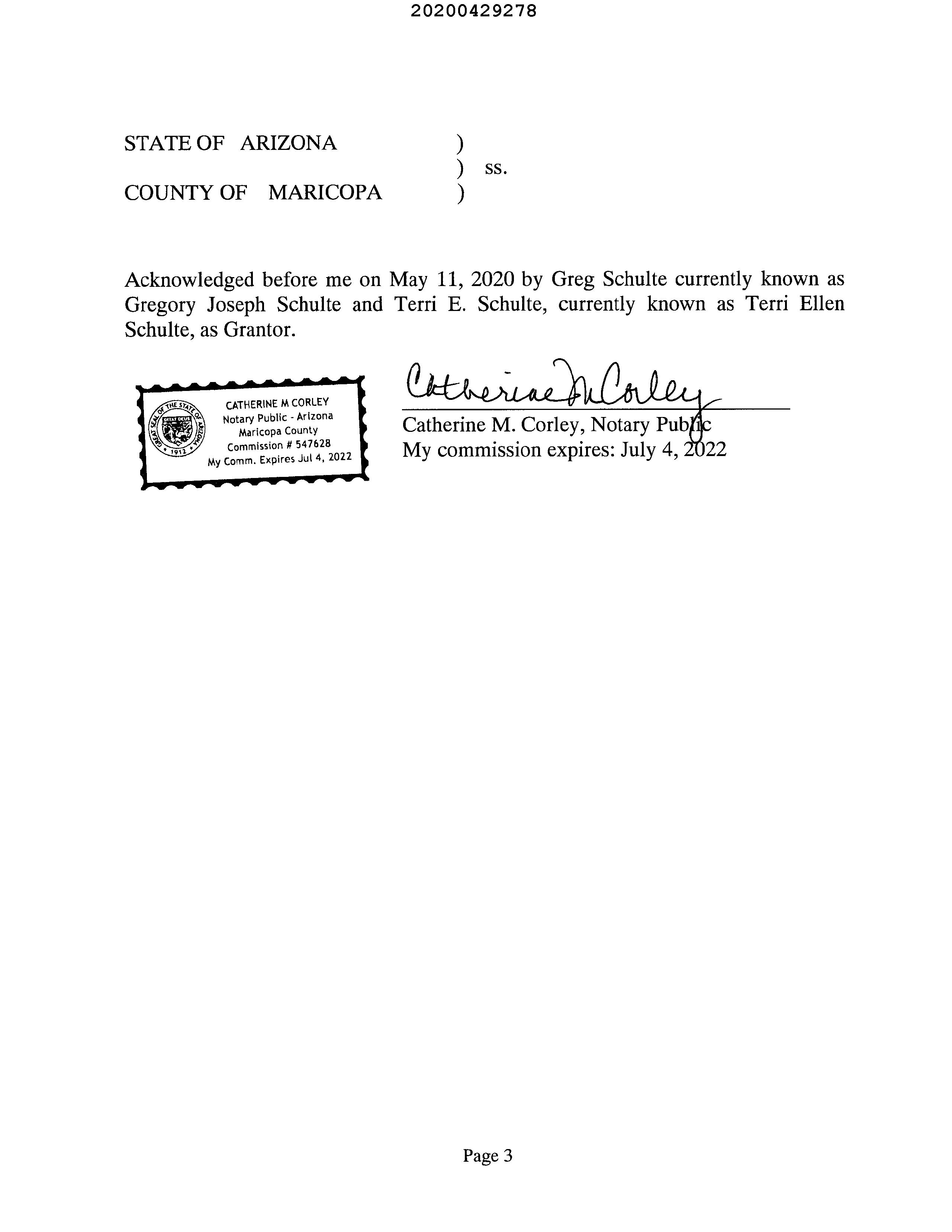OWNER: GREGORY AND TERRI SCHULTE REVOCABLE LIVING TR 2020 429282 05/19/2020
