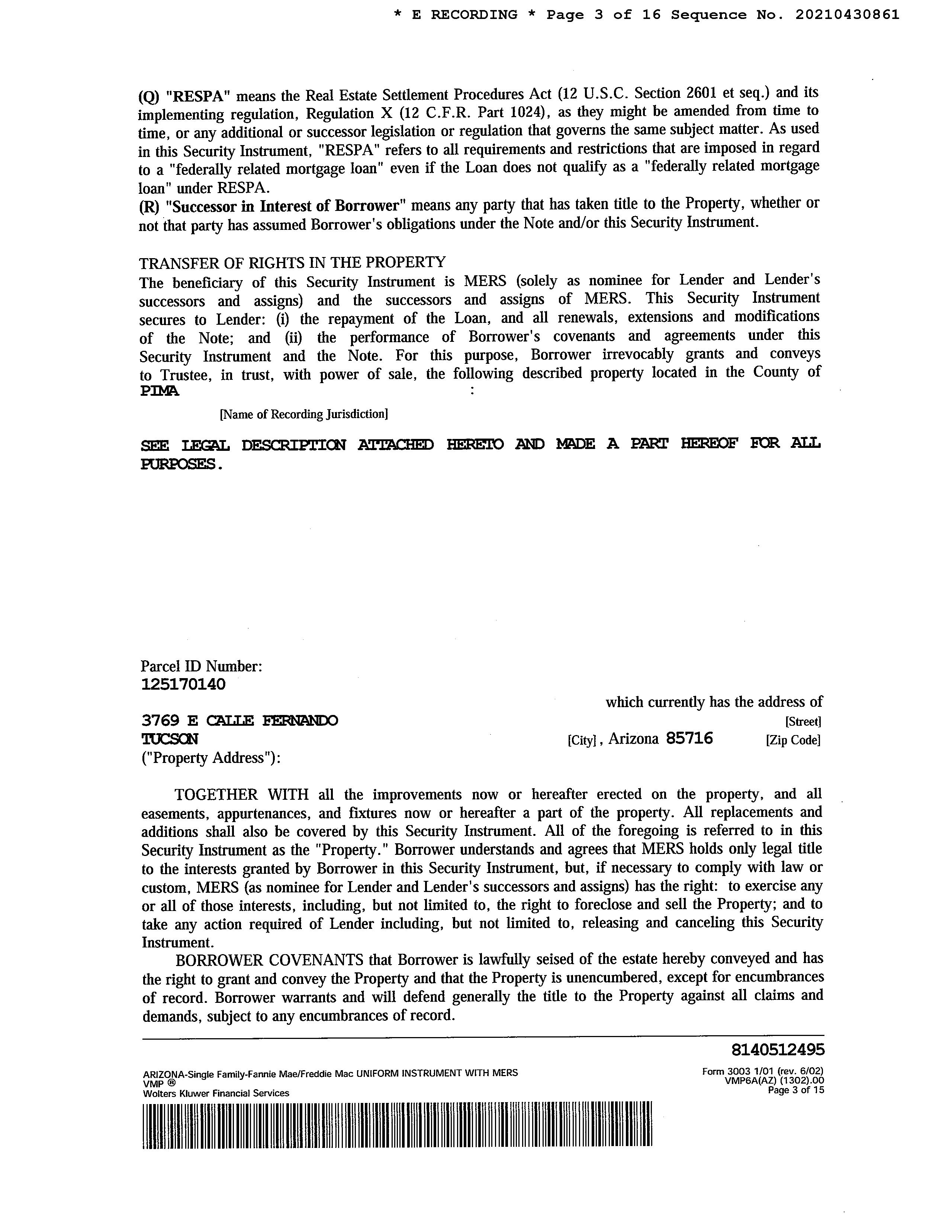 Mailing Address : 3769 E Calle Fernando, Tucson AZ 85716-5129 C026