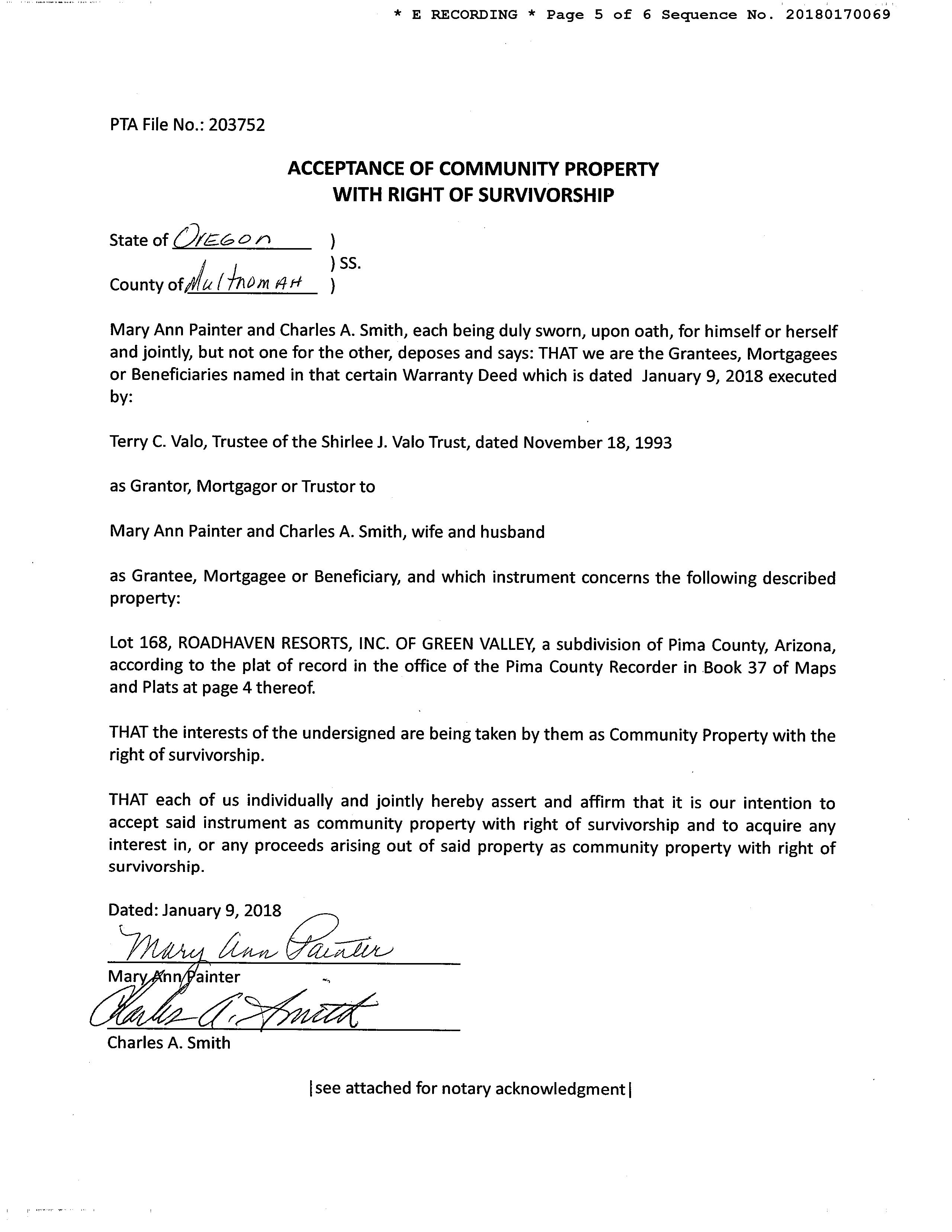 OWNER: PAINTER MARY ANN & SMITH CH AFFIDAVIT 2018 170069 01/17/2018